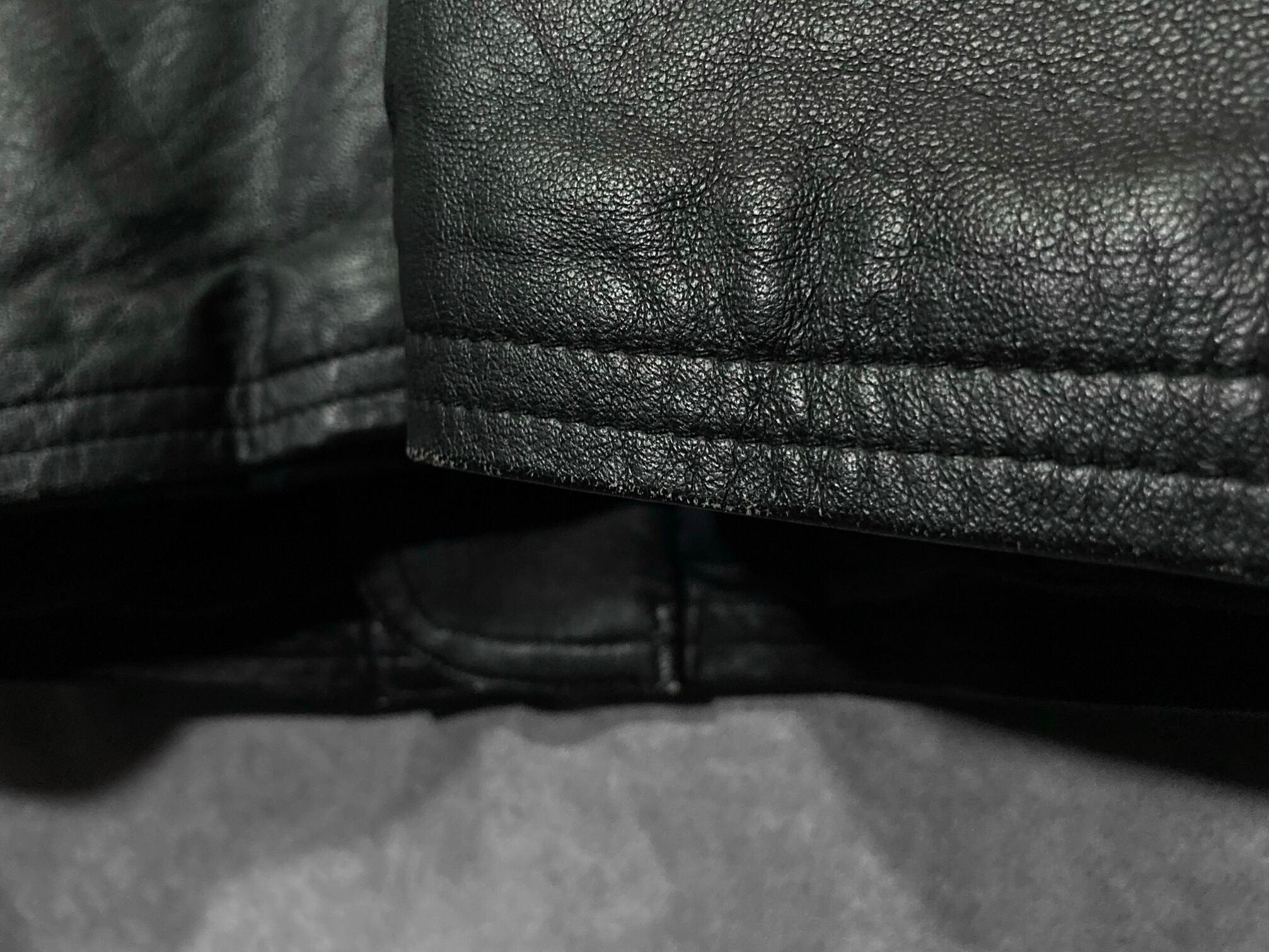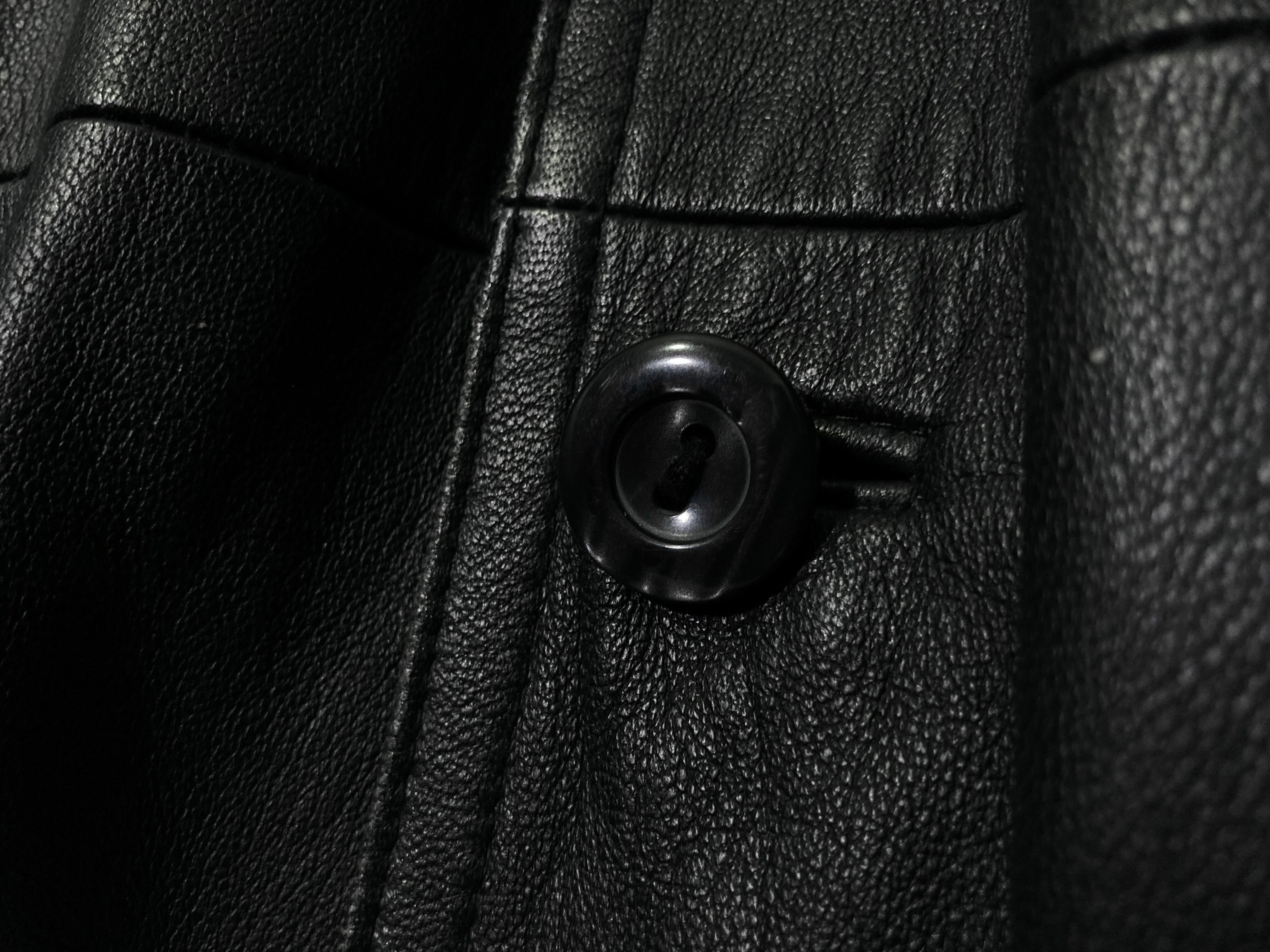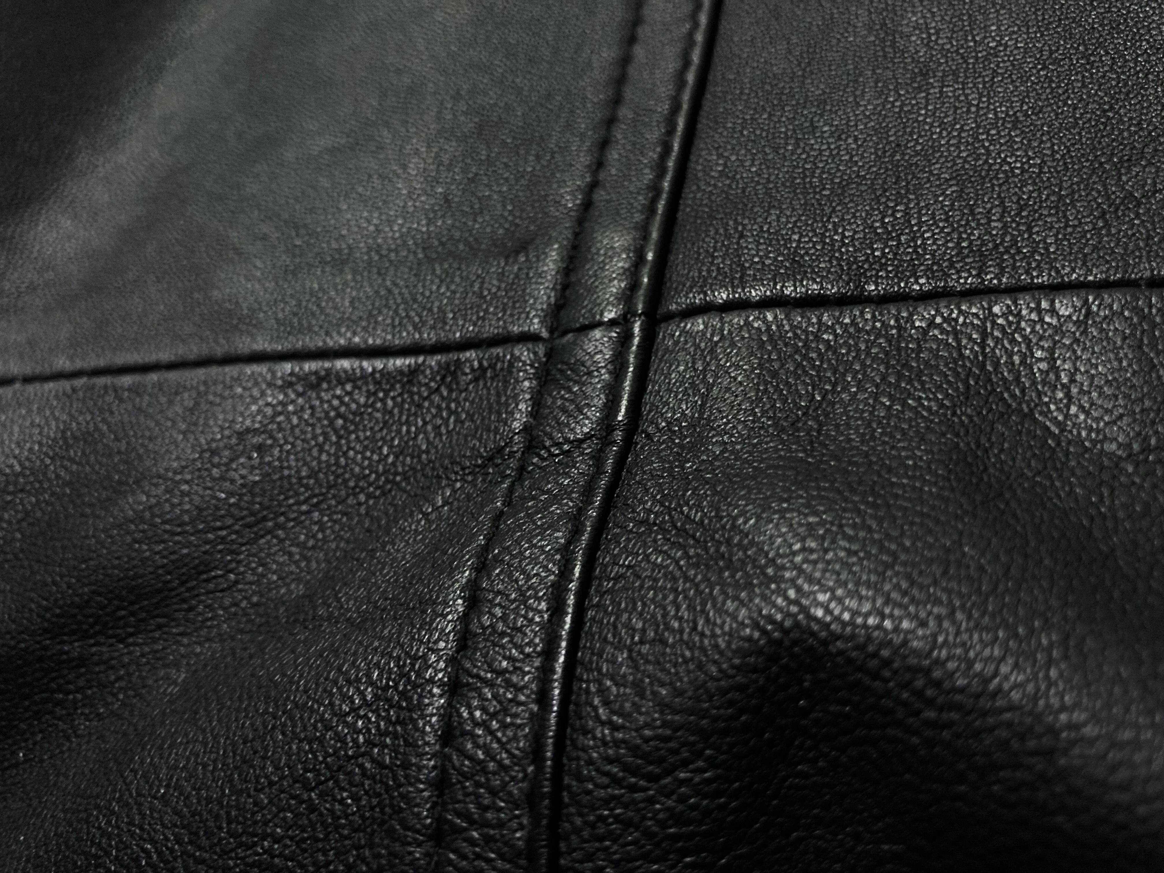 着用と経年変化による風合いが出ており、背面の裾あたりには剥がれがない程度に " いい感じ" の割れが出て、デニム同様で着るほどに味出しのカスタマイズが楽しめる1着。