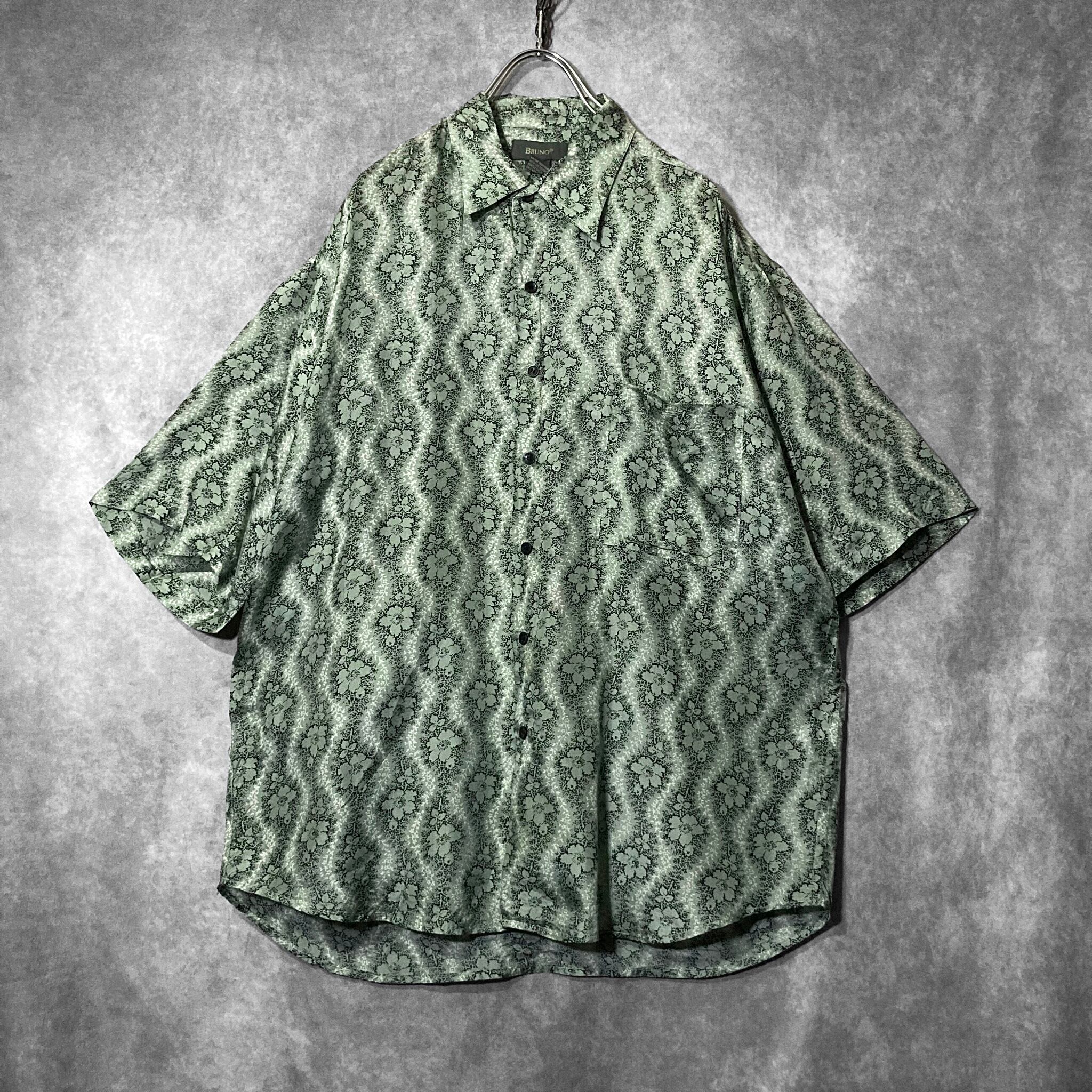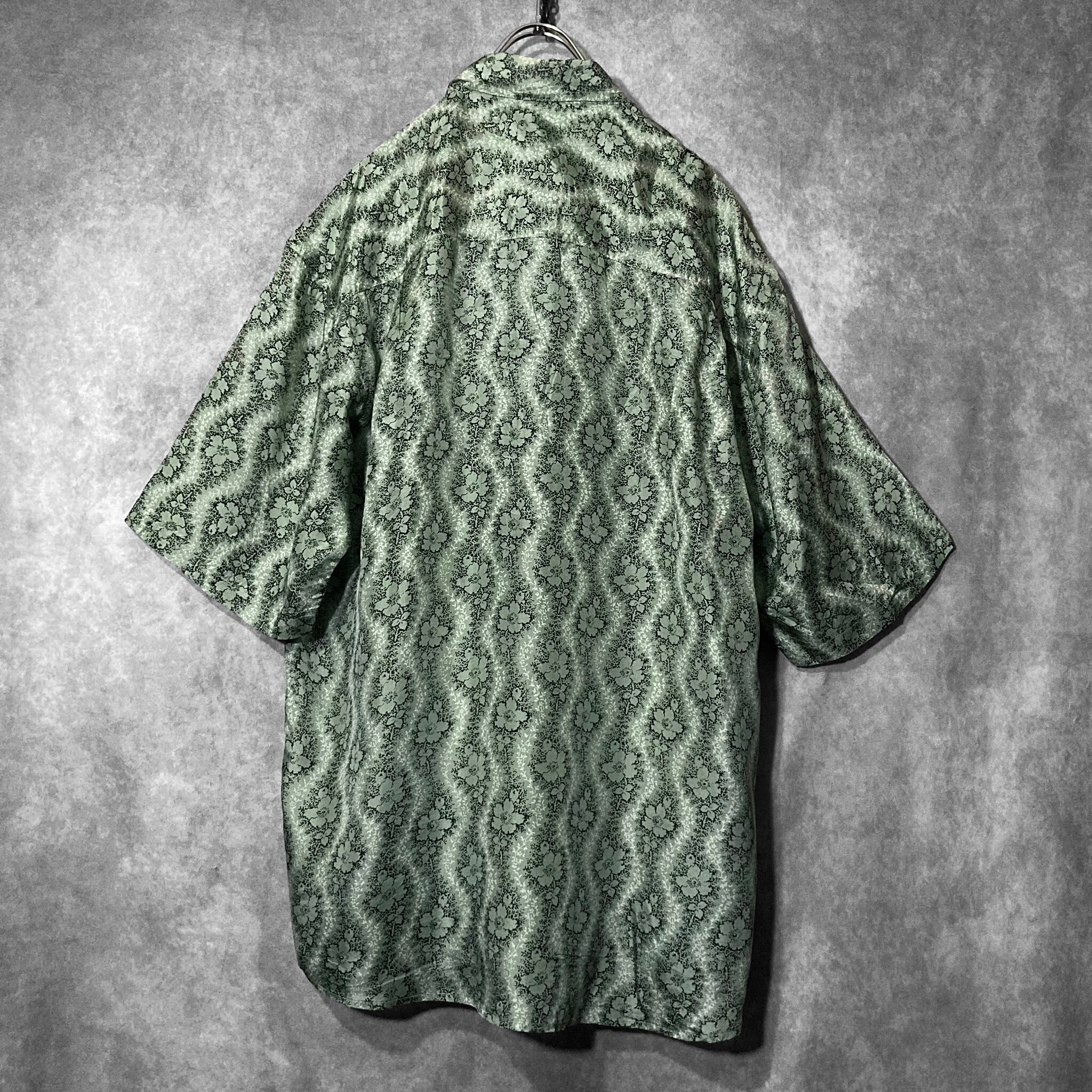 超光沢 XXL Glossy silk material Hand drawn Floral all over pattern design S/S shirt