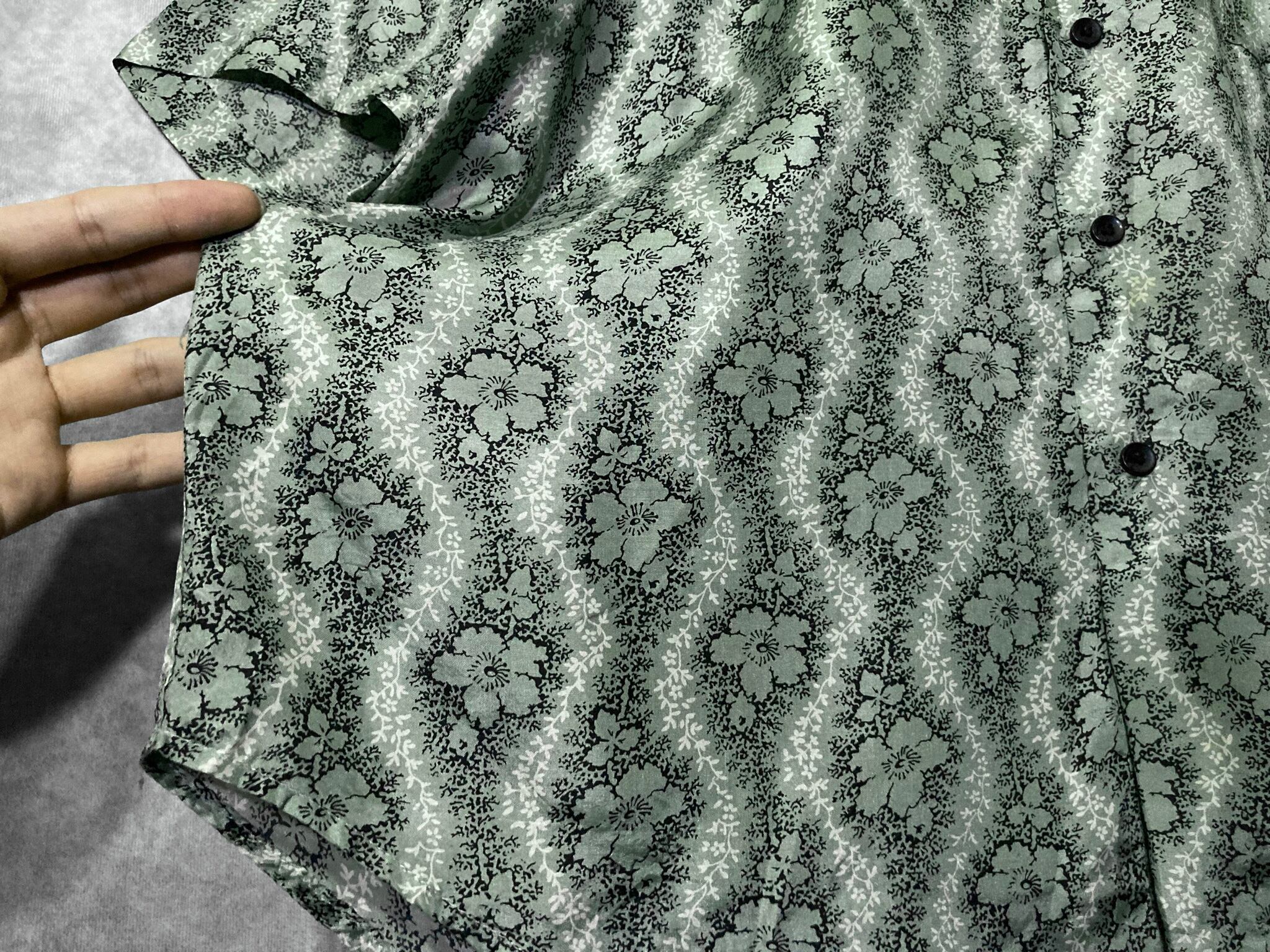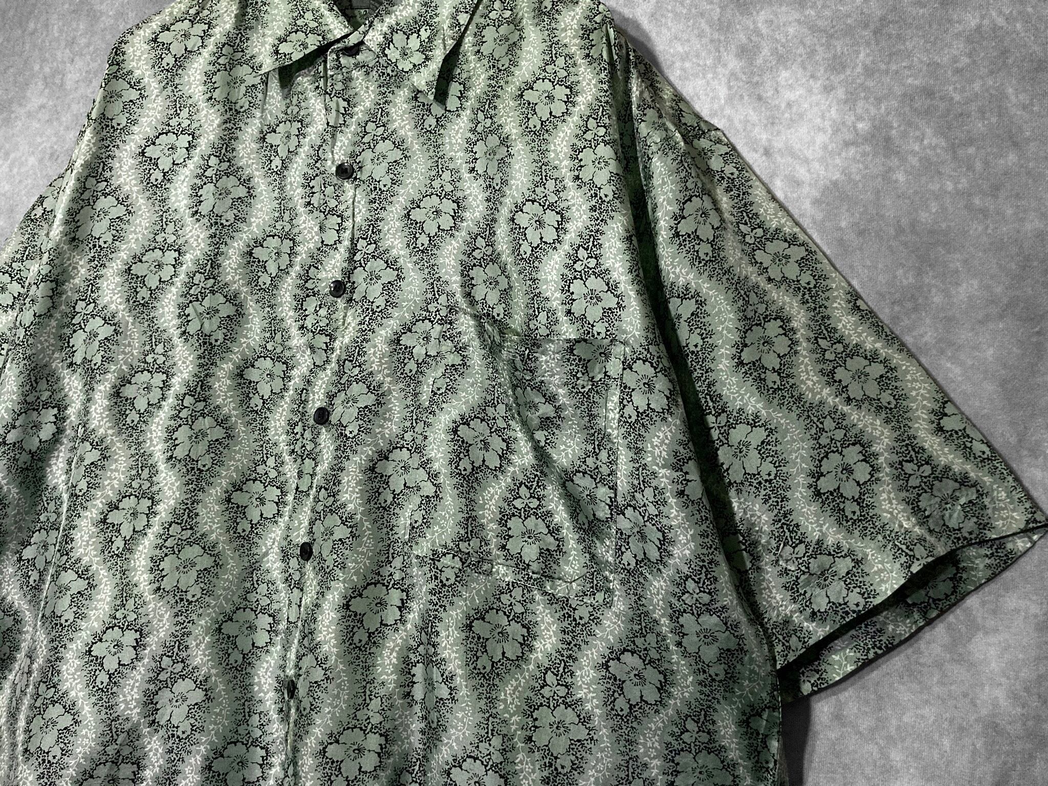シルク特有の光沢感と流れるようなフローラルパターンが雰囲気ムンムンな総柄シャツの入荷です。