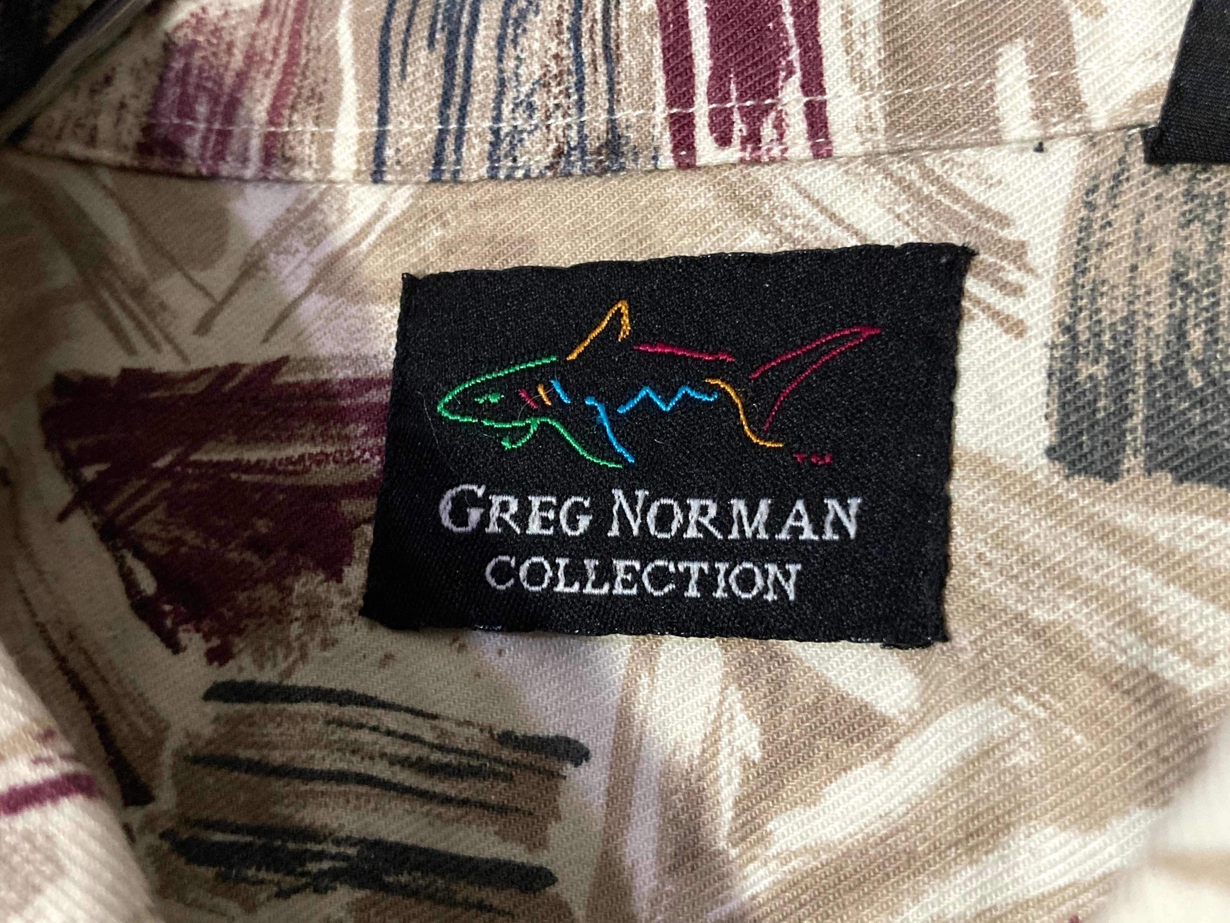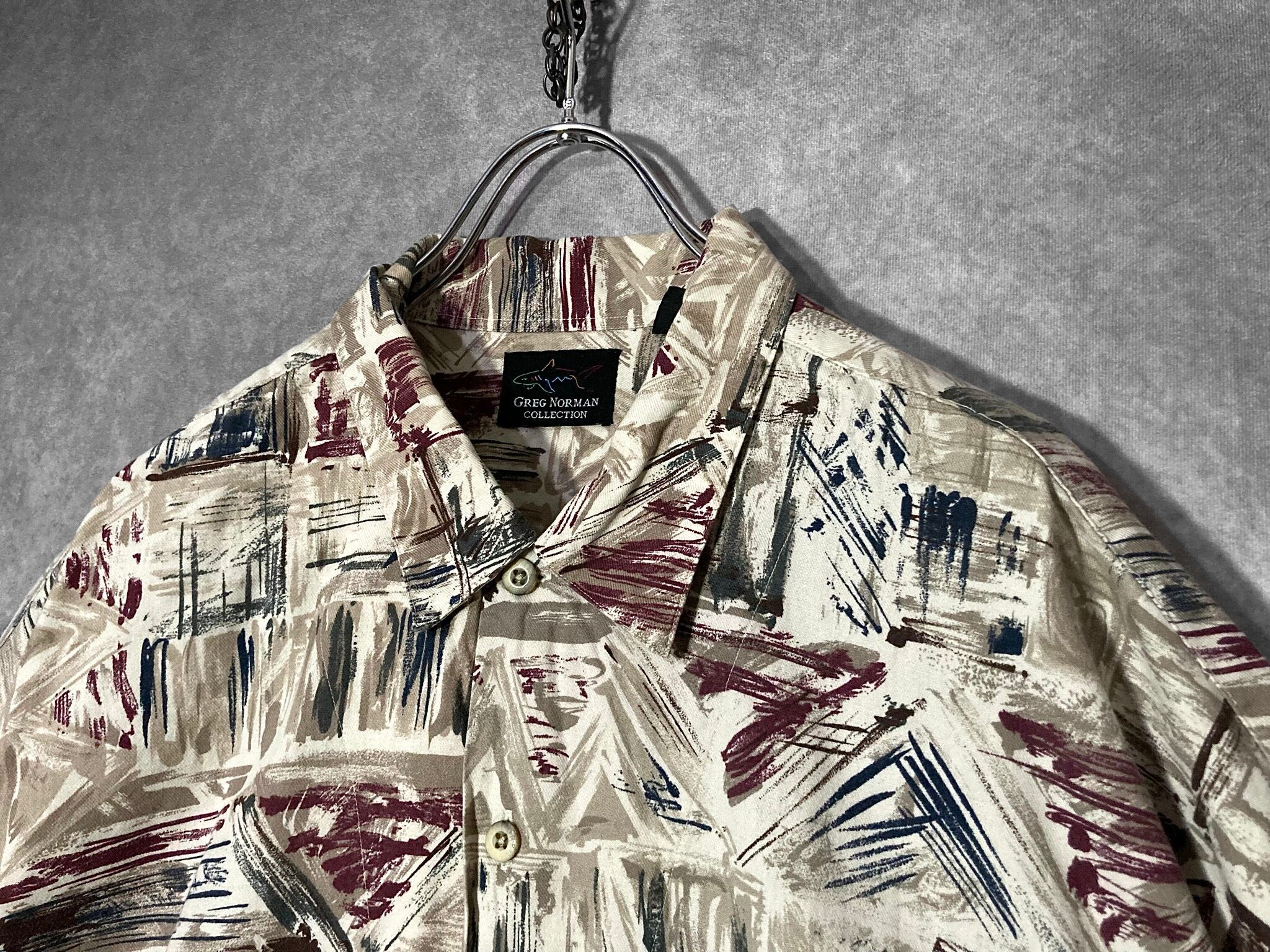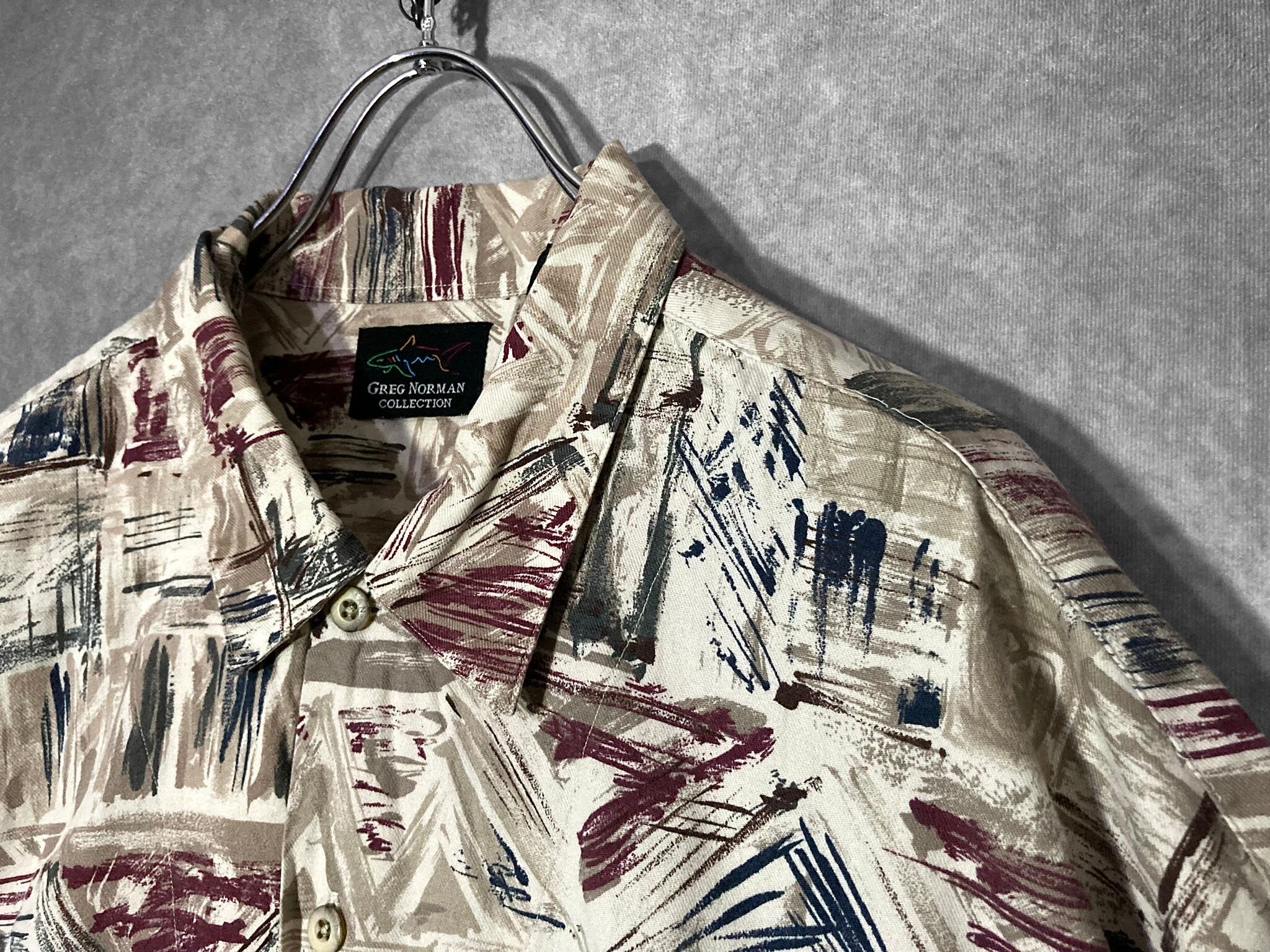 GREG NORMAN (グレッグ・ノーマン) の筆を走らせたようなペイントアートが目をひく雰囲気ムンムンな総柄デザインシャツ。