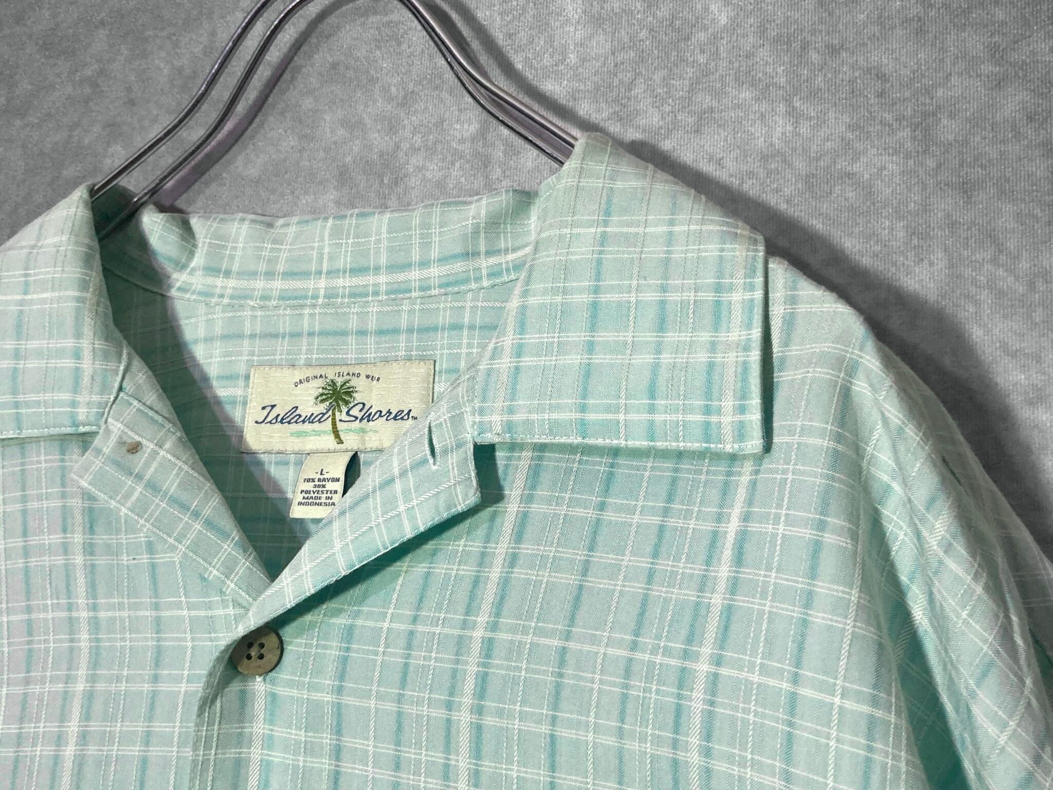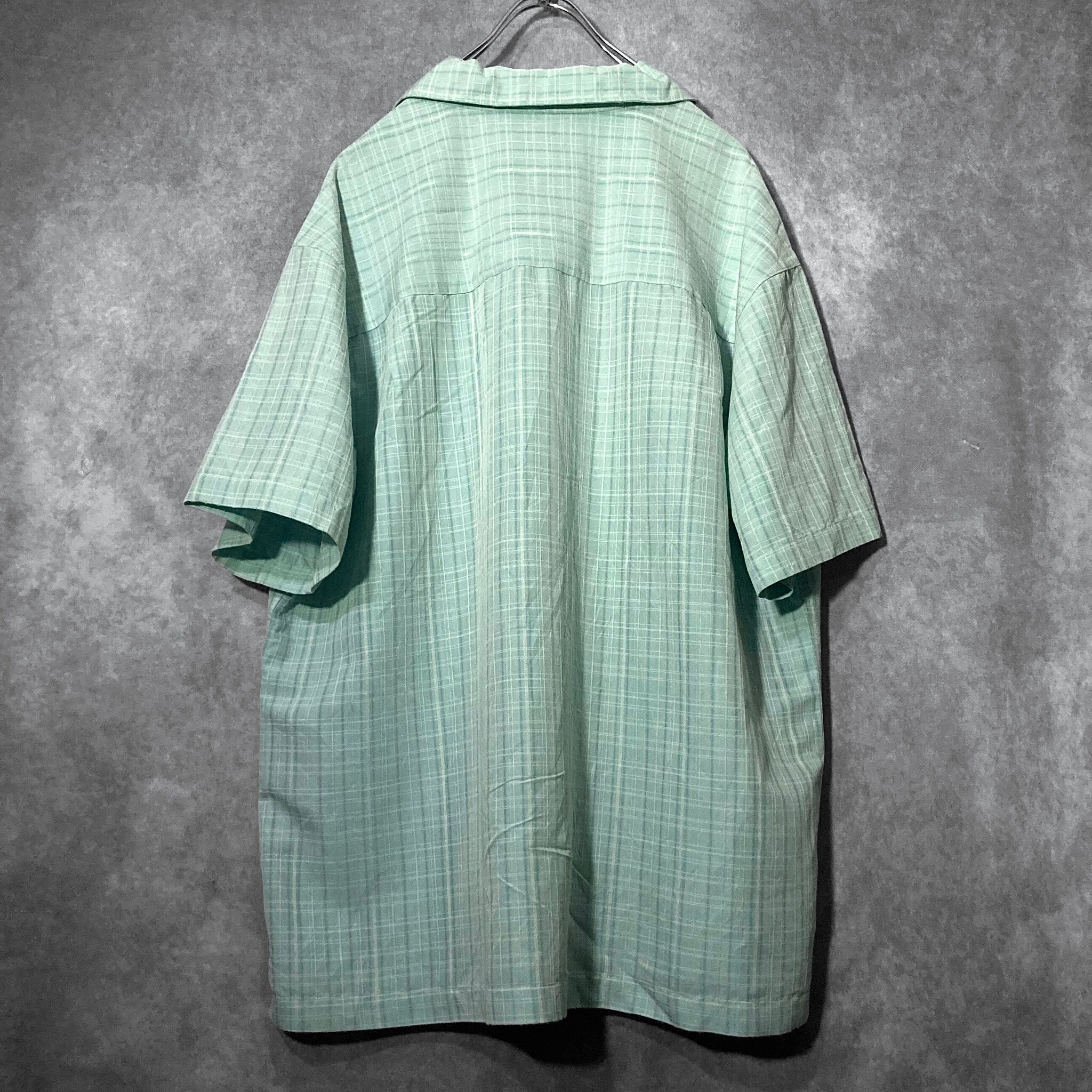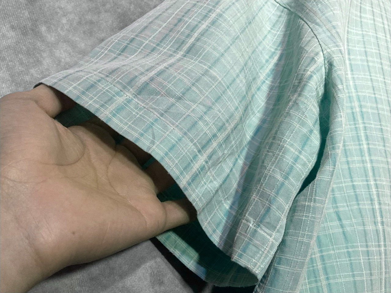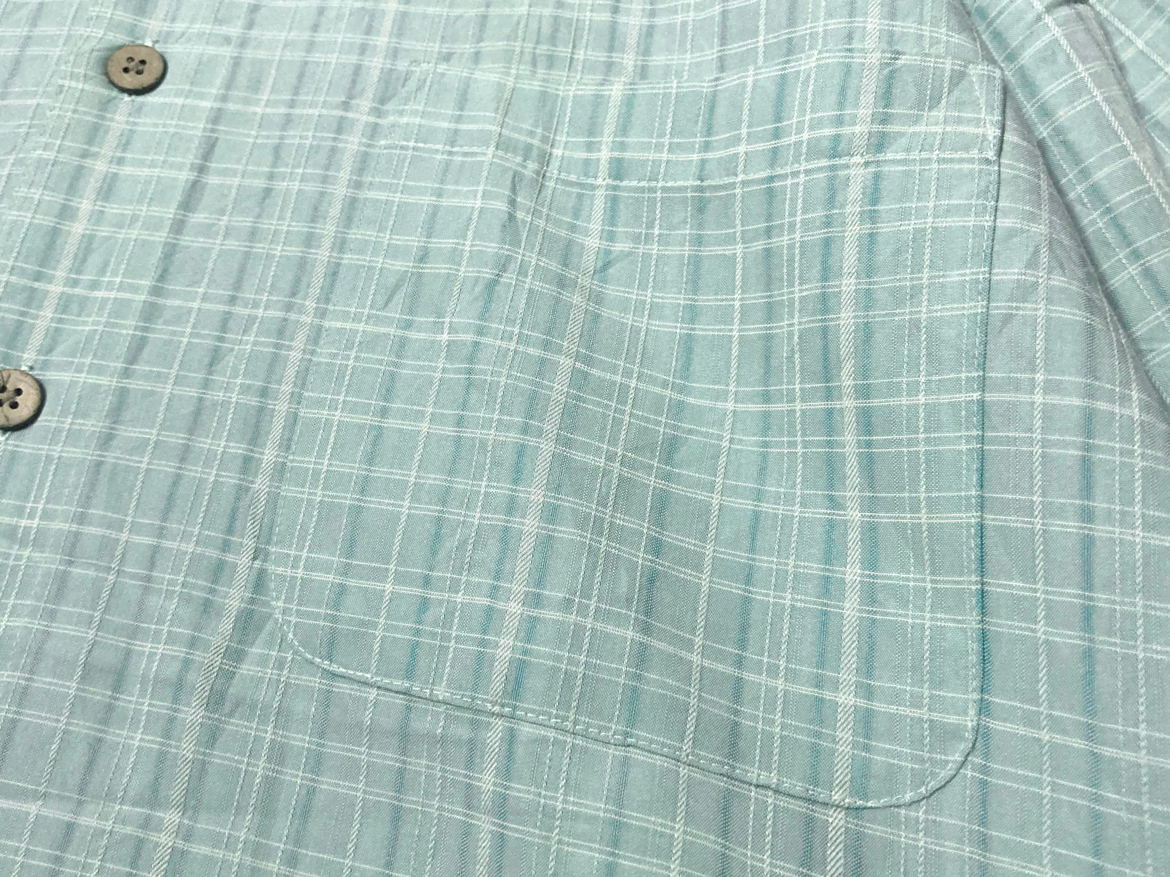 開襟 Mint green color Check pattern design Open collar S/S shirt