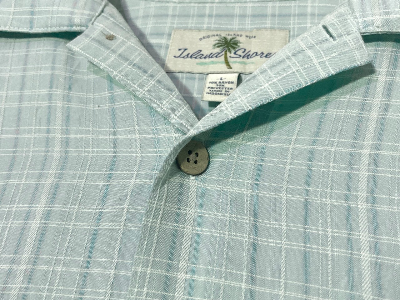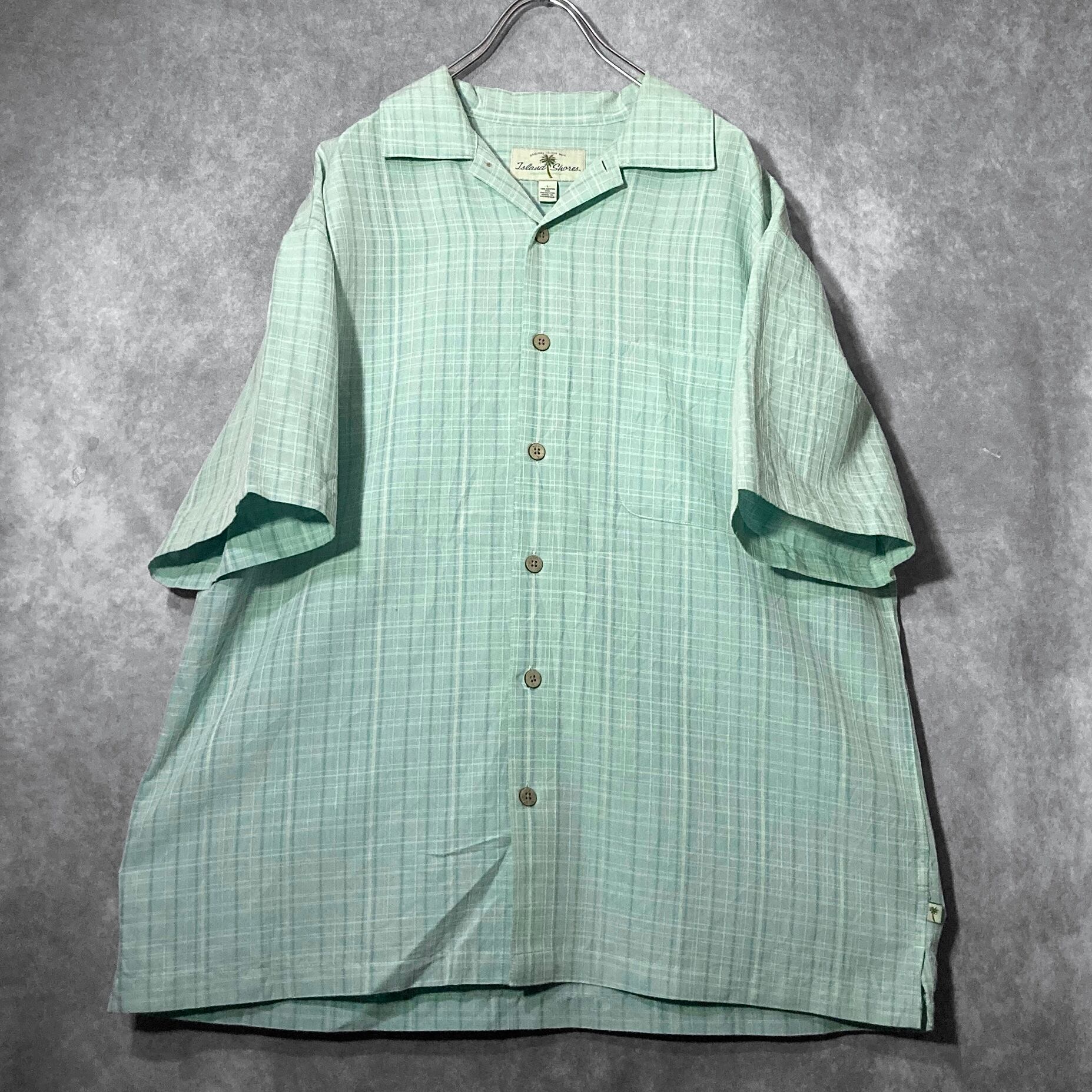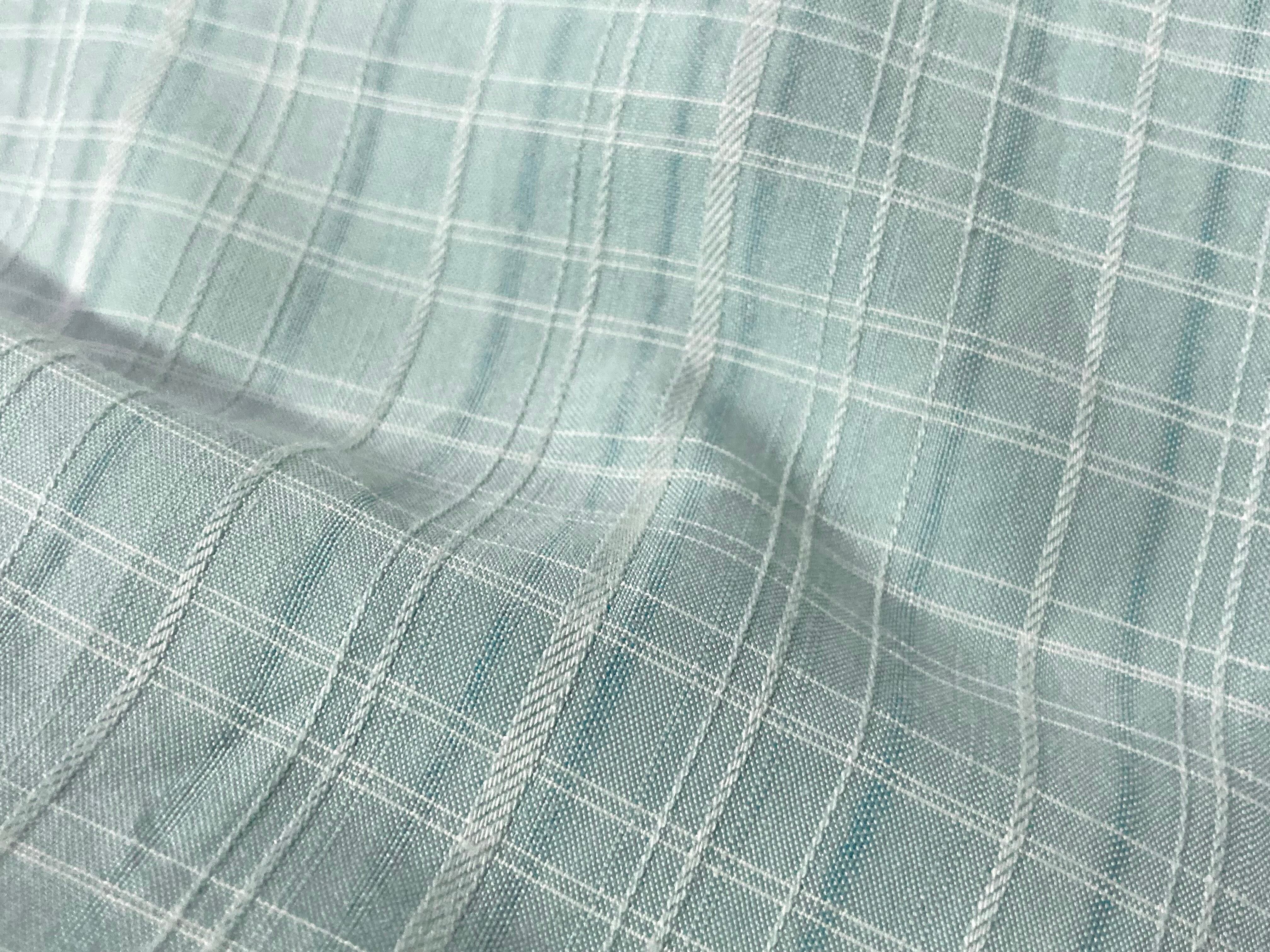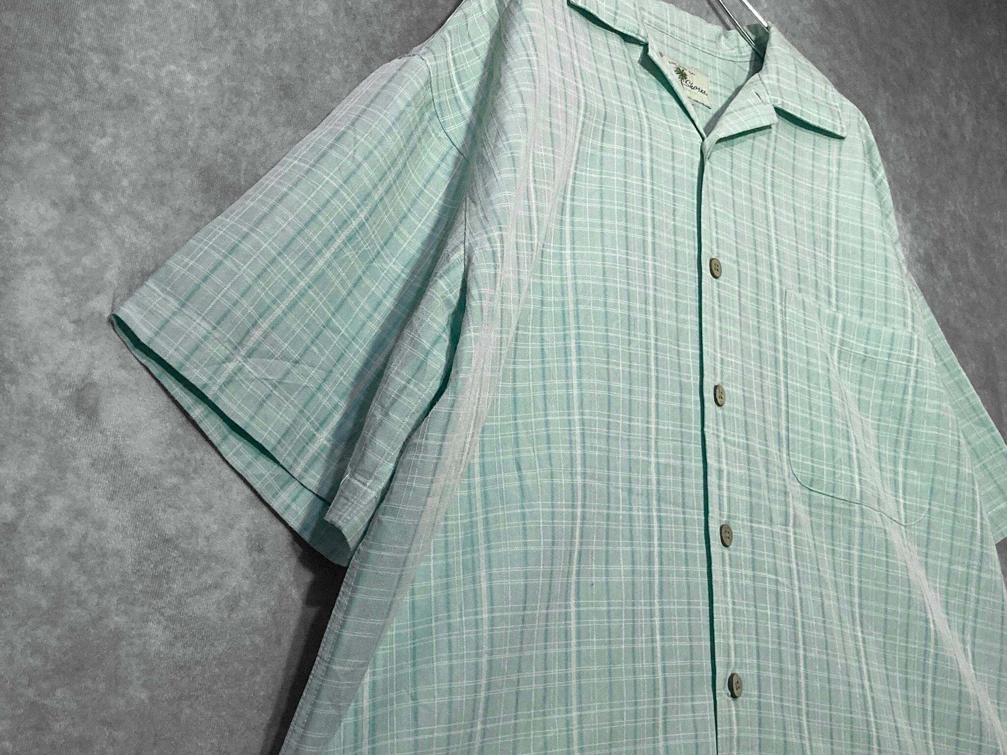 開襟 Mint green color Check pattern design Open collar S/S shirt