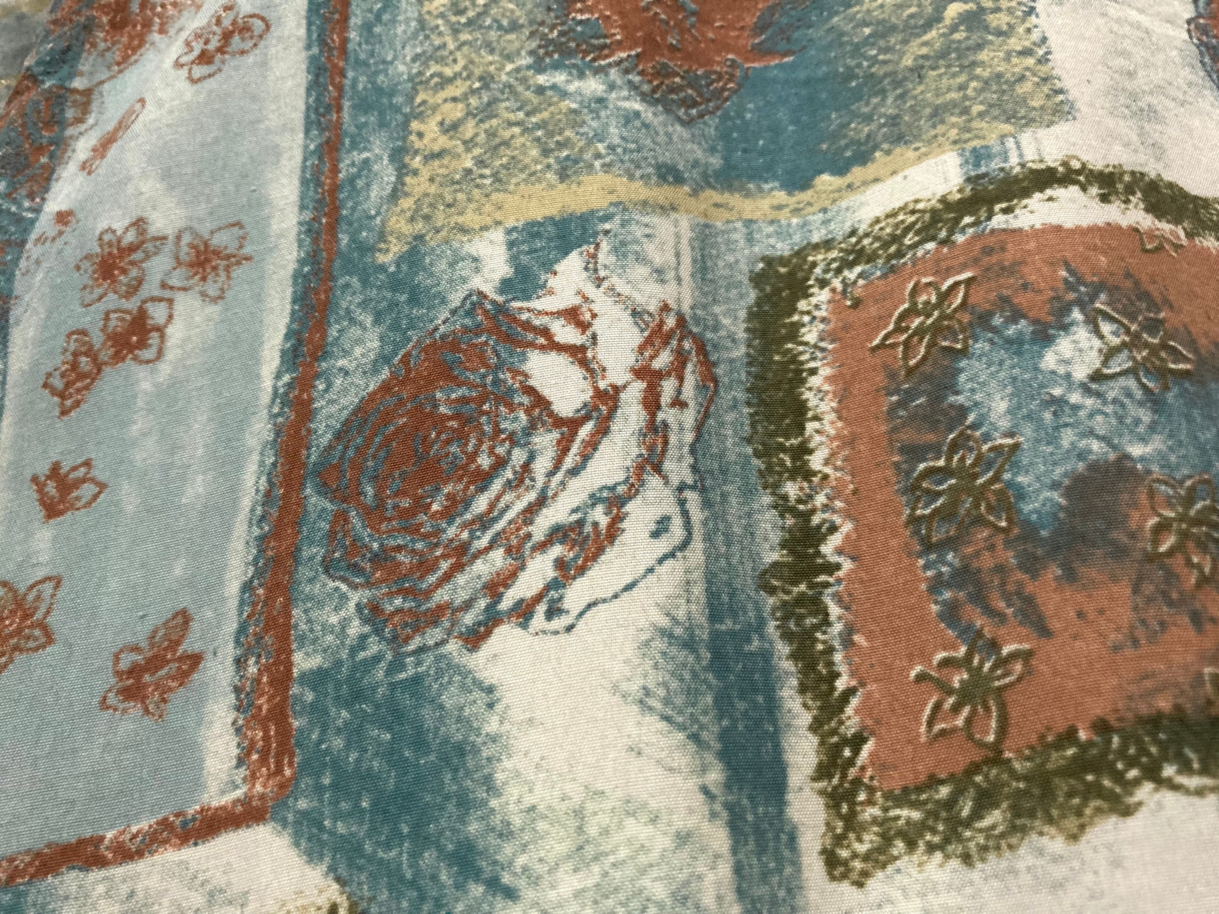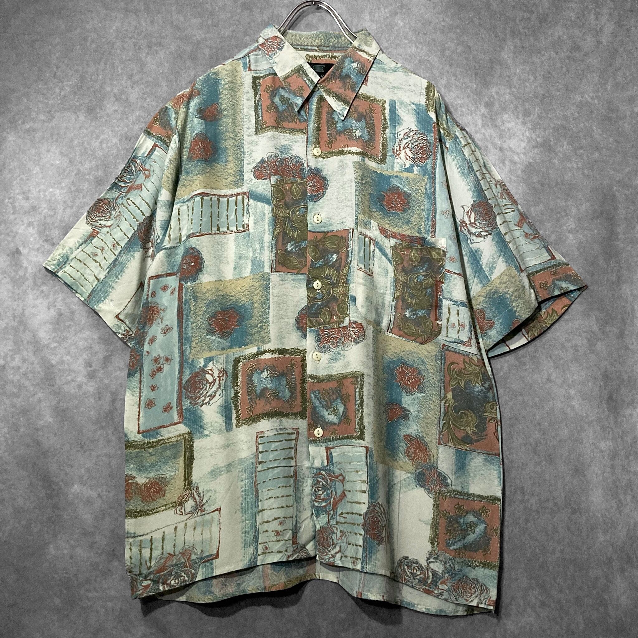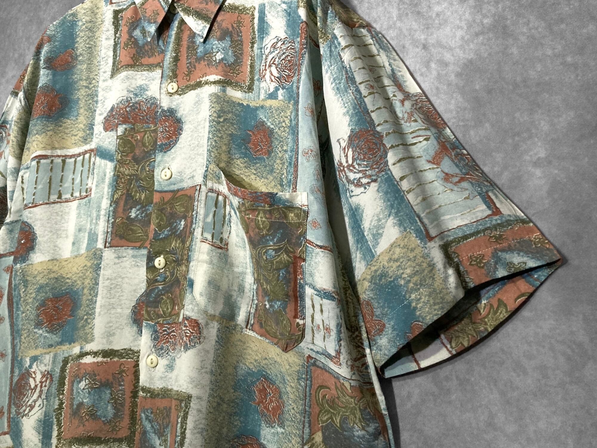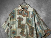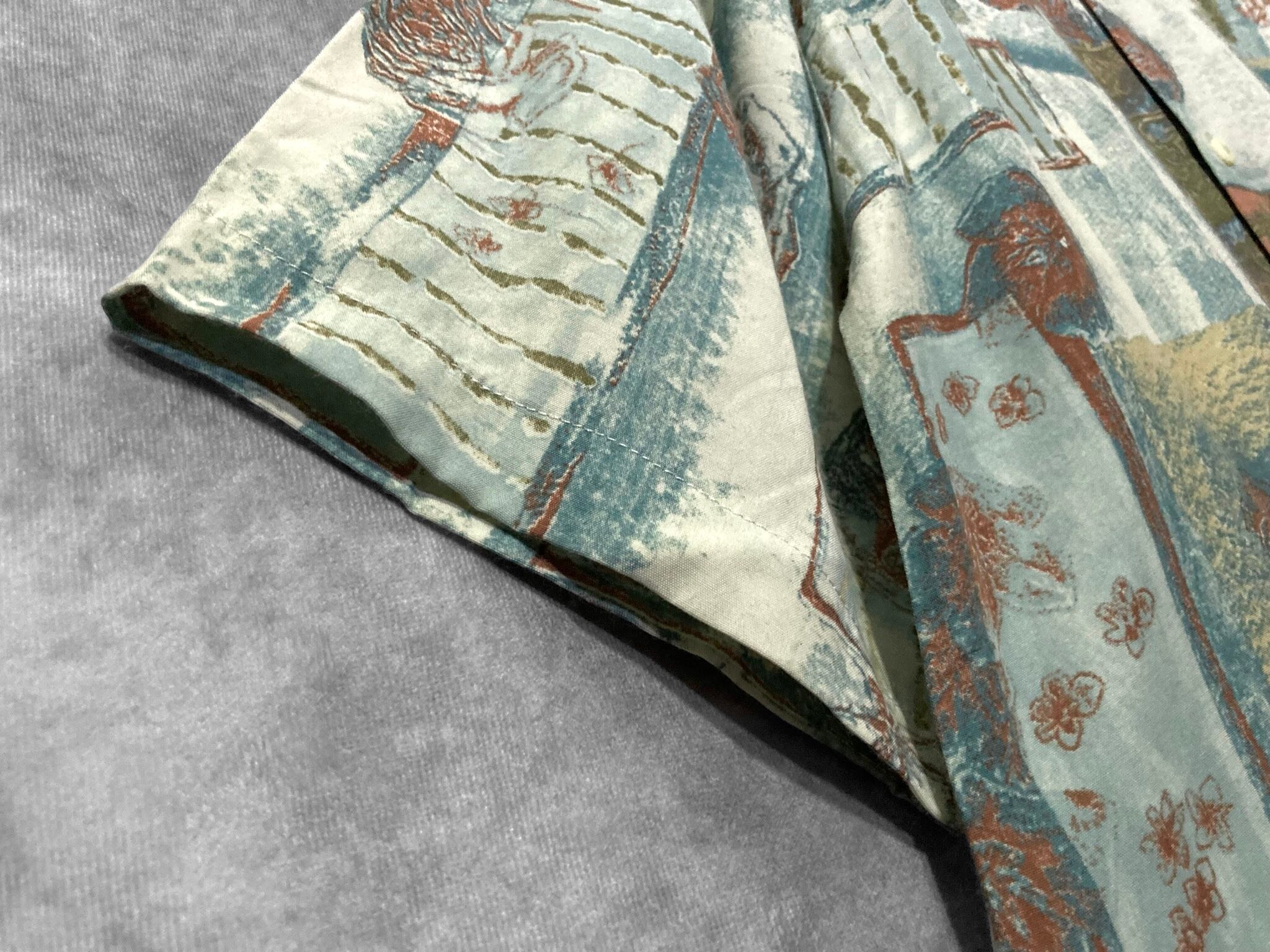クレヨンで描いては滲ませてを繰り返してデザインされた雰囲気ムンムンなアーティスティックな総柄シャツ。