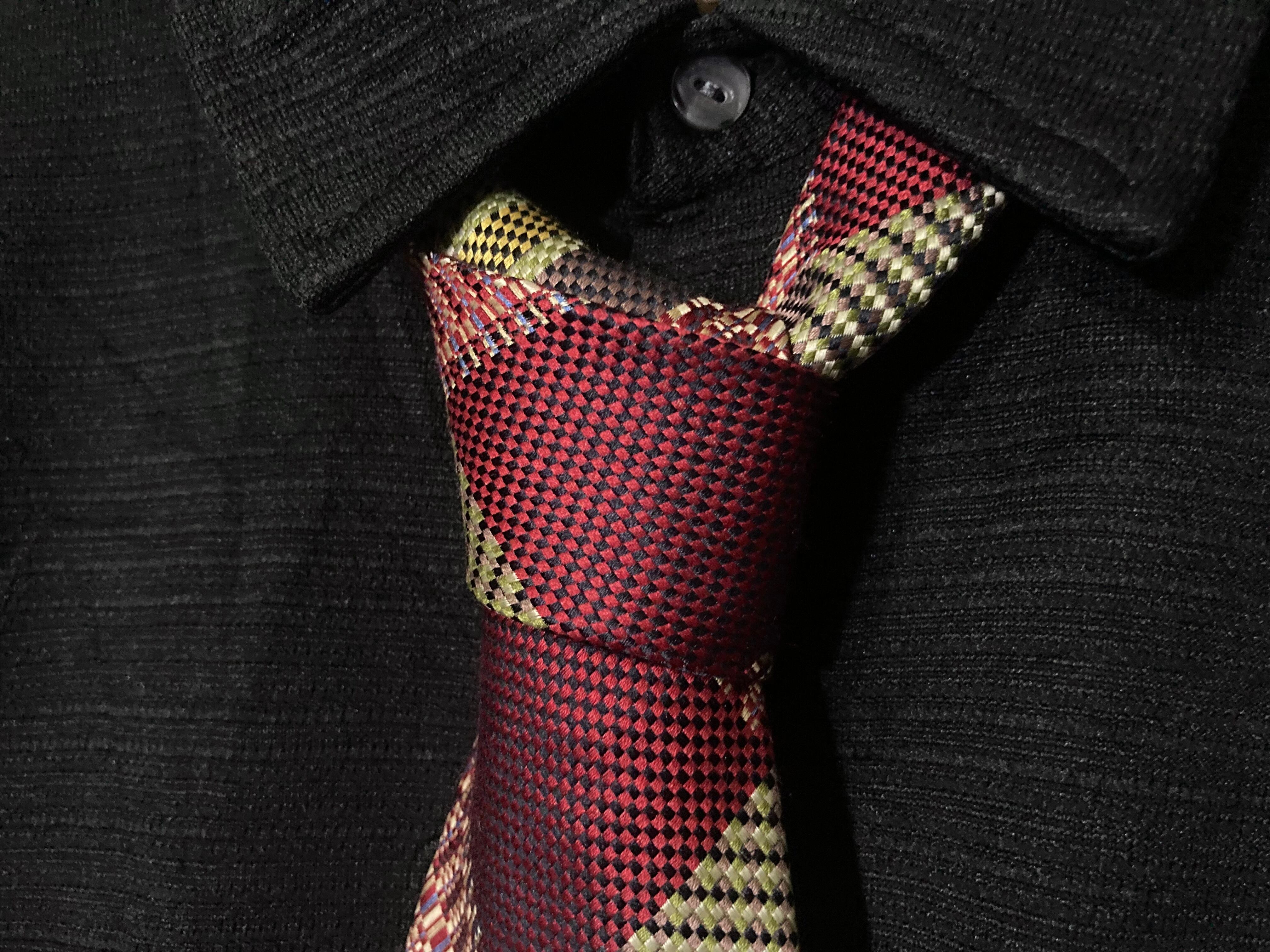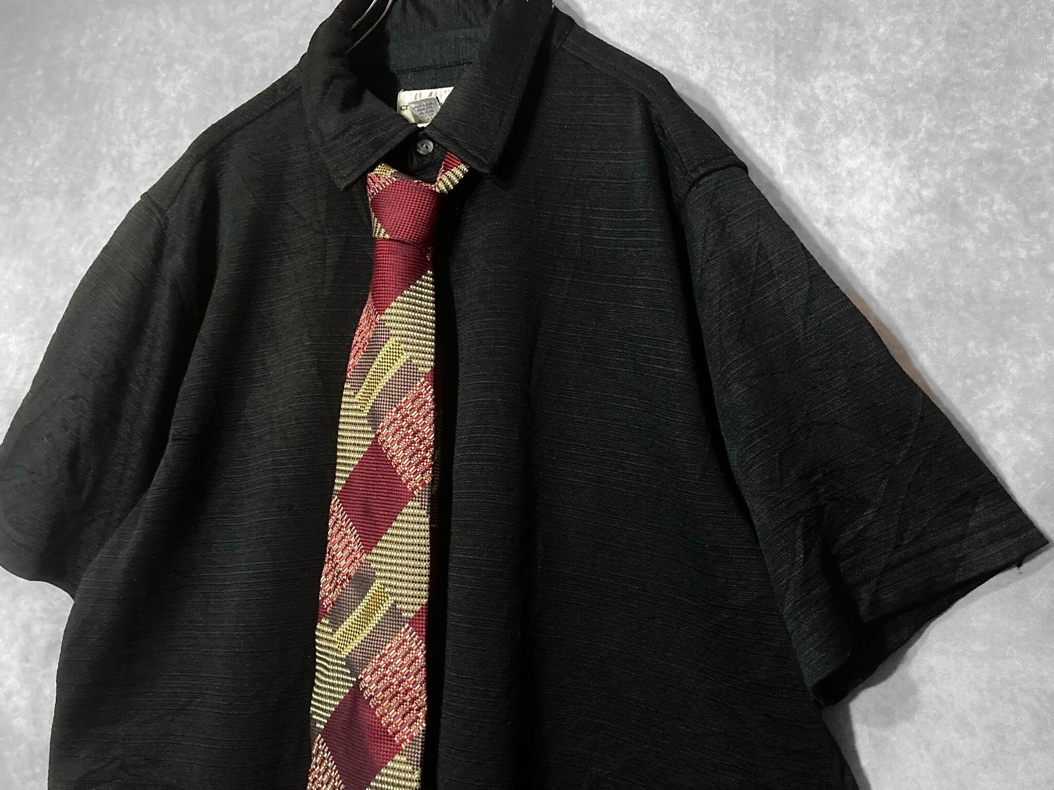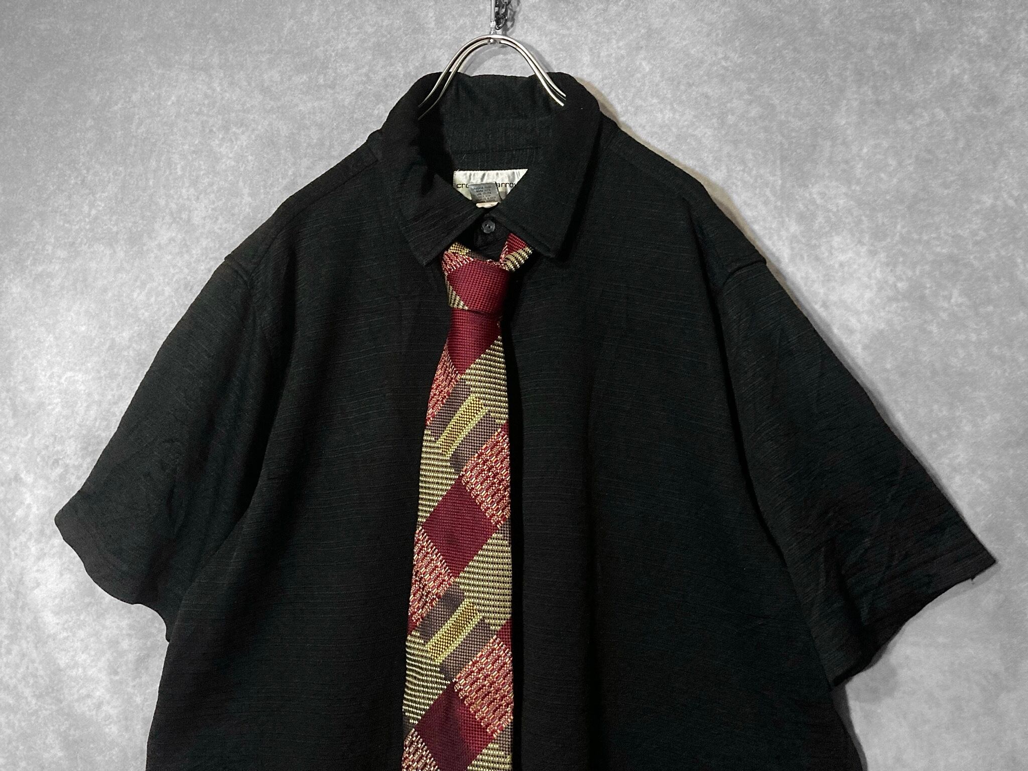 croft & barrow のブラックシャツとアーティスティックな総柄ネクタイを合わせたネクタイコーデセット。