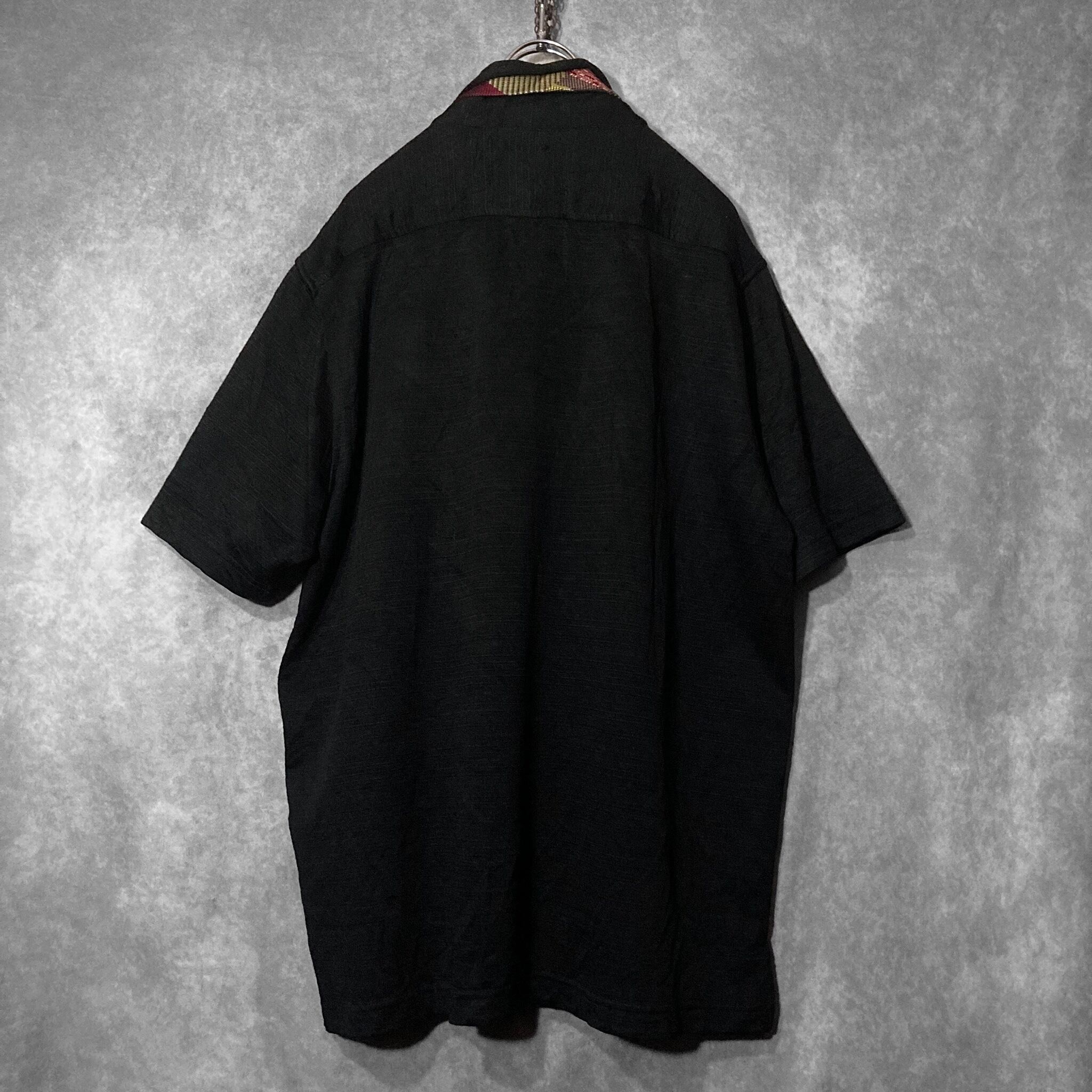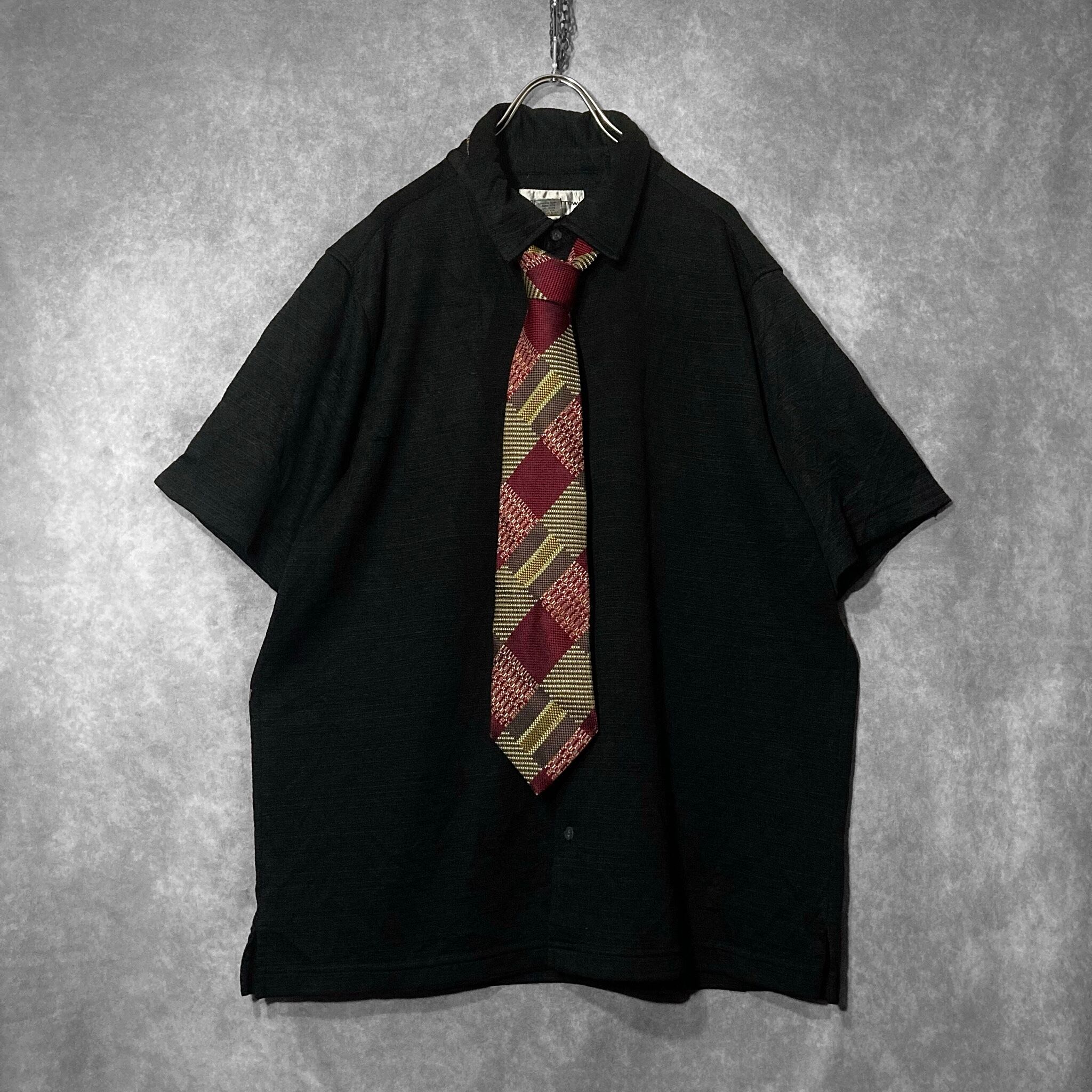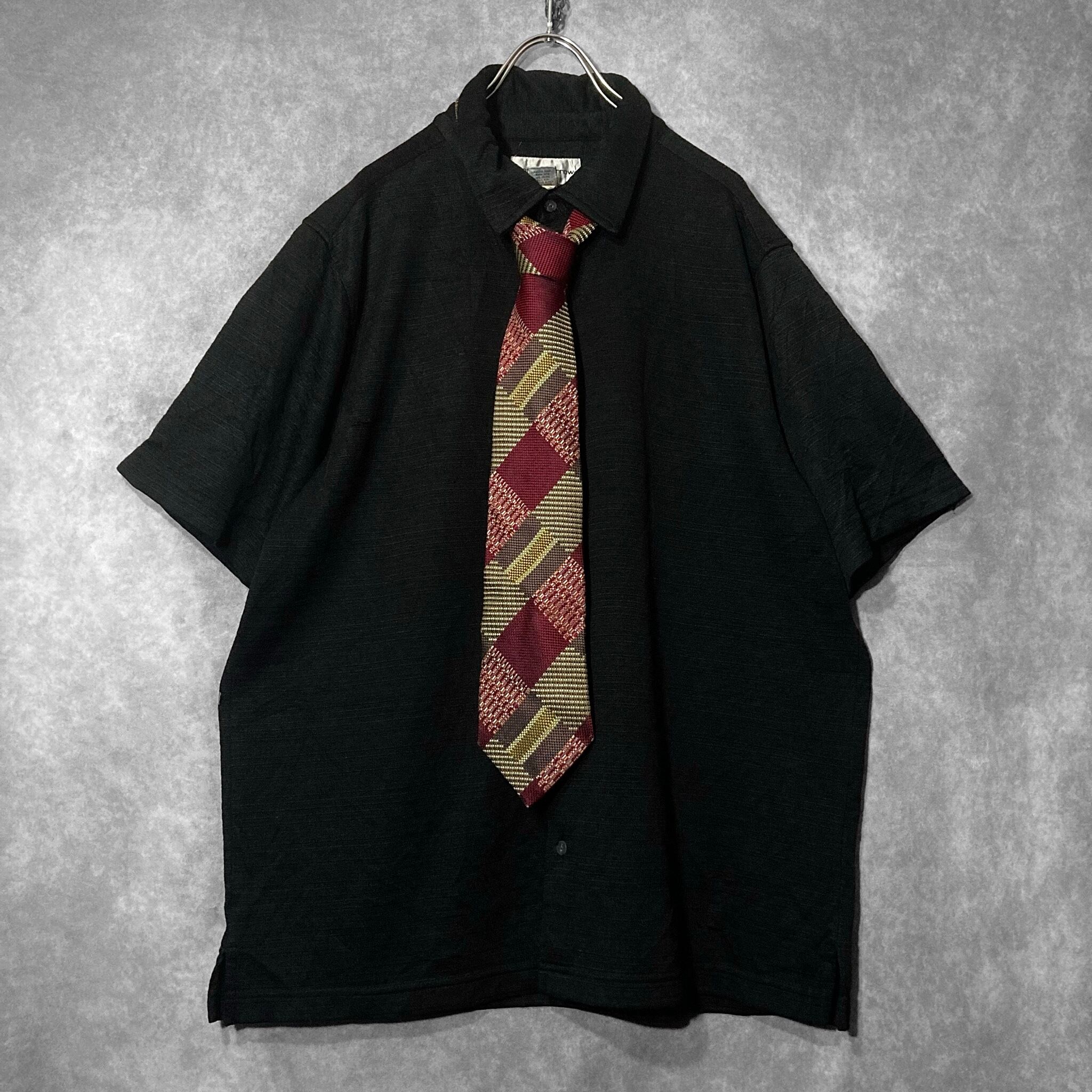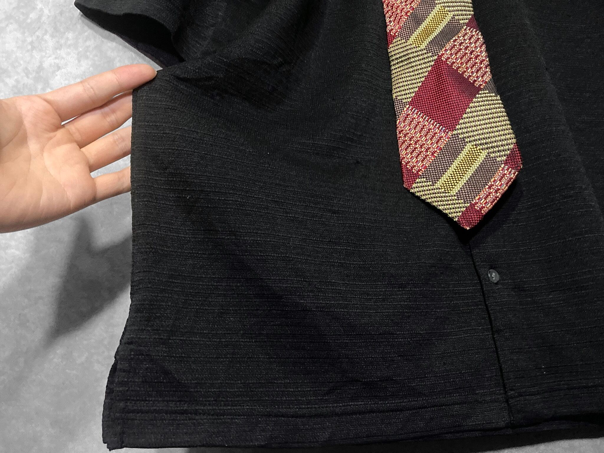 croft & barrow のブラックシャツとアーティスティックな総柄ネクタイを合わせたネクタイコーデセット。