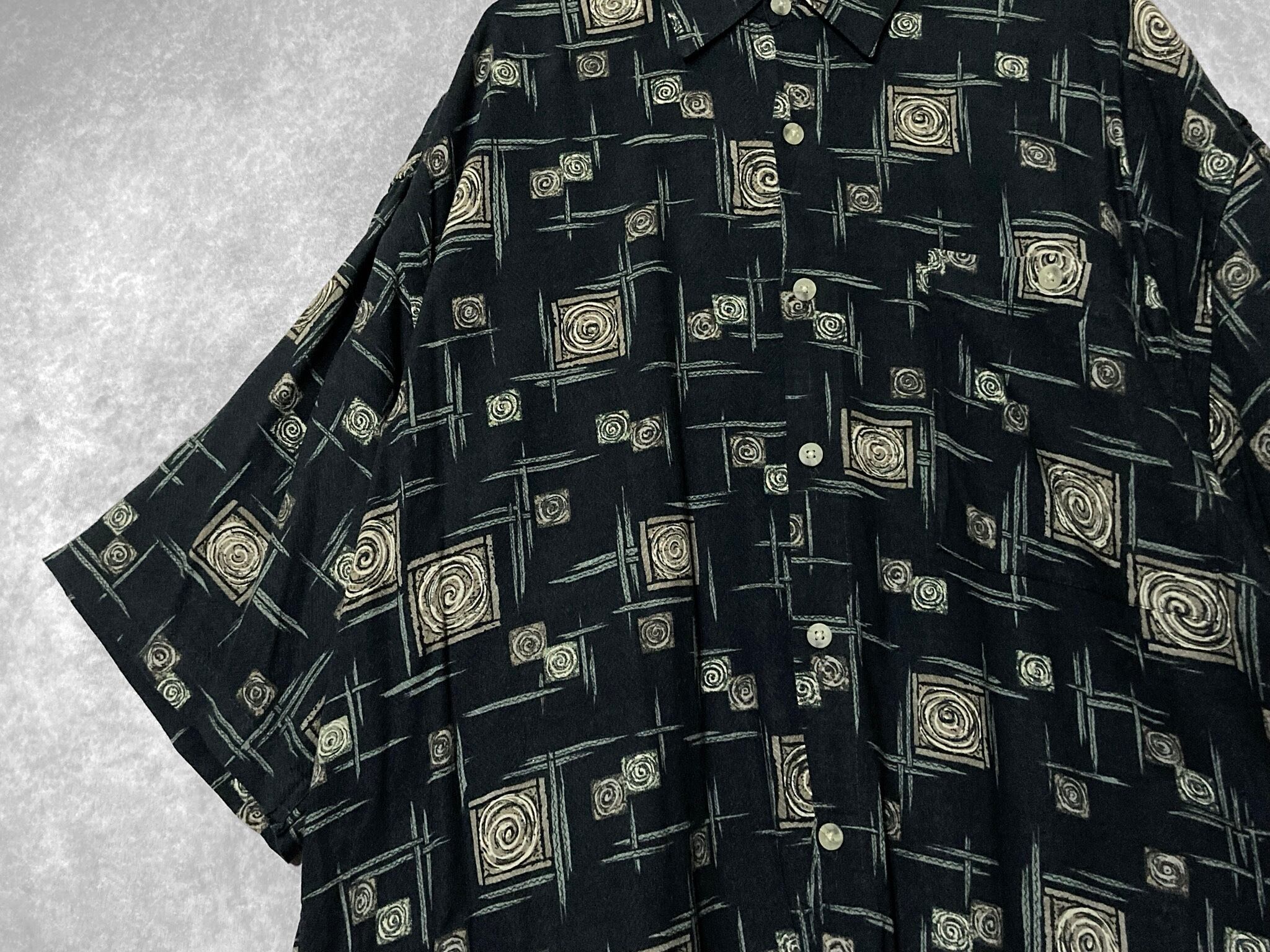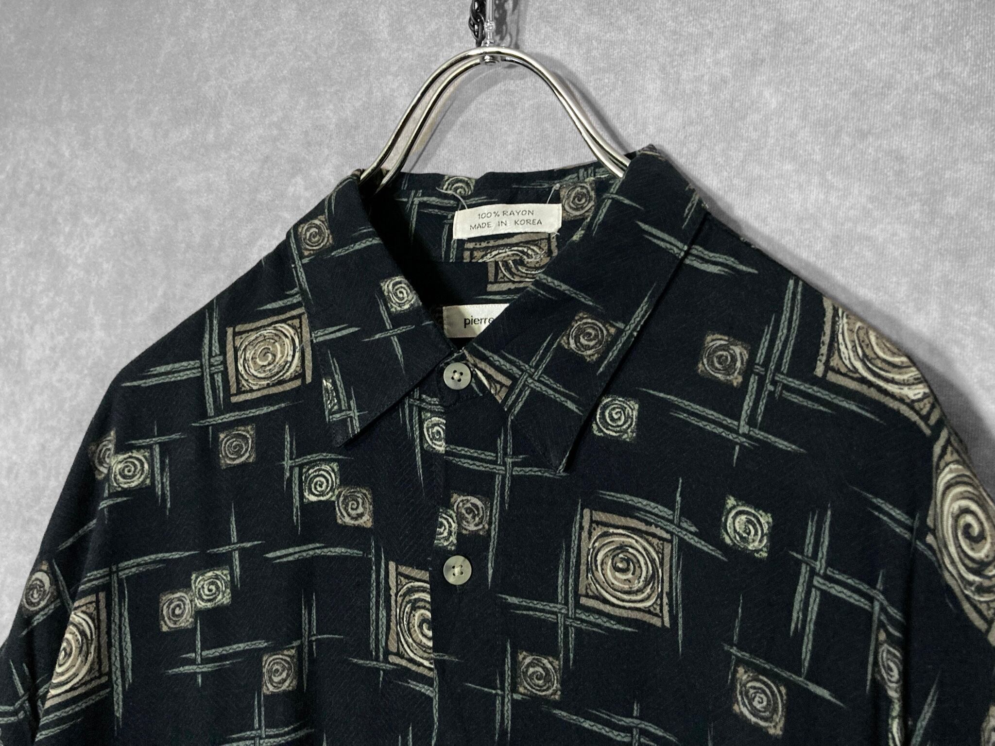 Pierre Cardin XXL size " 渦 " Vortex art all over pattern design S/S shirt