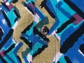 冴えるような寒冷ブルートーンのペイントアートデザインが雰囲気ムンムンな総柄シャツ。