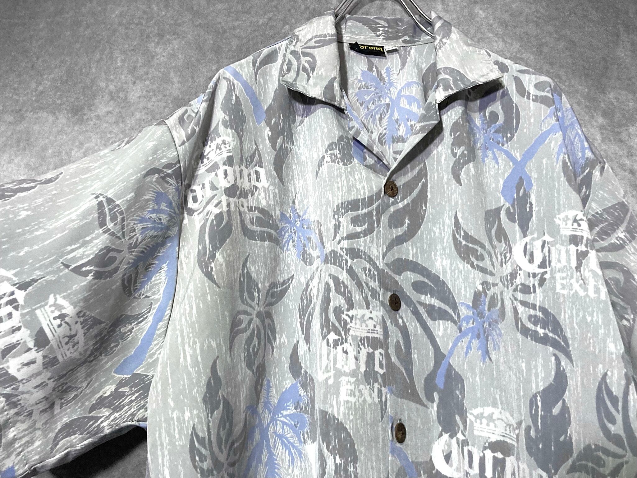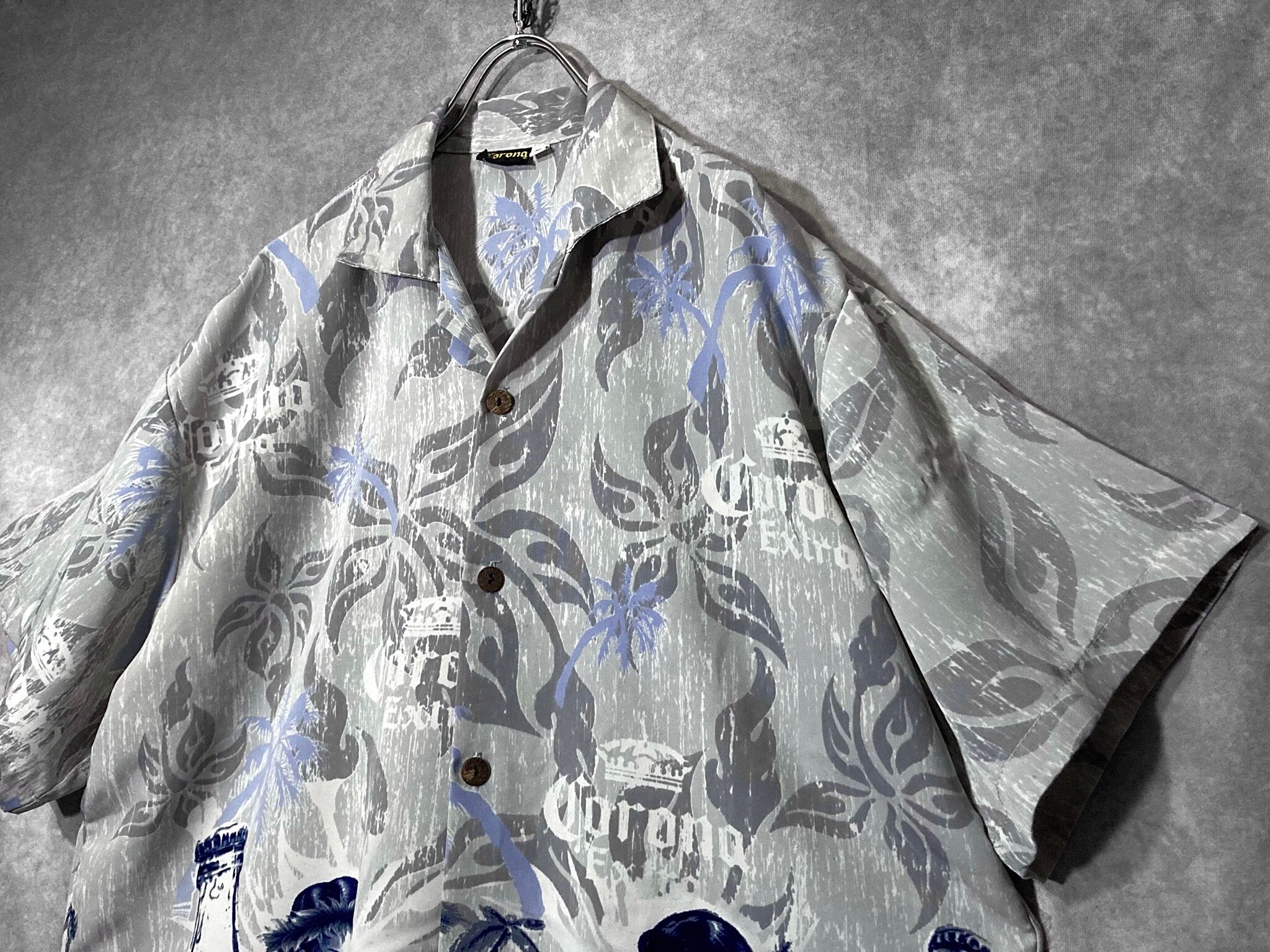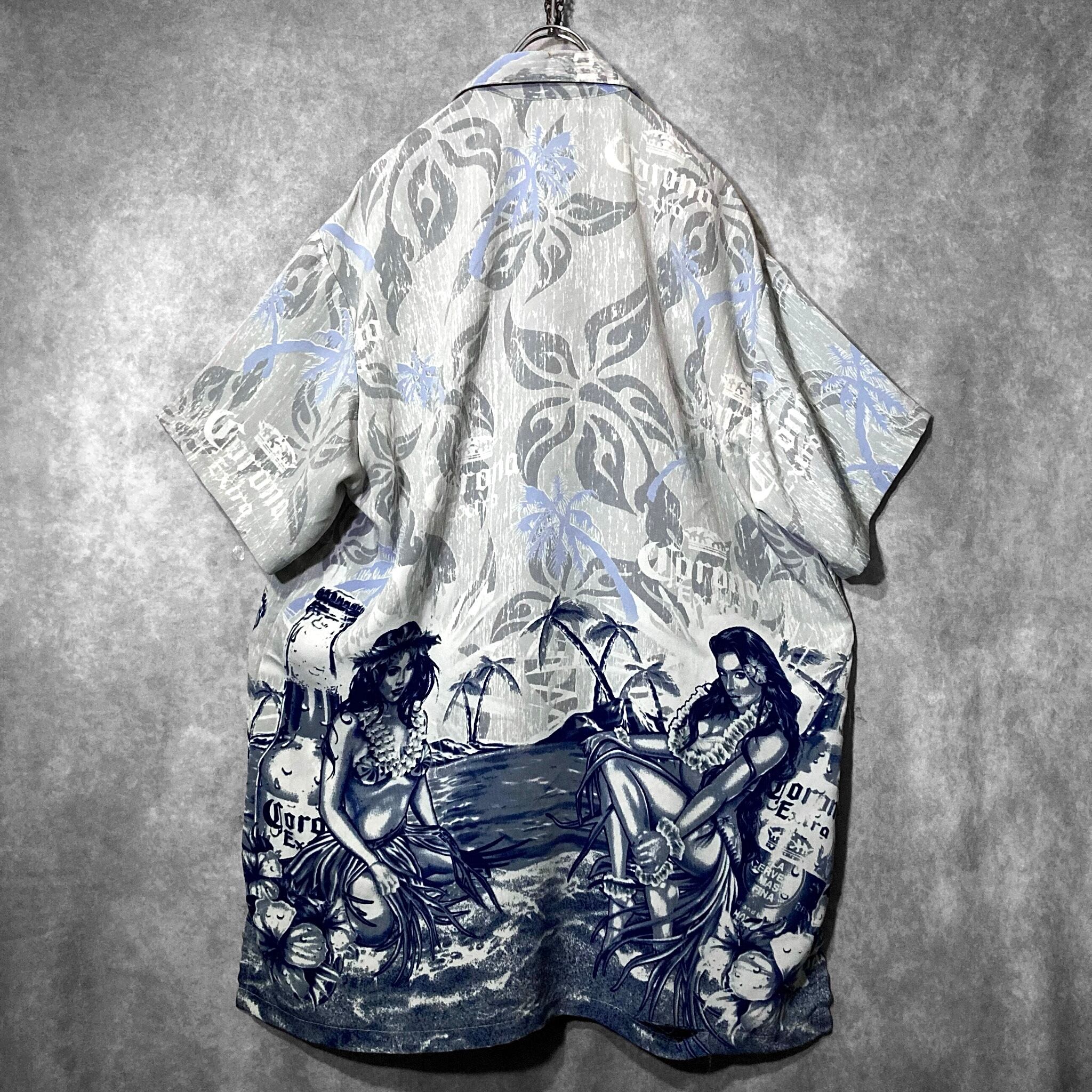 メキシコではメジャーのCorona Extra (コロナ・エキストラ) ビールと、もたれかかるsexyな美女が大胆にプリントされたオーバーサイズの花柄シャツ。