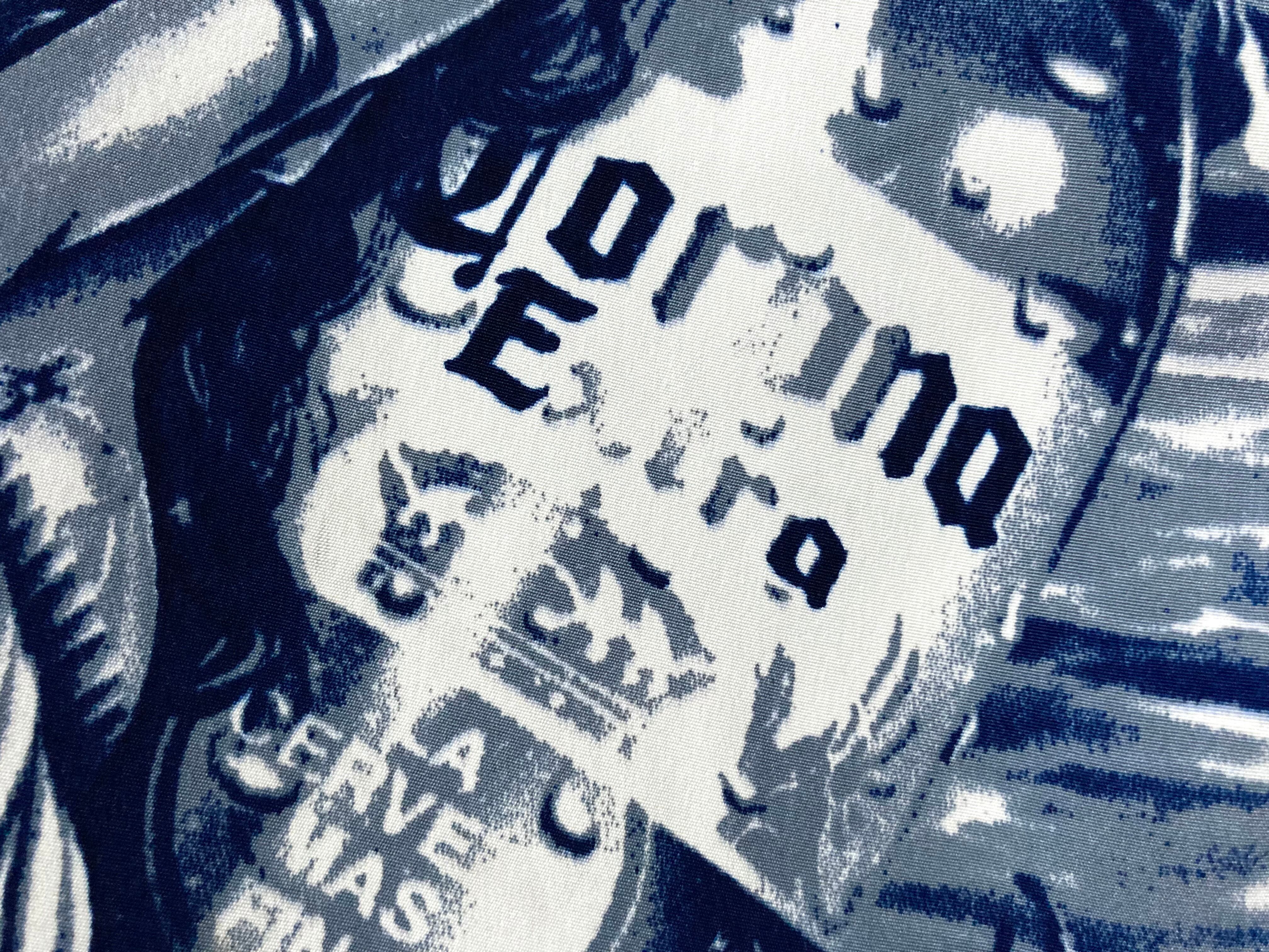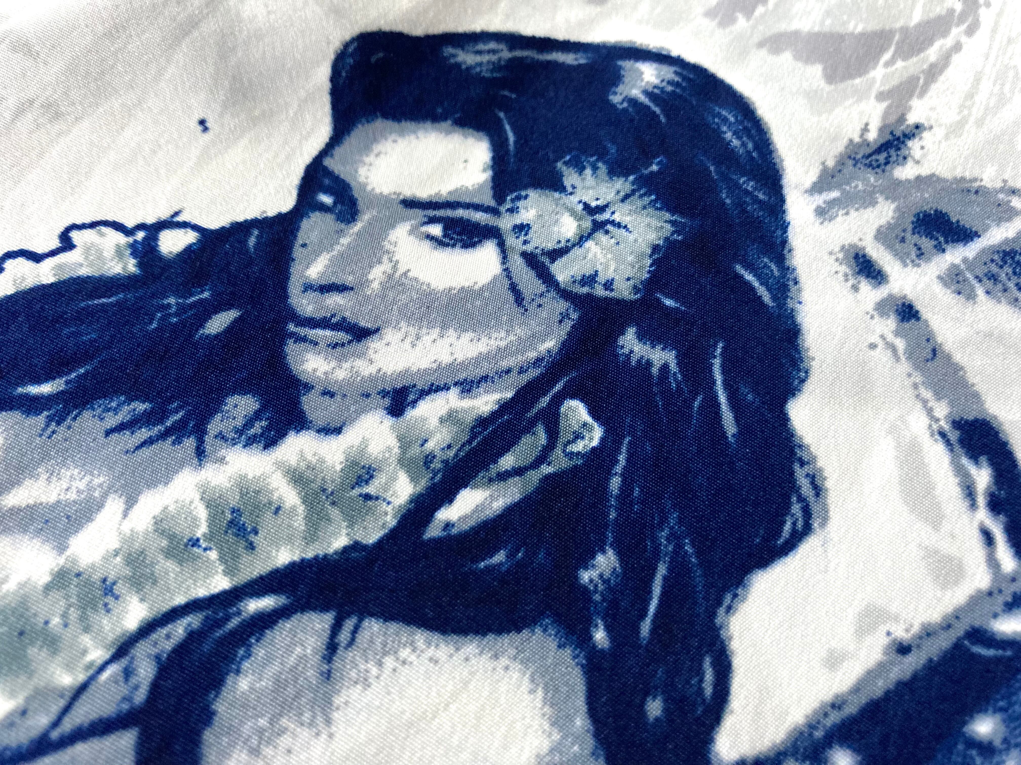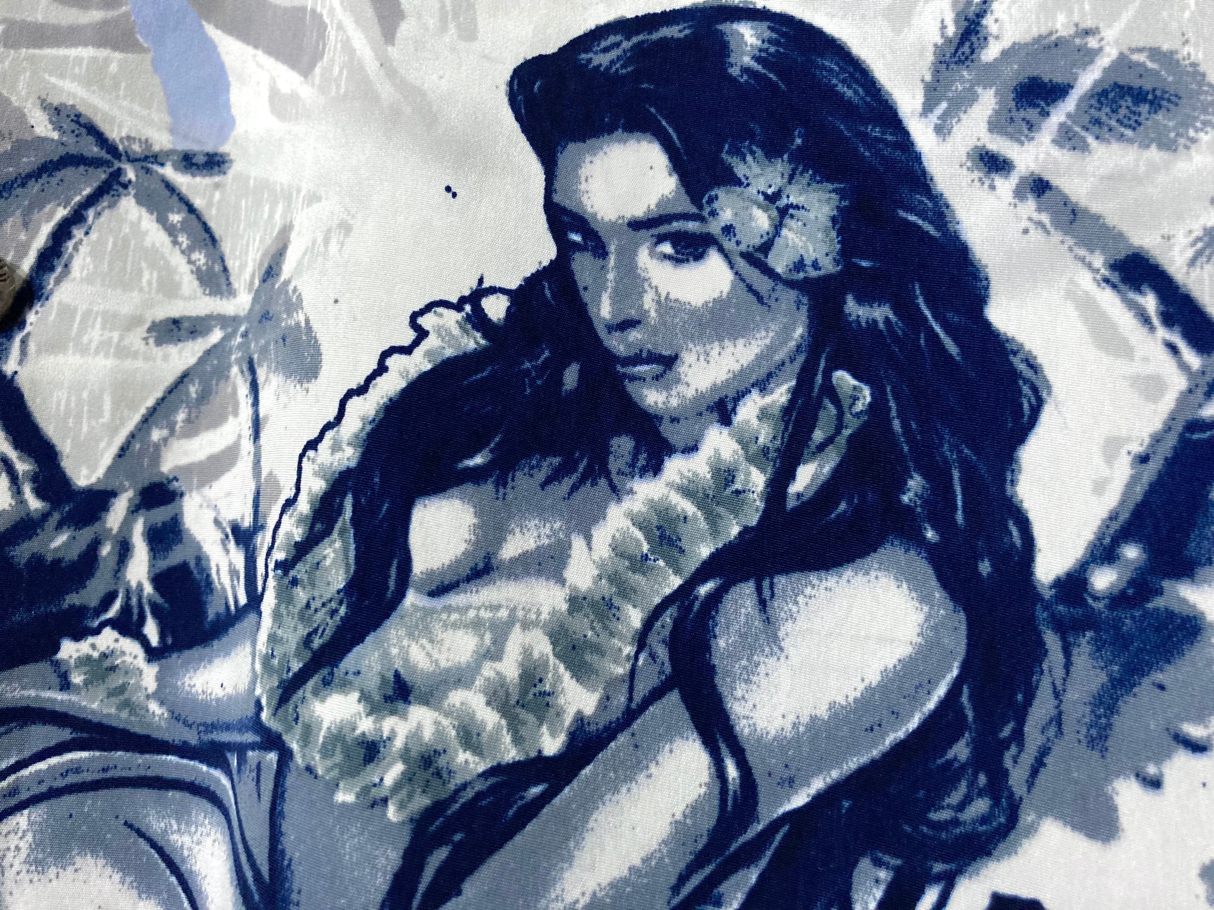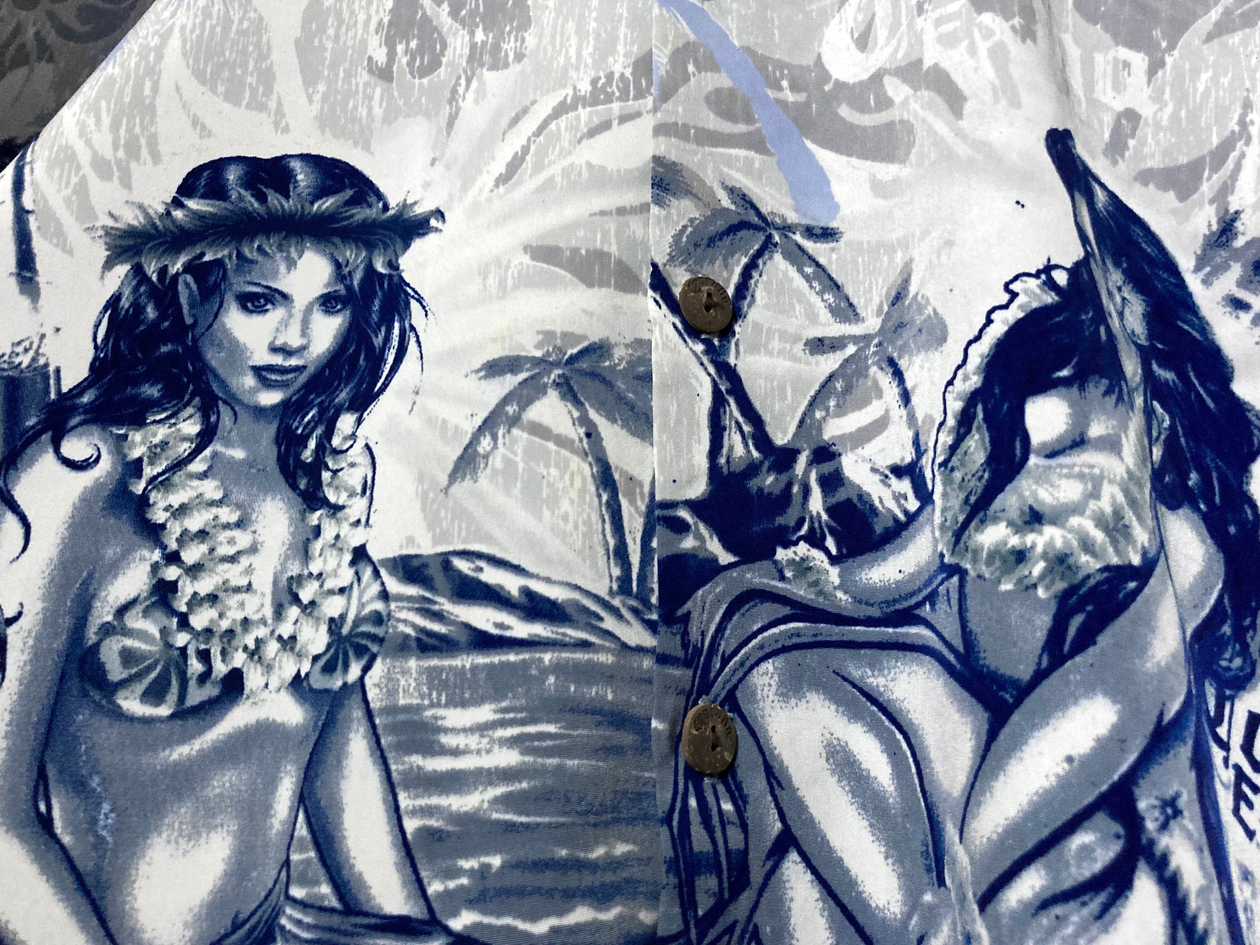 メキシコではメジャーのCorona Extra (コロナ・エキストラ) ビールと、もたれかかるsexyな美女が大胆にプリントされたオーバーサイズの花柄シャツ。