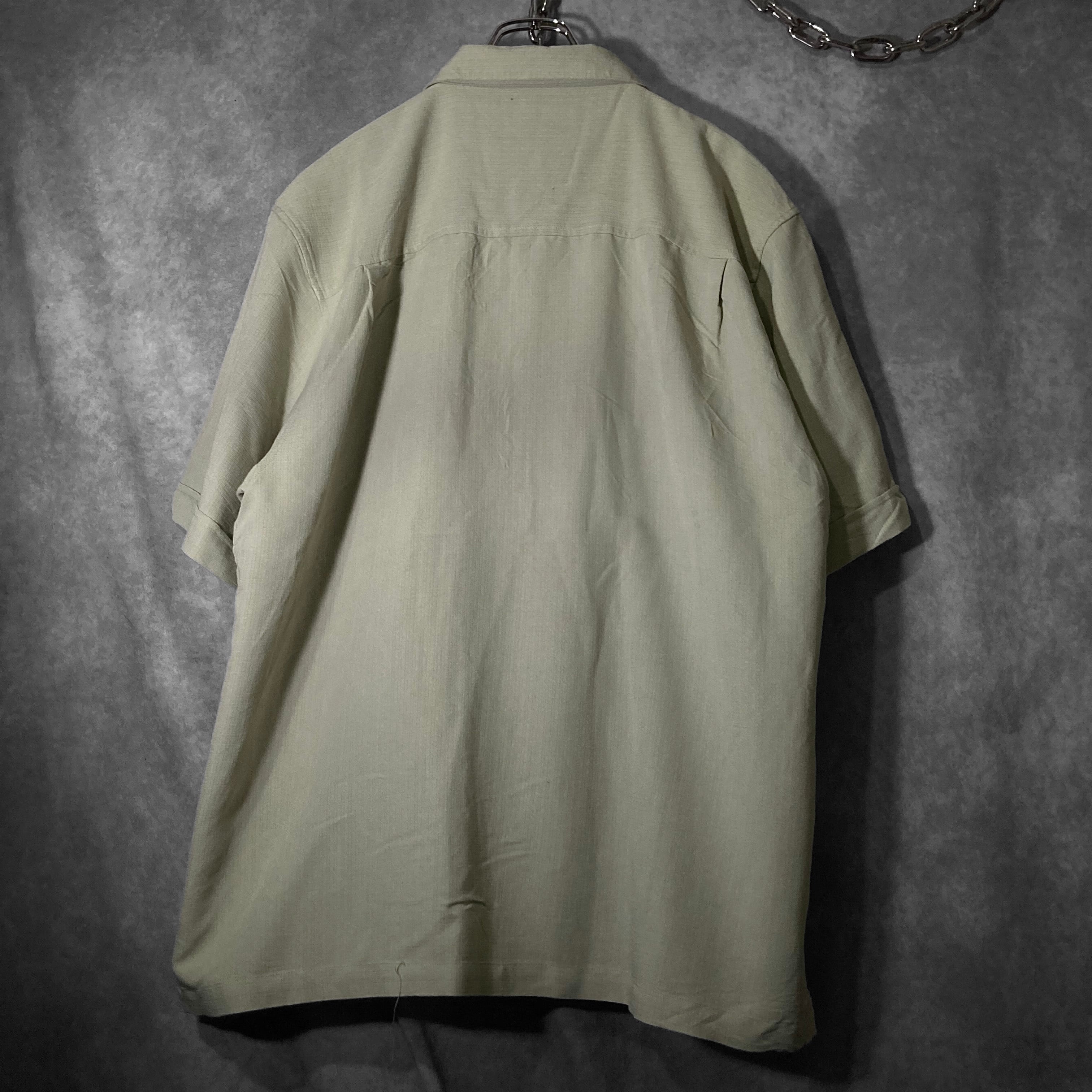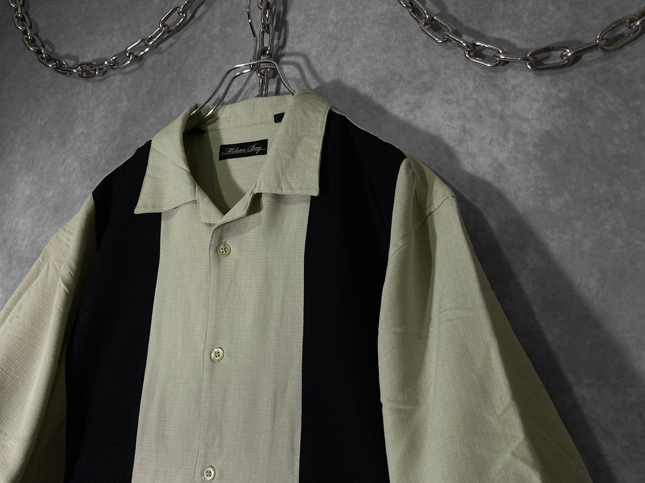 XXL 開襟 Kinari × Black color Switching design Open-Collar S/S shirt