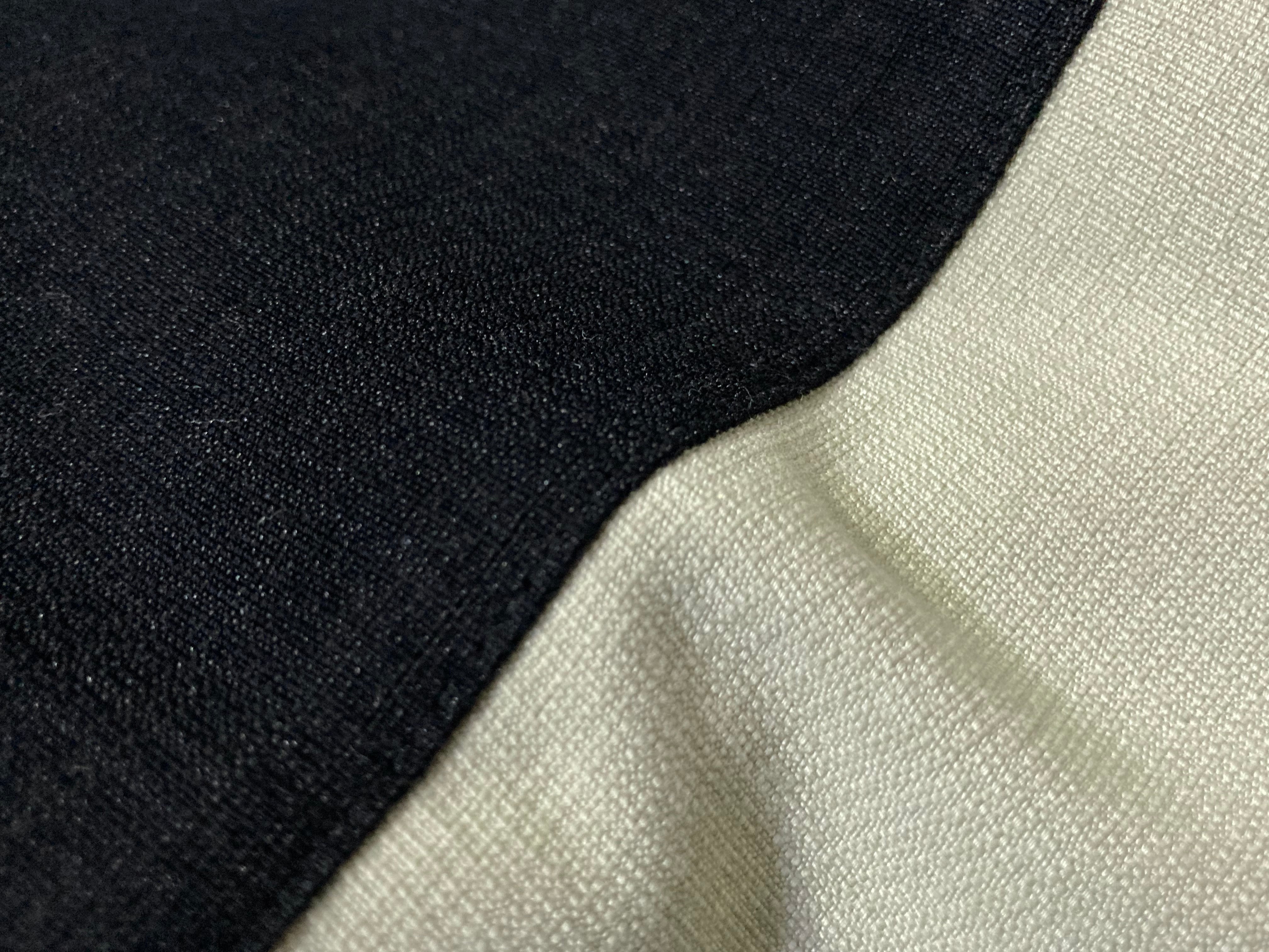 生成りカラーと黒のコントラストが印象的な開襟シャツの入荷です。