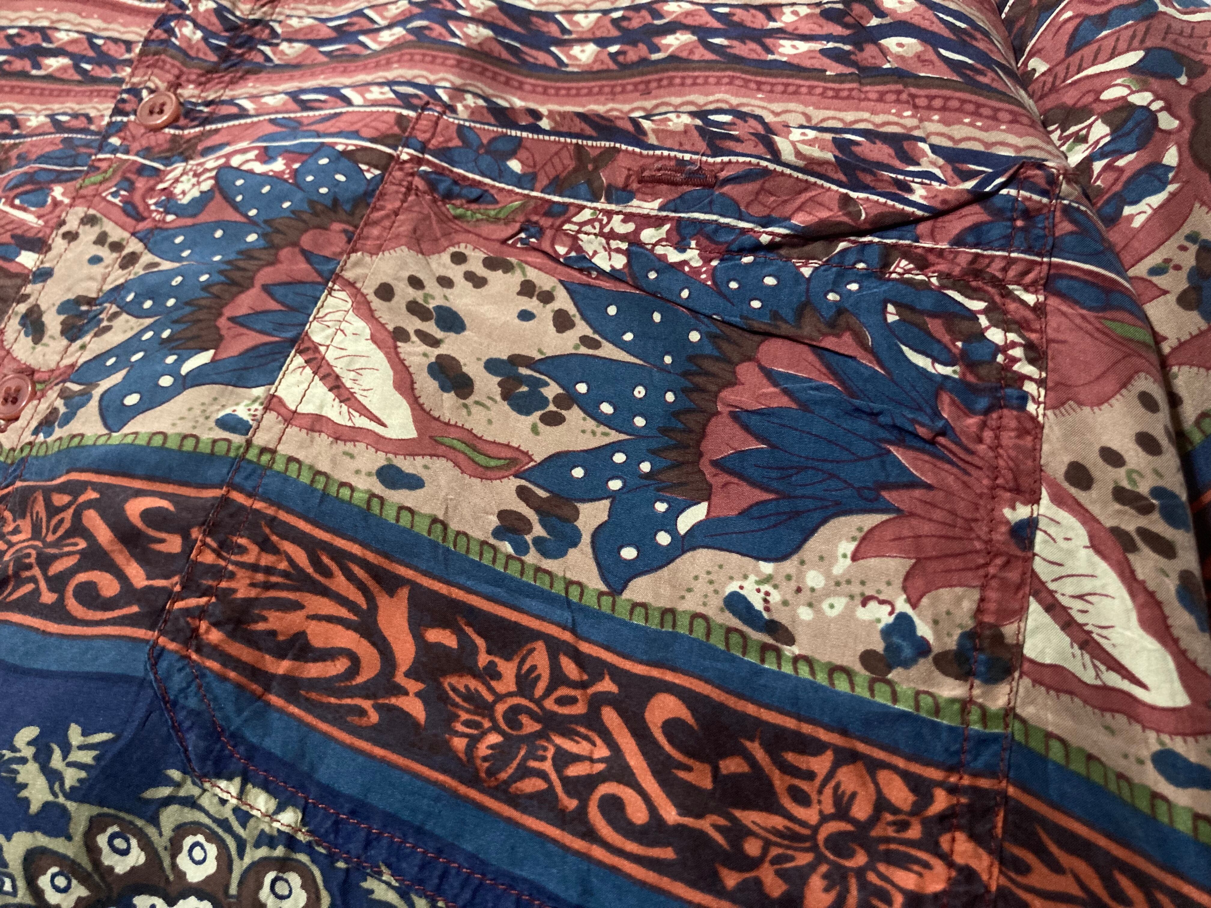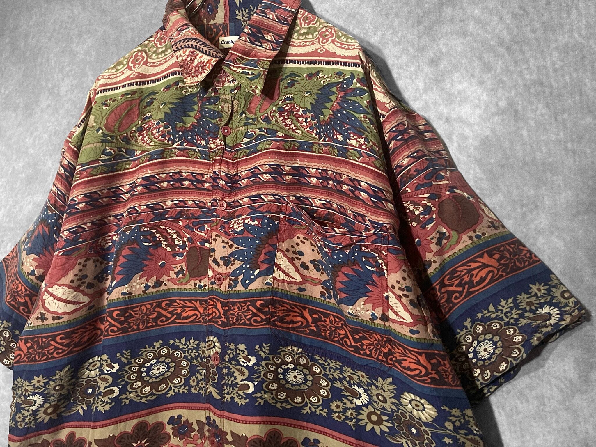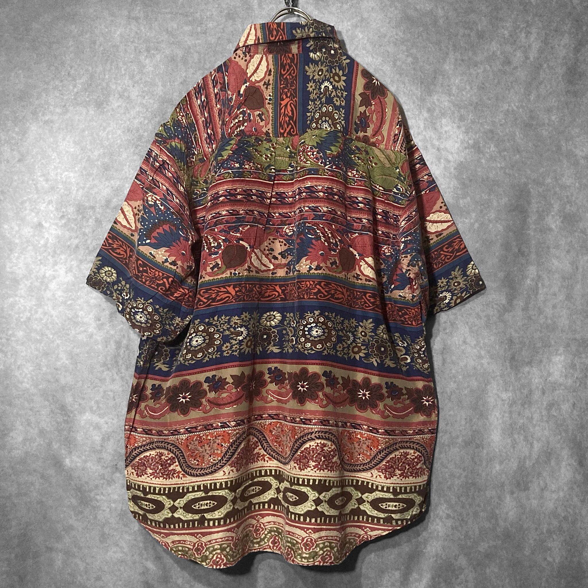 XXL Floral all over pattern art design silk S/S shirt