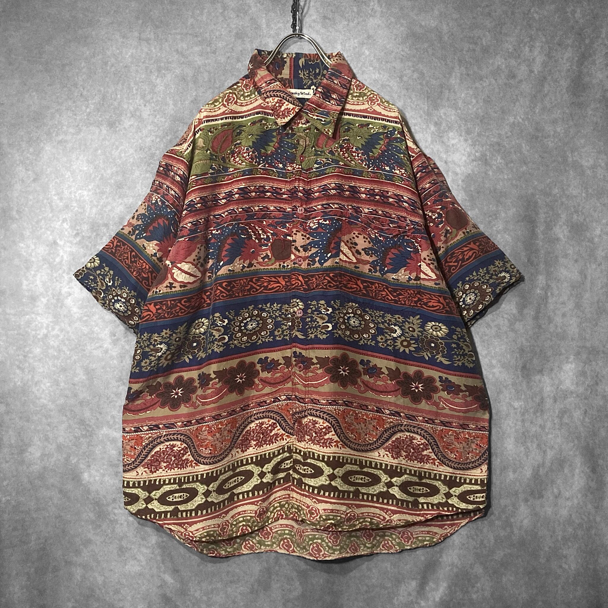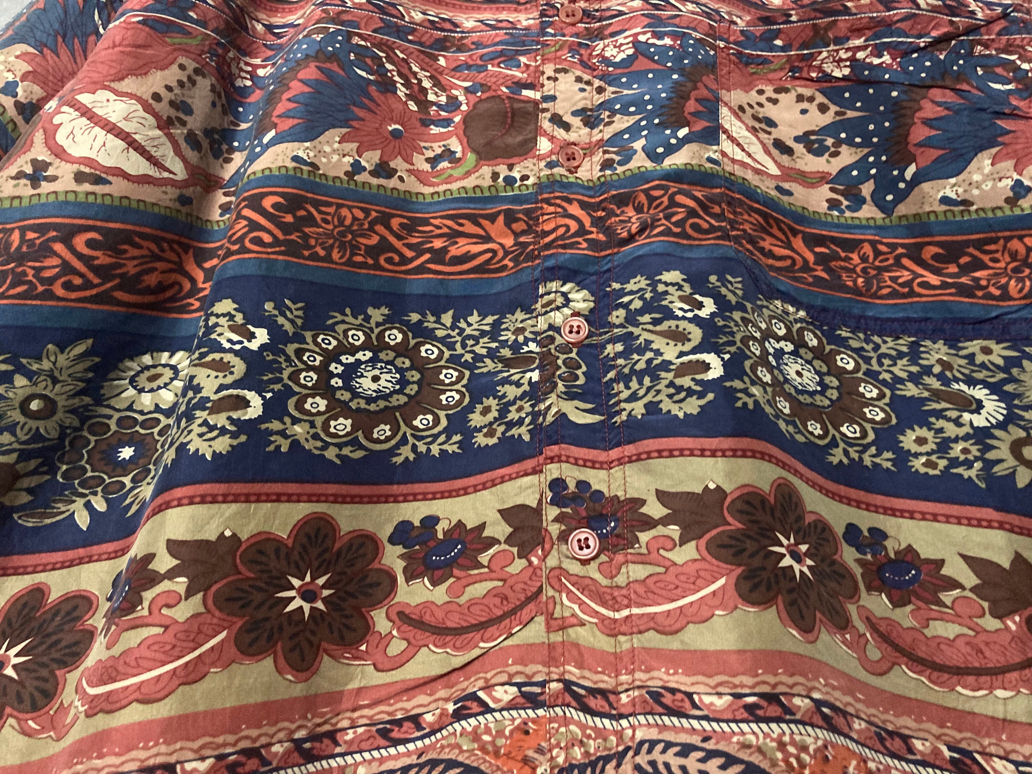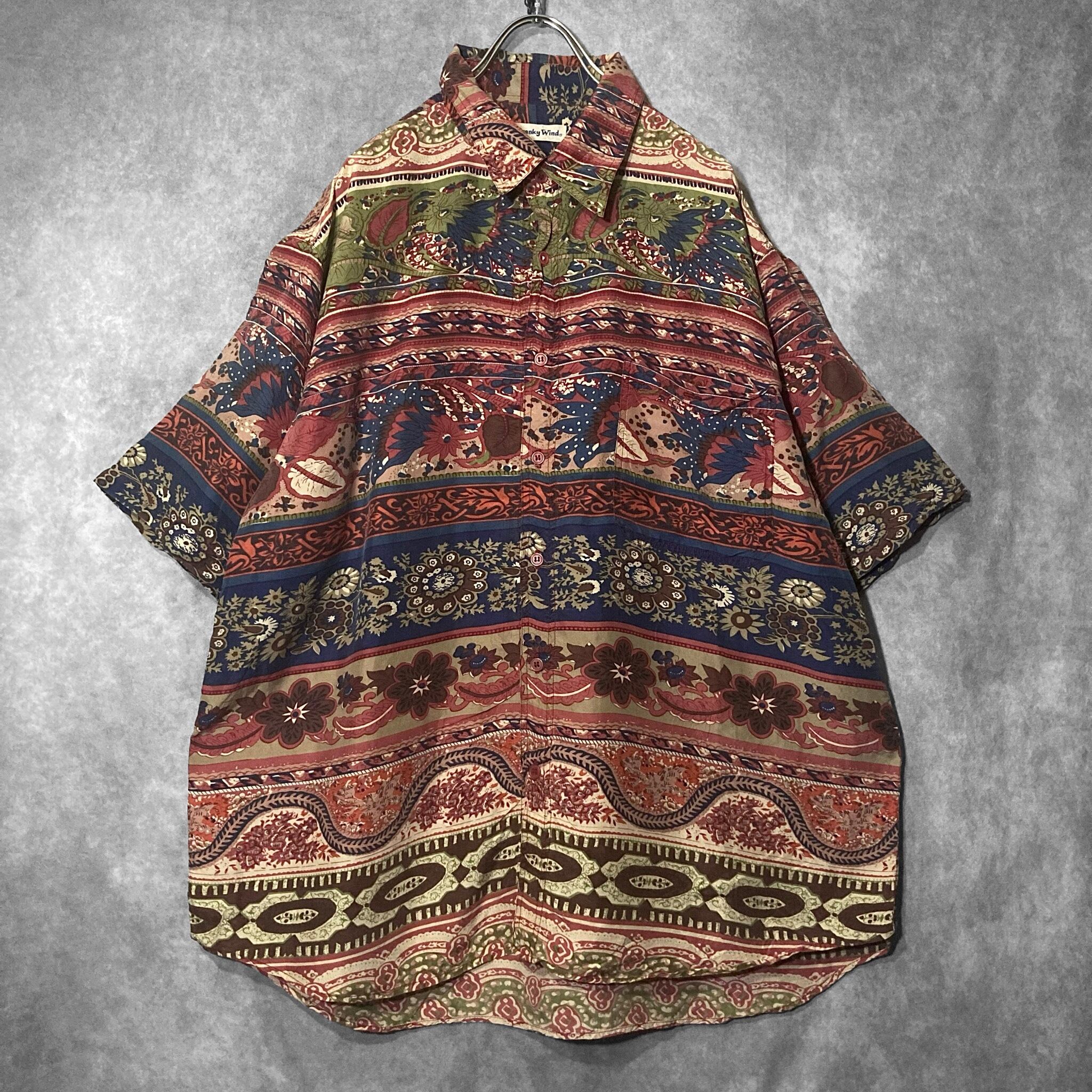 XXL Floral all over pattern art design silk S/S shirt