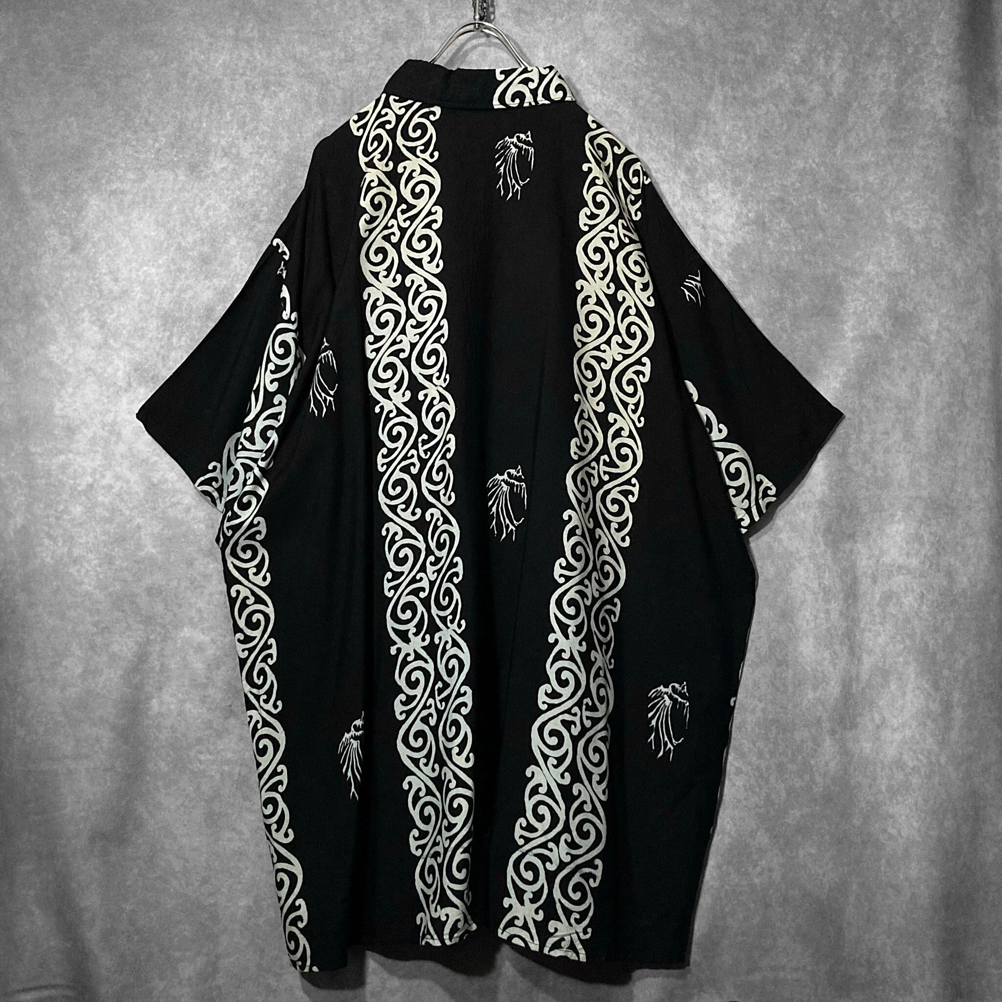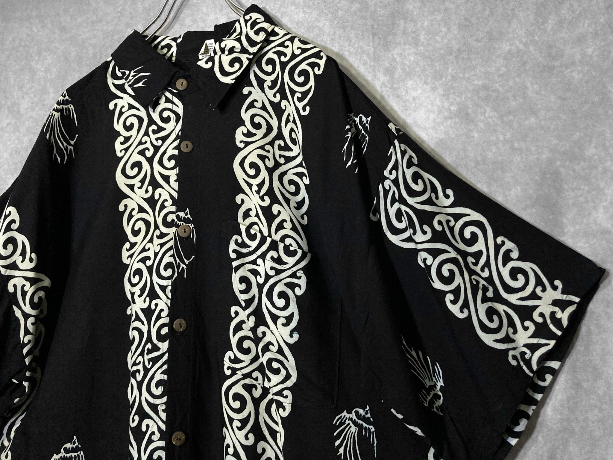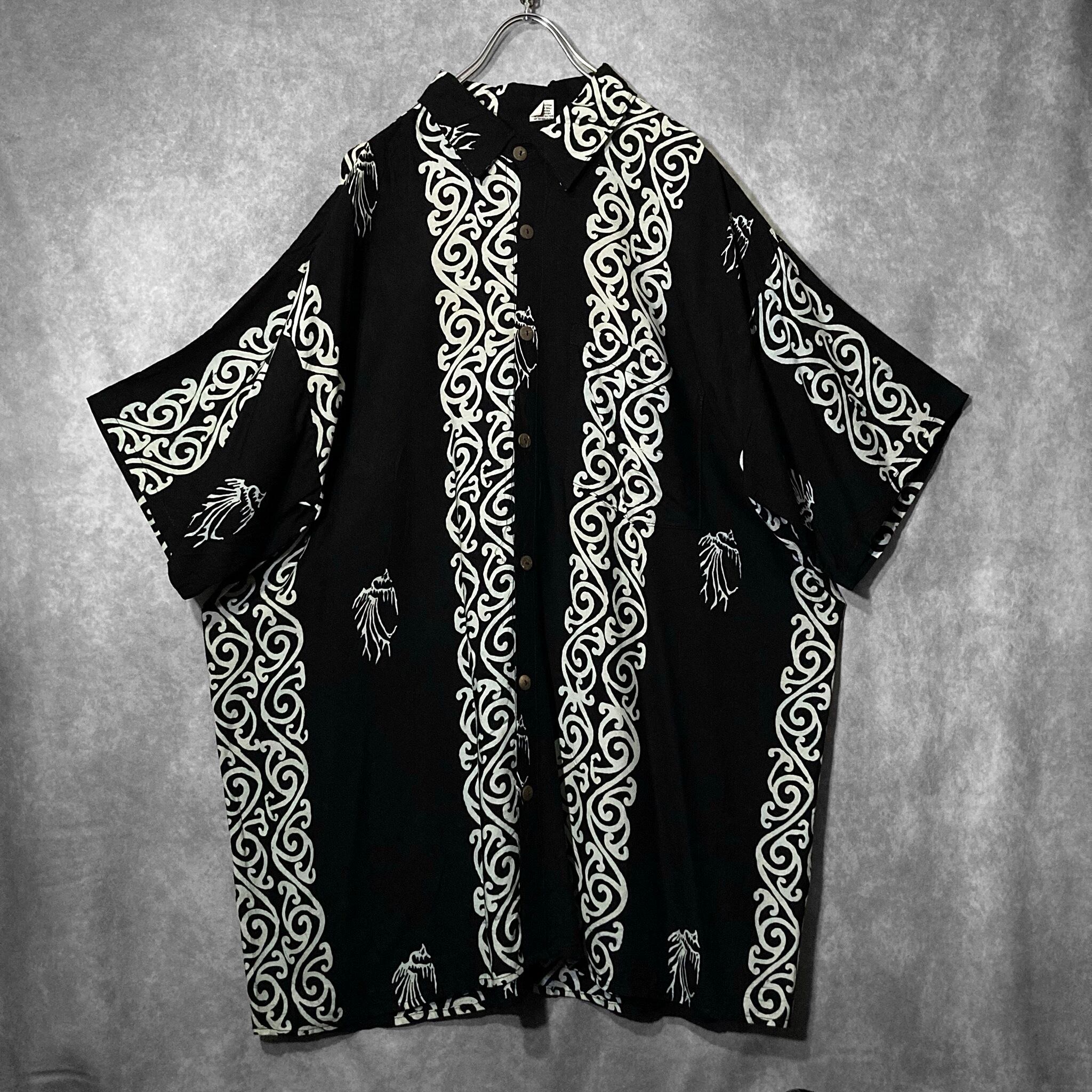 XXXL 唐草 Arabesque all over pattern Monochrome design vintage S/S shirt
