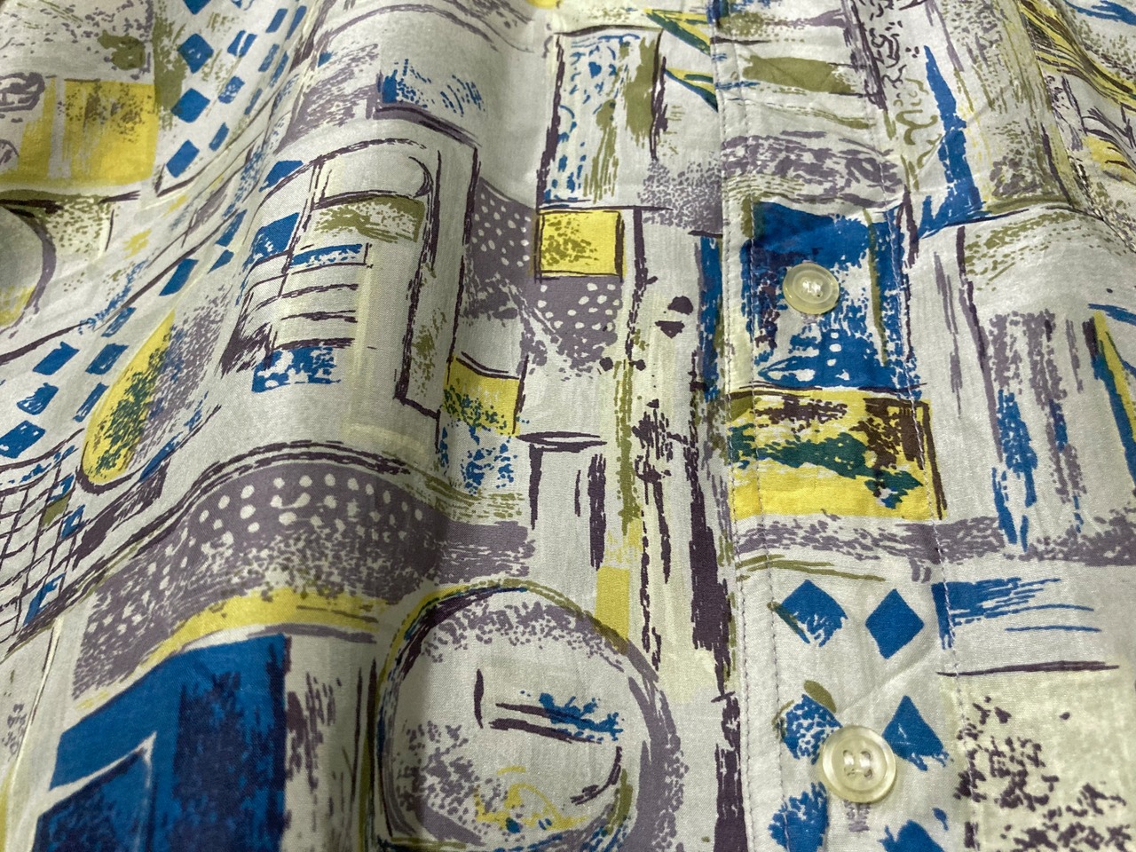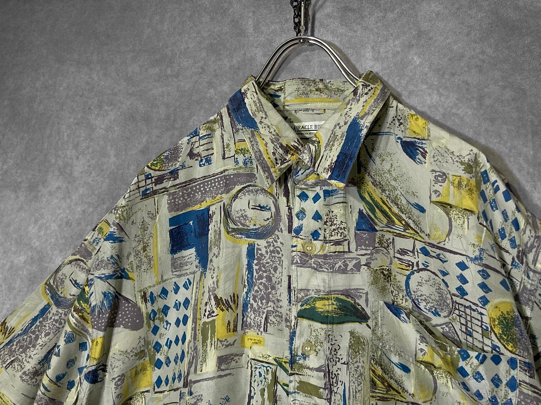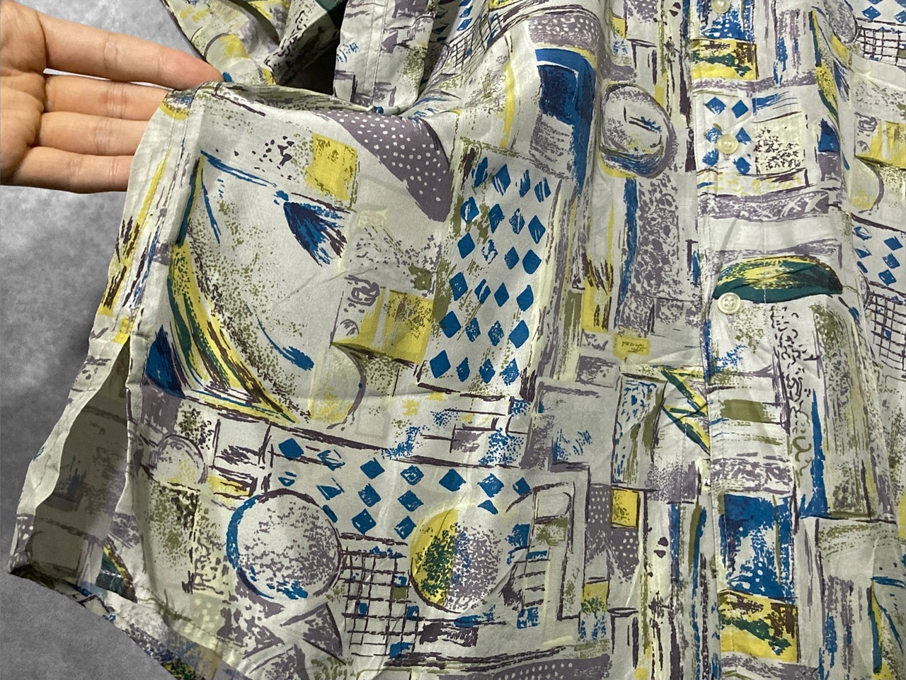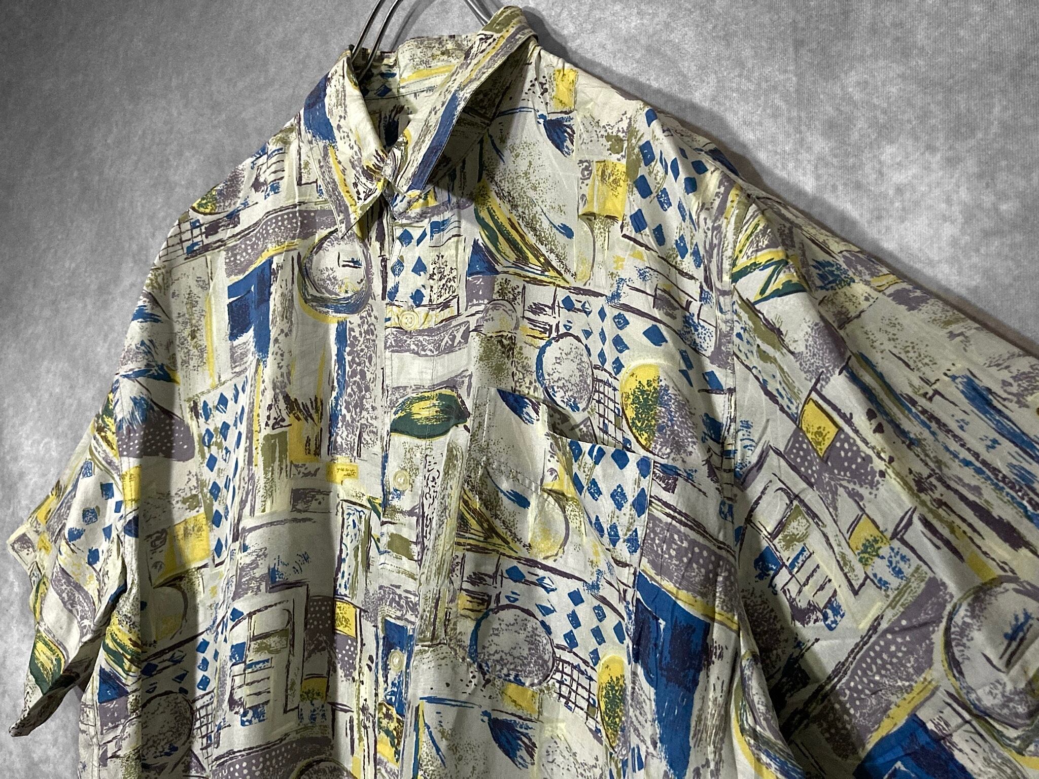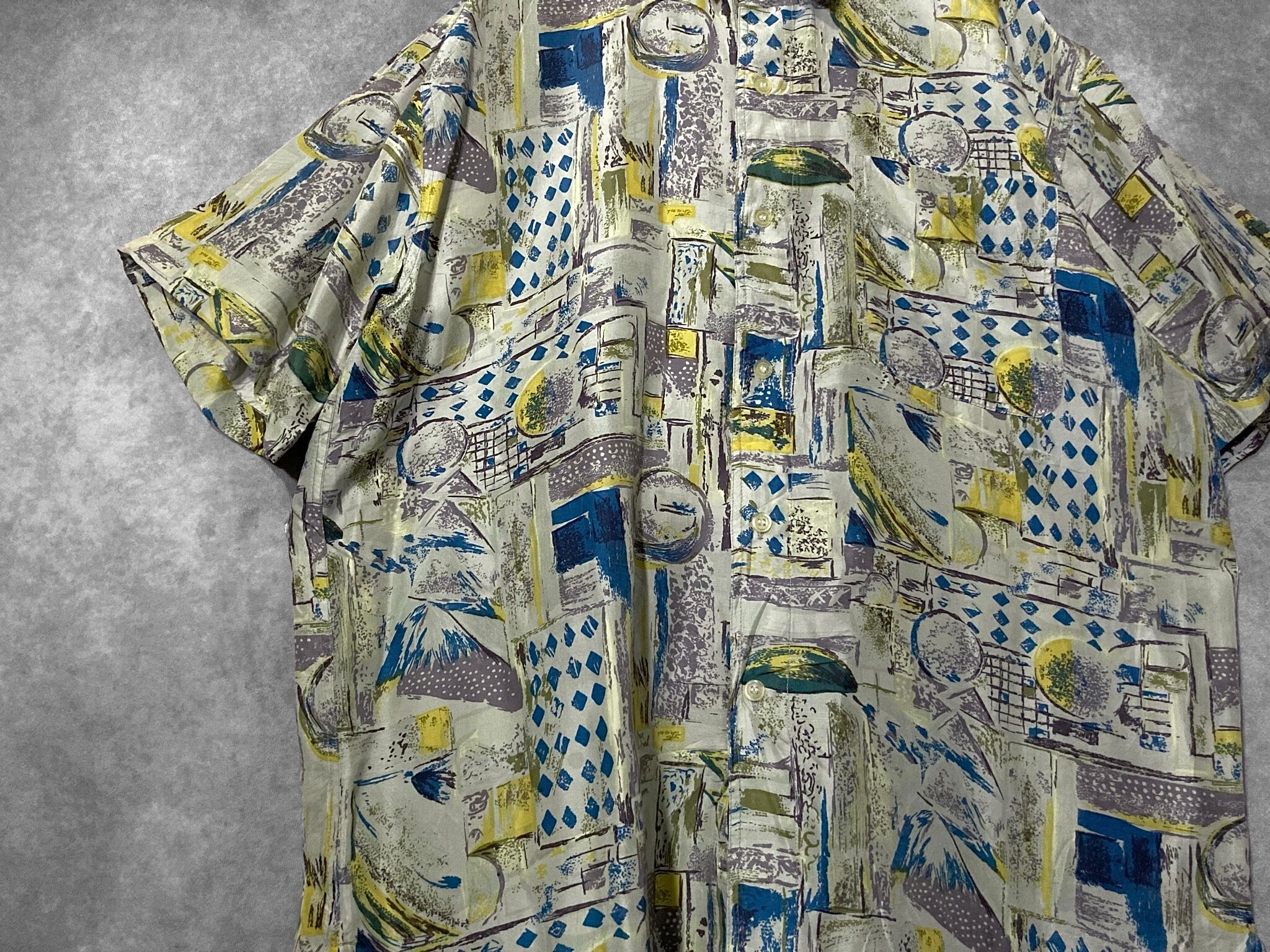 XXL 擦れ Hand drawn art all over pattern design Over-size silhouette silk S/S shirt