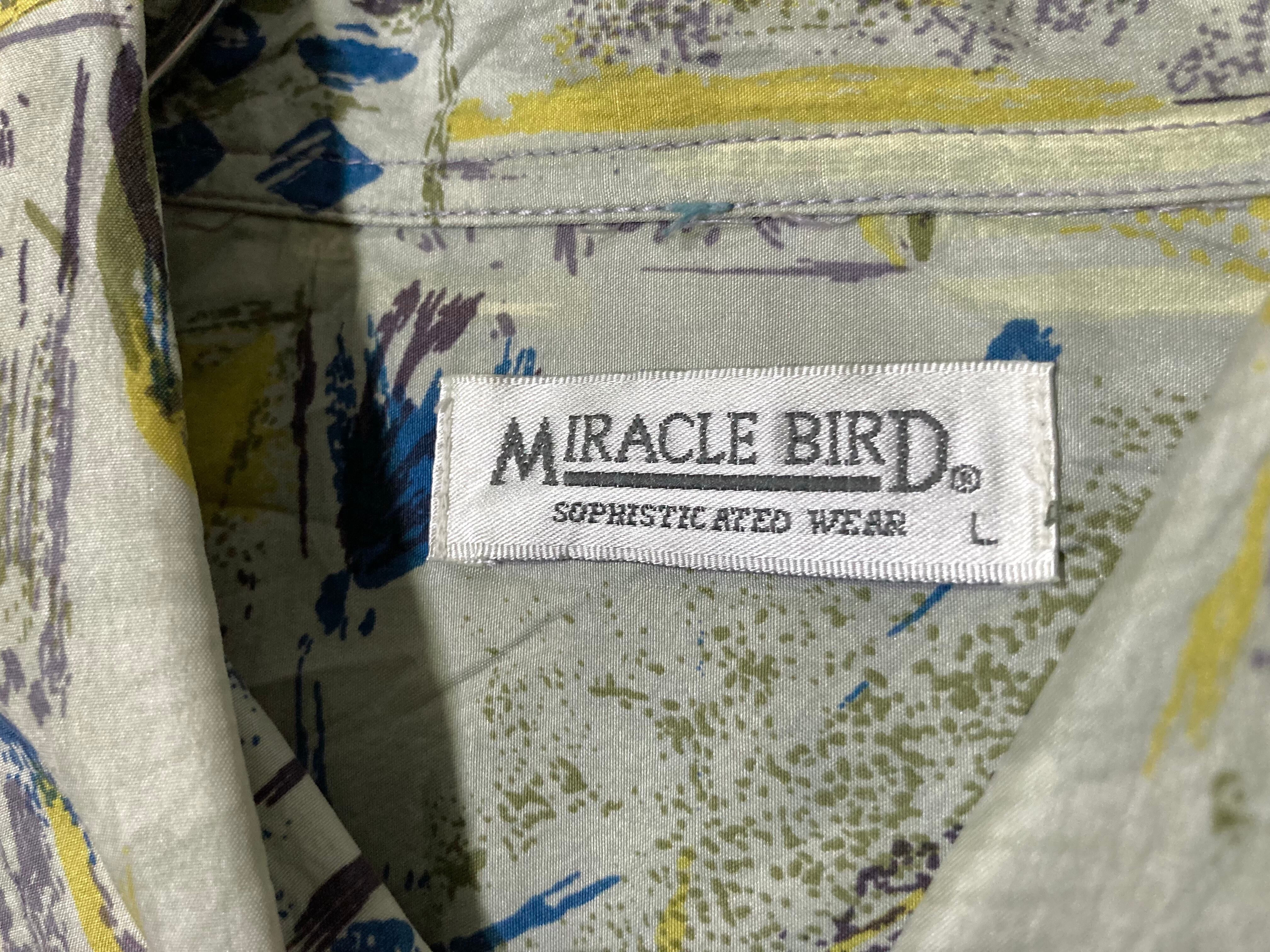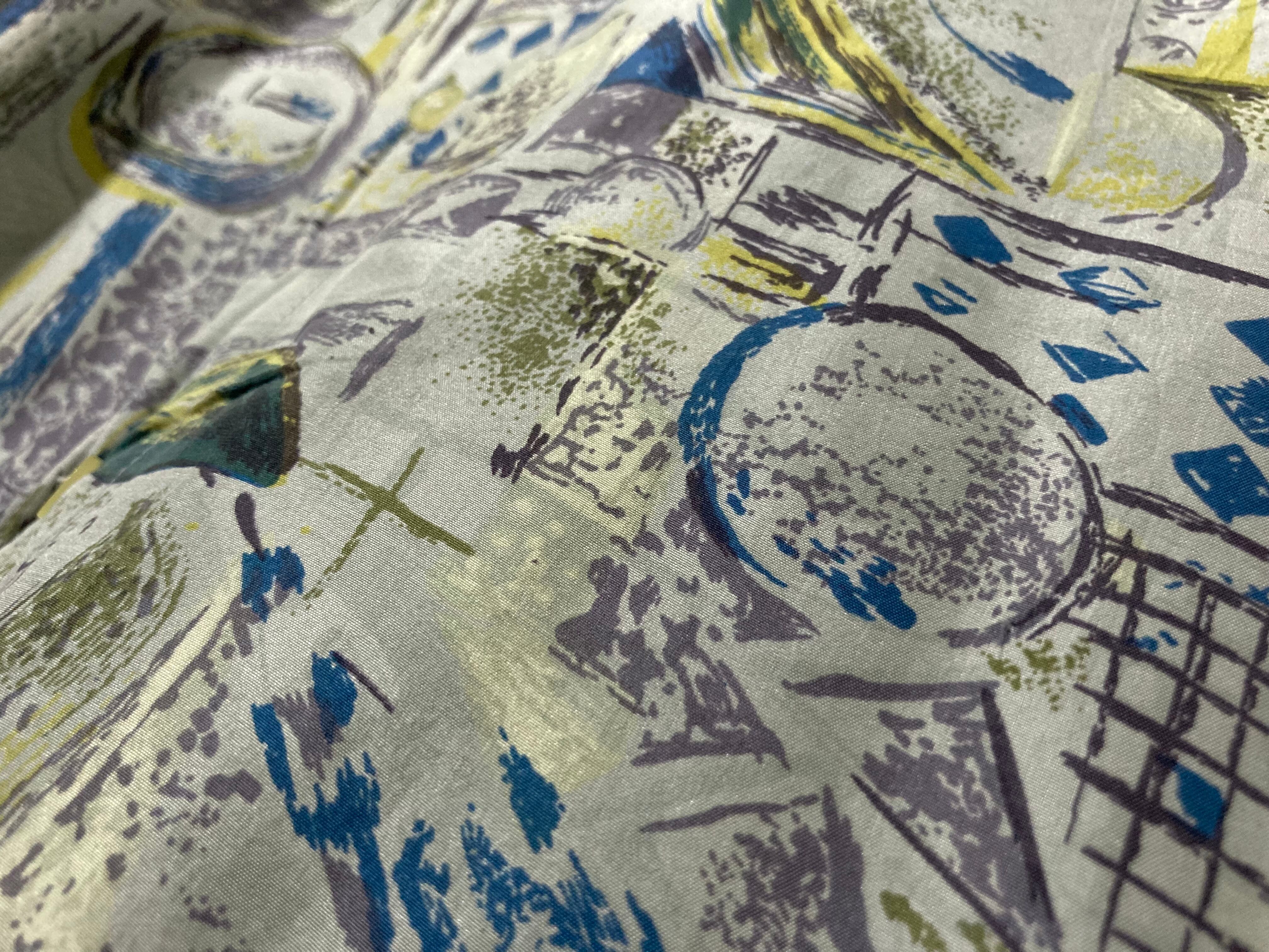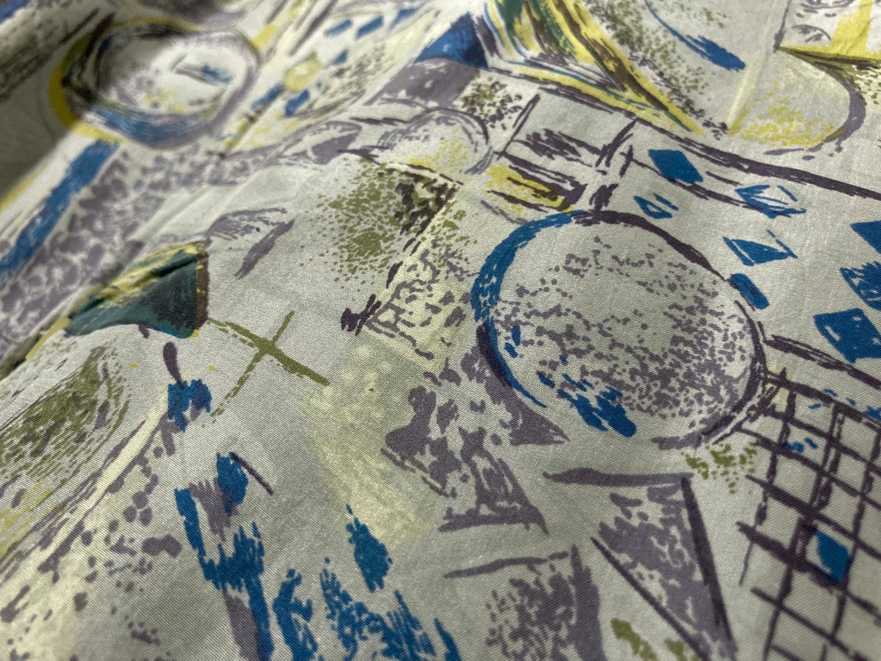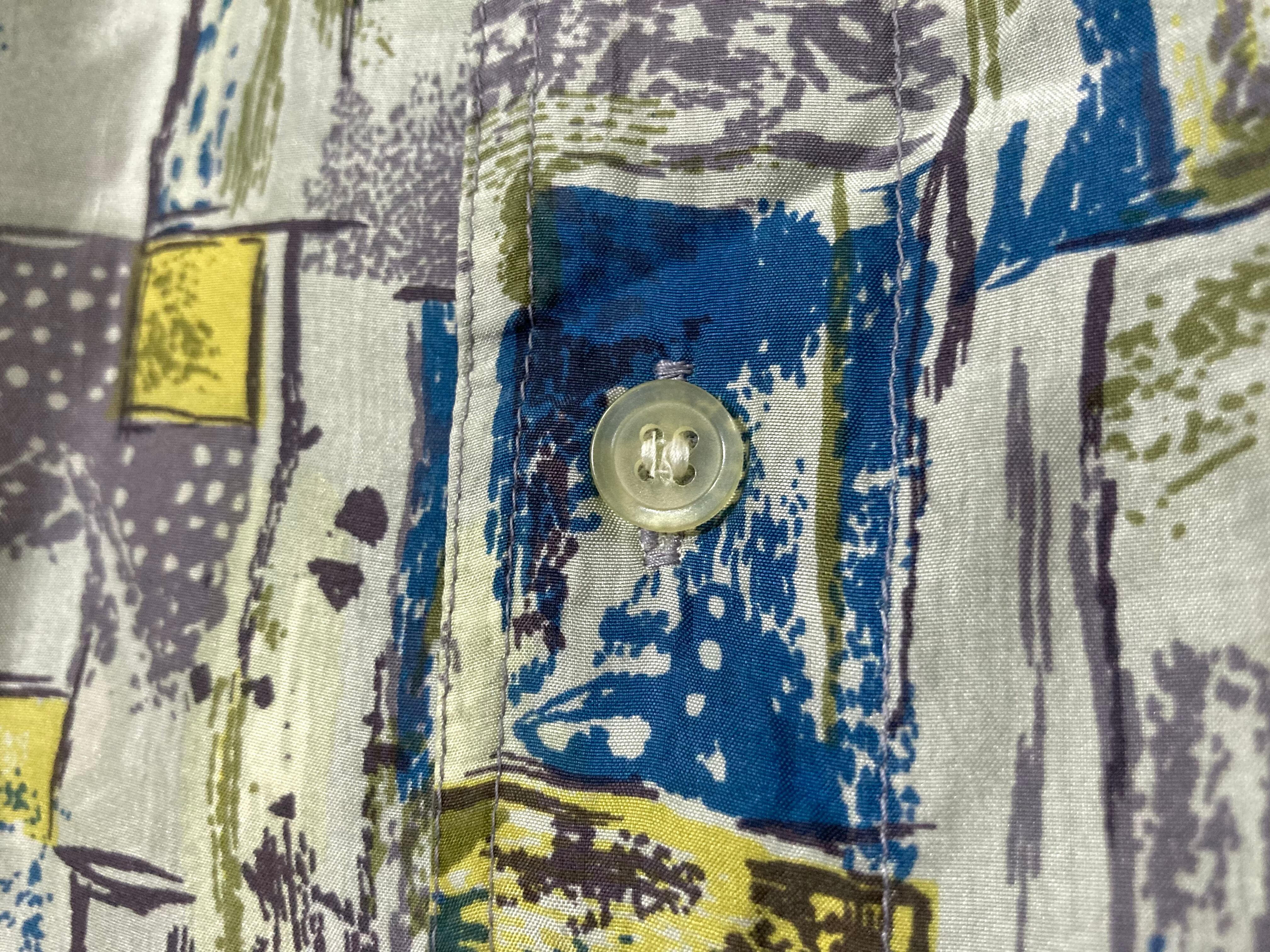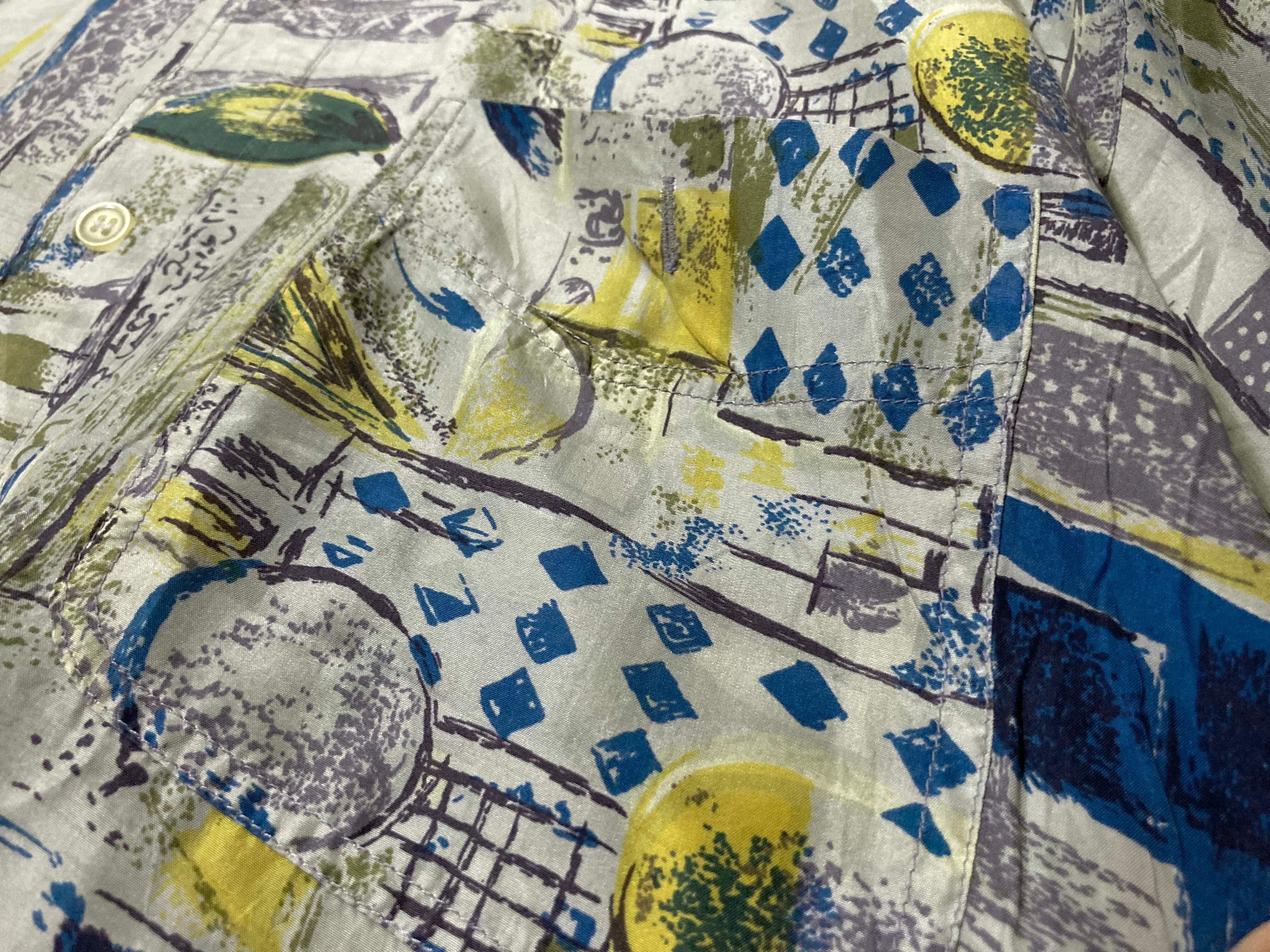 XXL 擦れ Hand drawn art all over pattern design Over-size silhouette silk S/S shirt