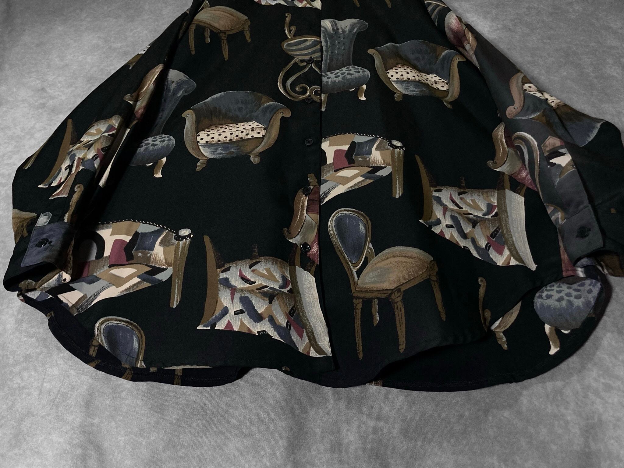 Bewitching and contemporary chairs all over pattern art design L/S shirt