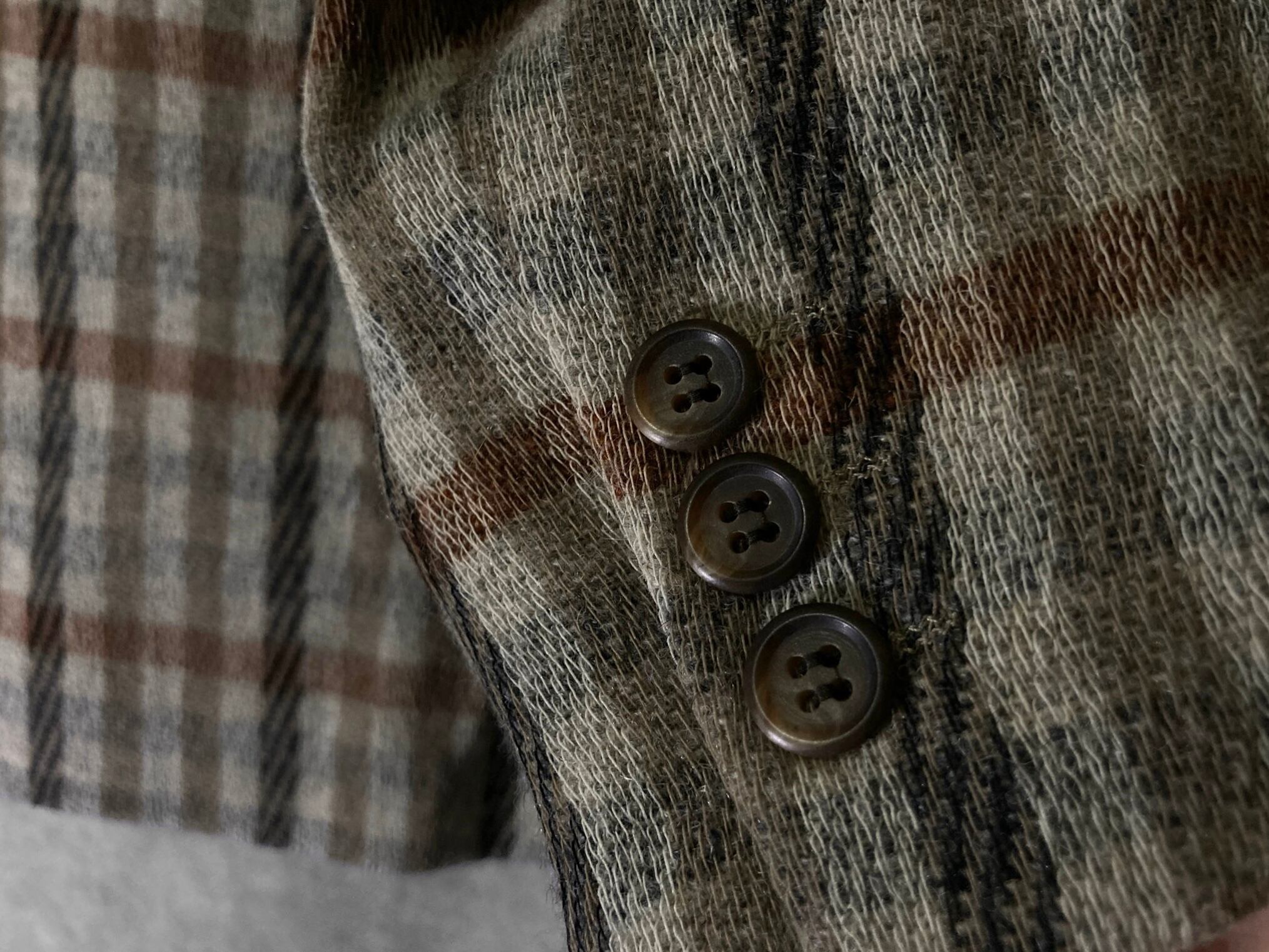 80〜90年代の日本製のジャケットにはありがちな肩パッドが入っていない為、袖を通した際のシルエットが美しく、肩肘張ることなく着れるのも嬉しいところ◎