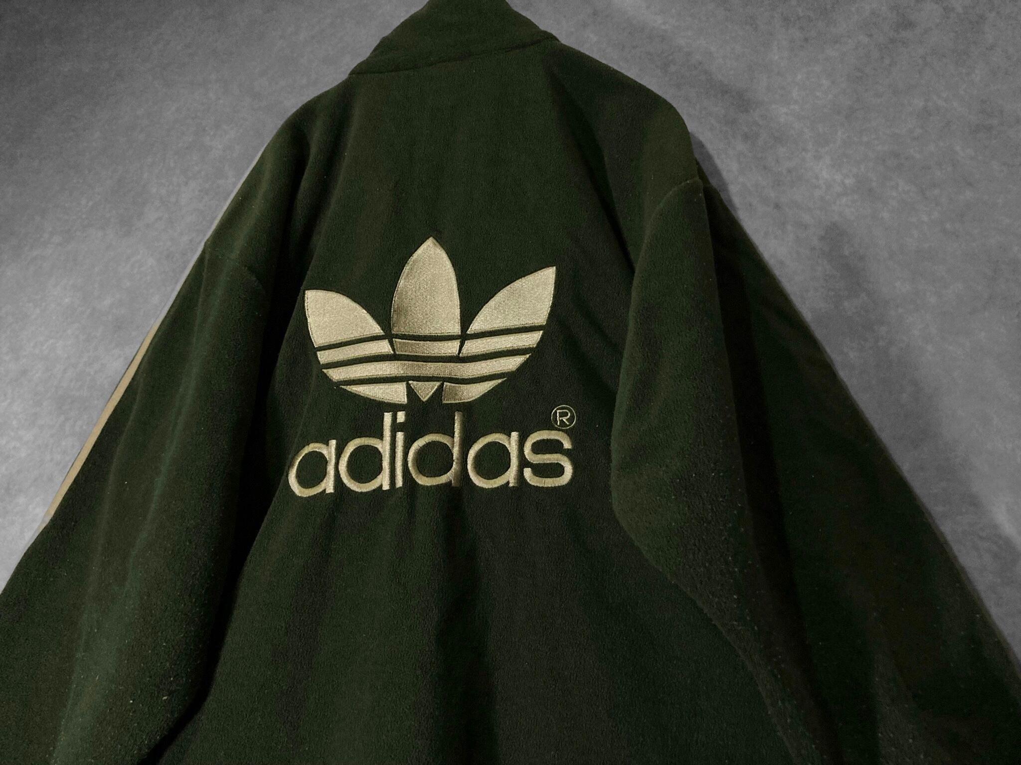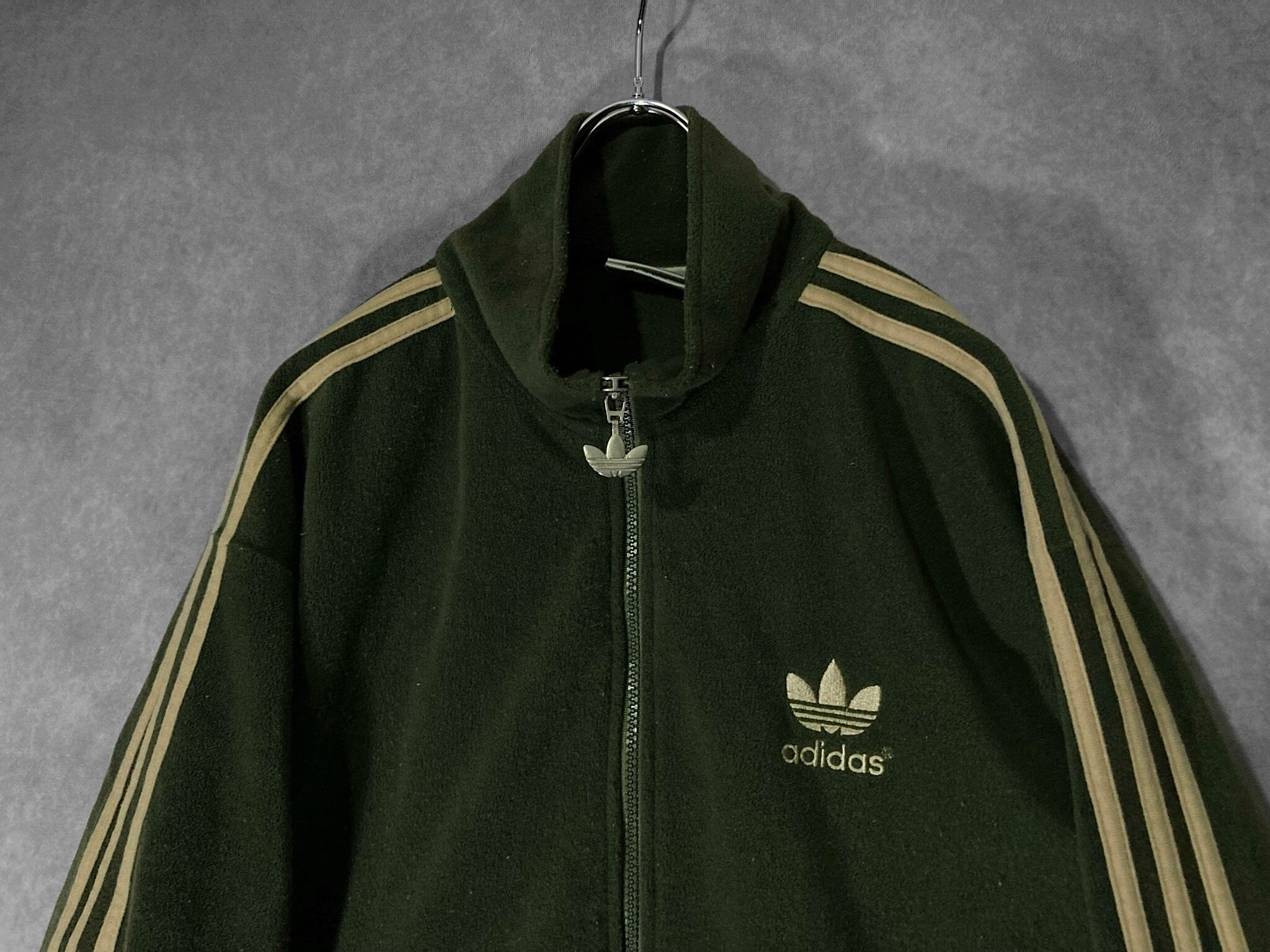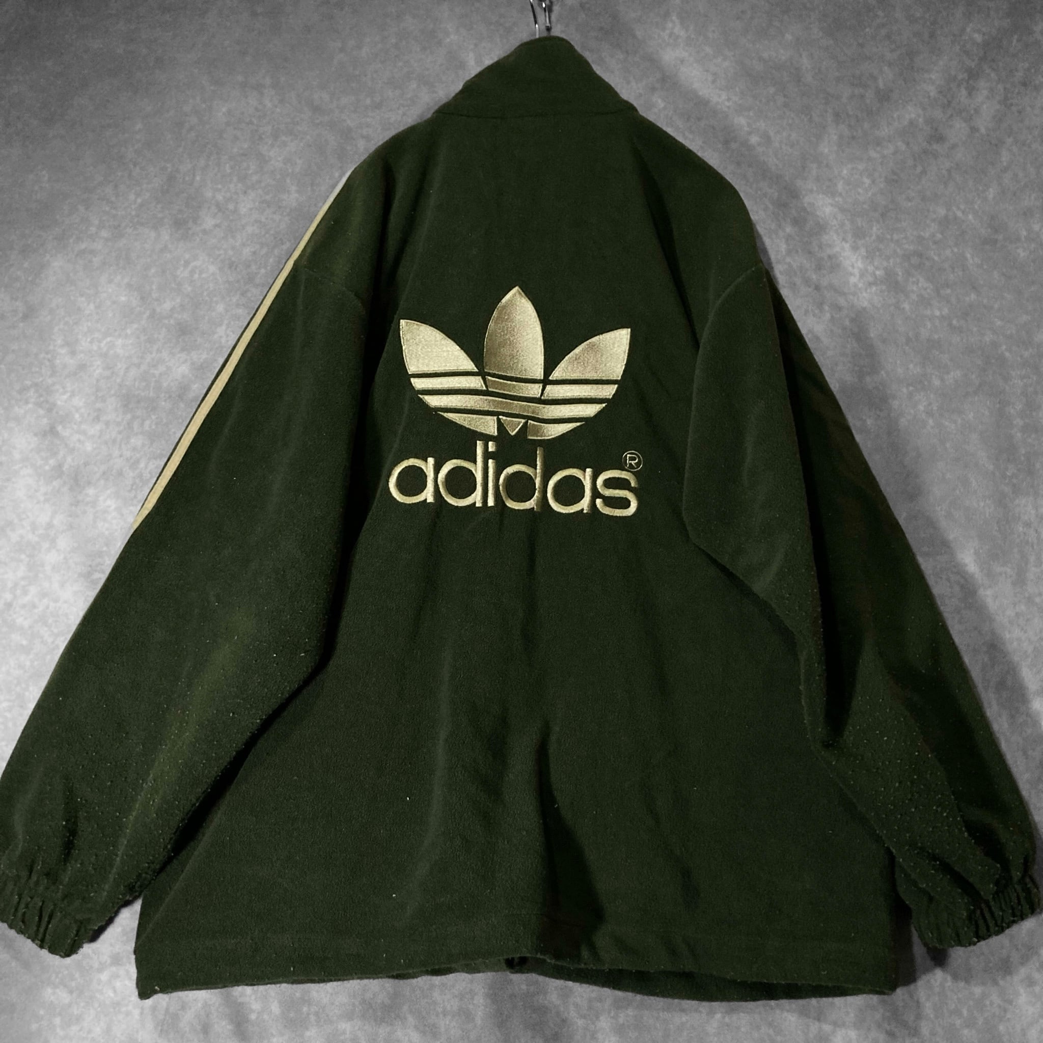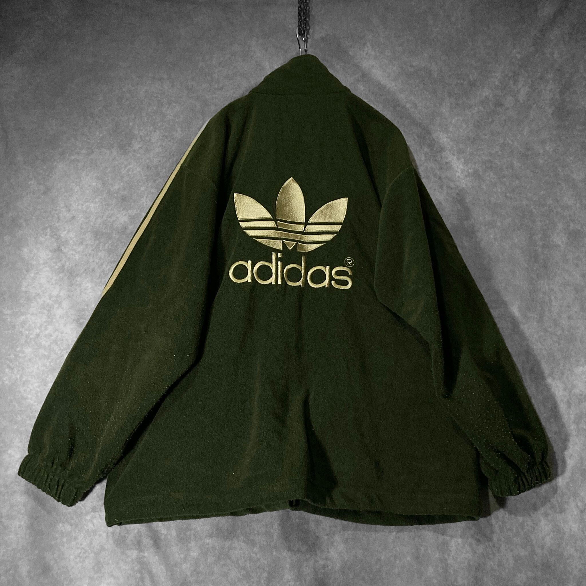adidas Luxurious and glossy gold colored logo embroidery × Three stripe line design Bore fleece fabric full-zip track jacket