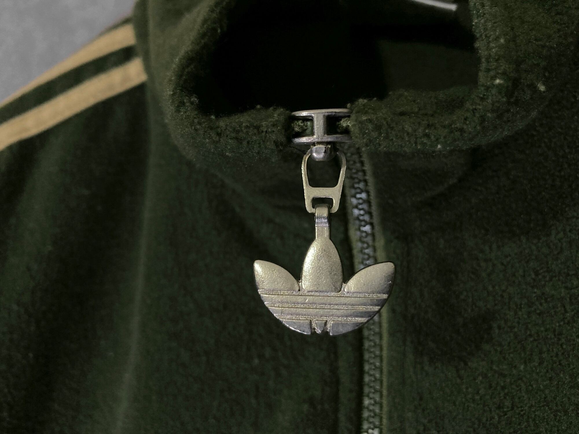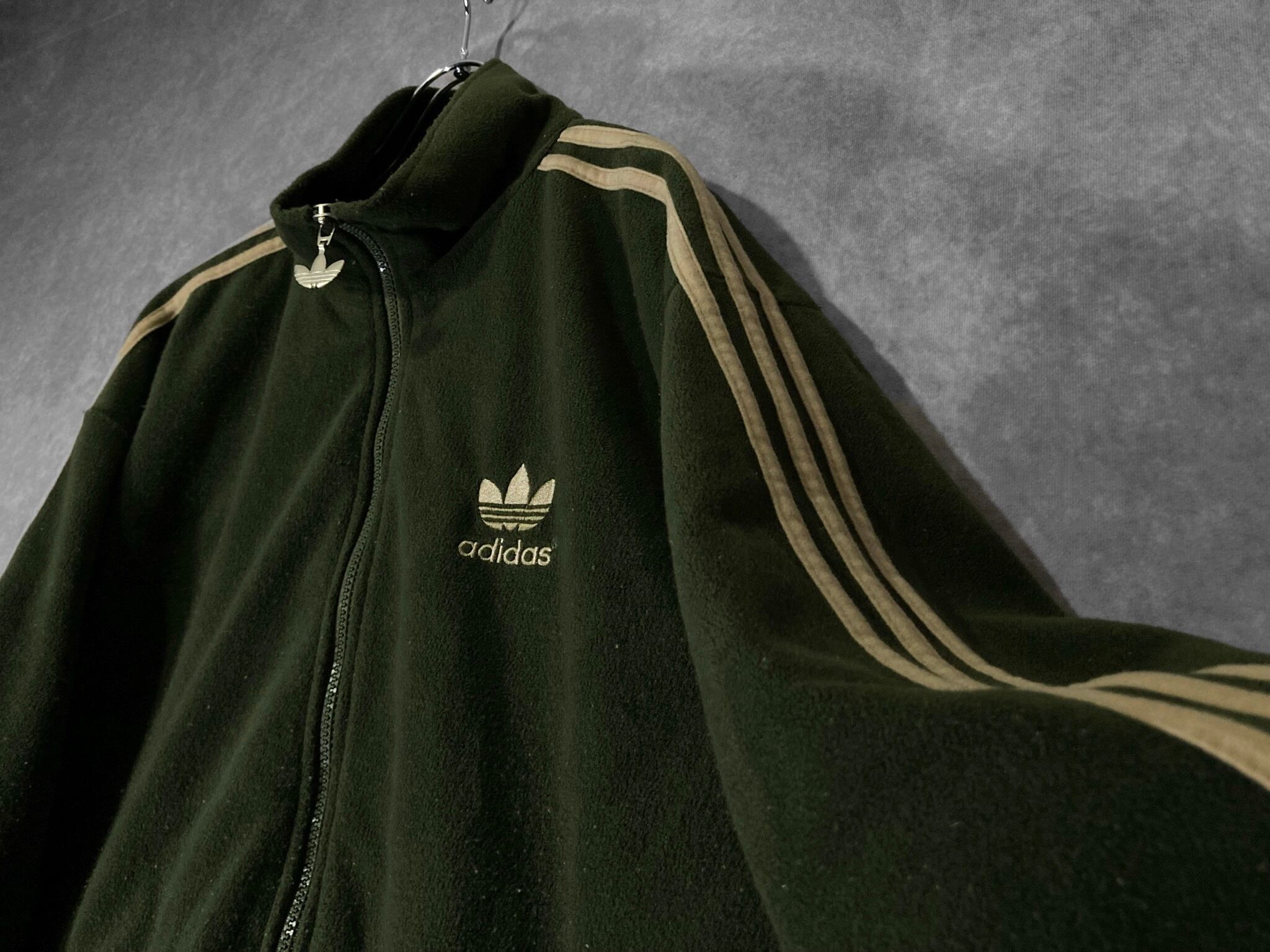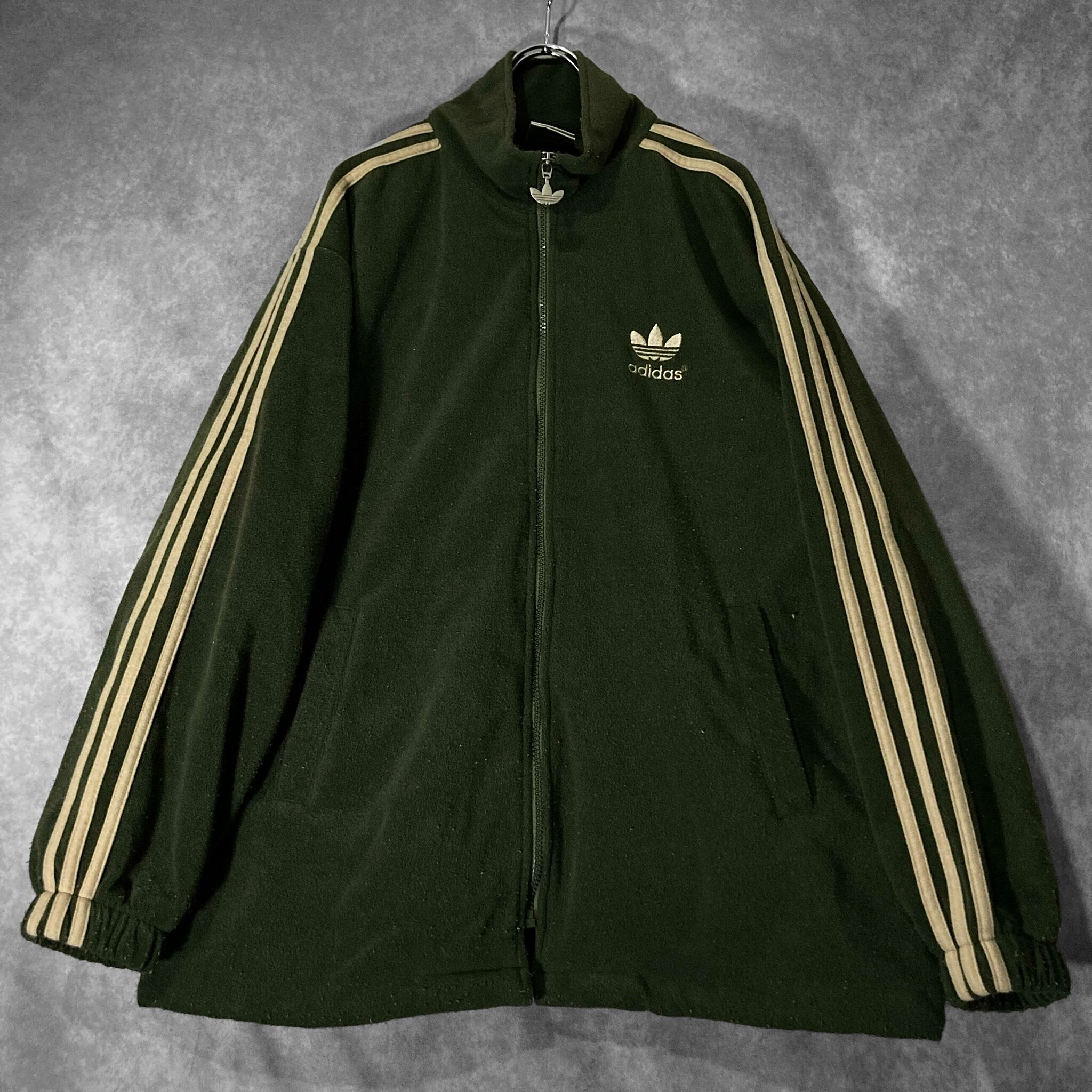 adidas Luxurious and glossy gold colored logo embroidery × Three stripe line design Bore fleece fabric full-zip track jacket