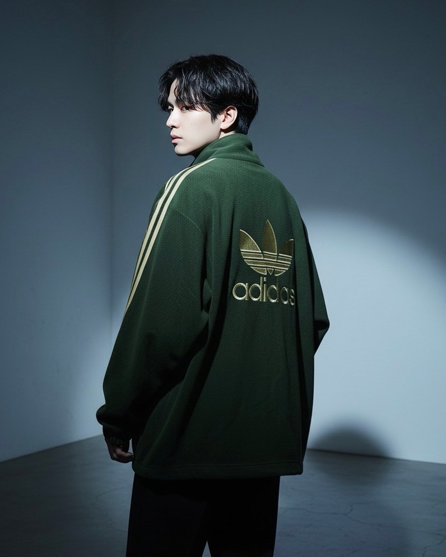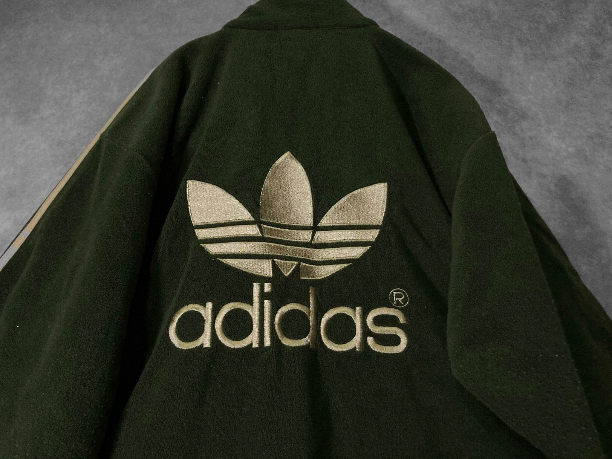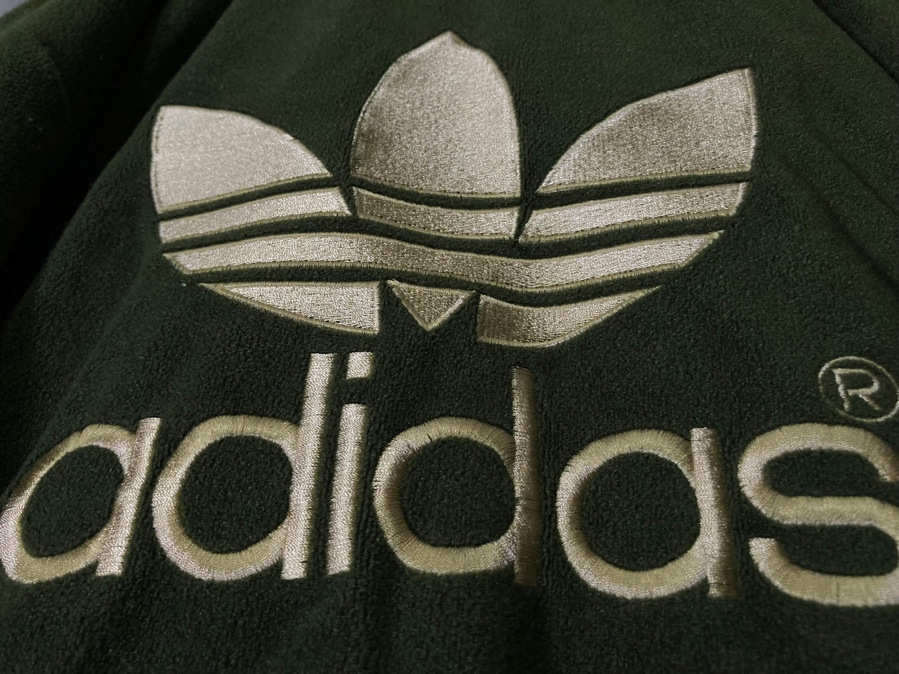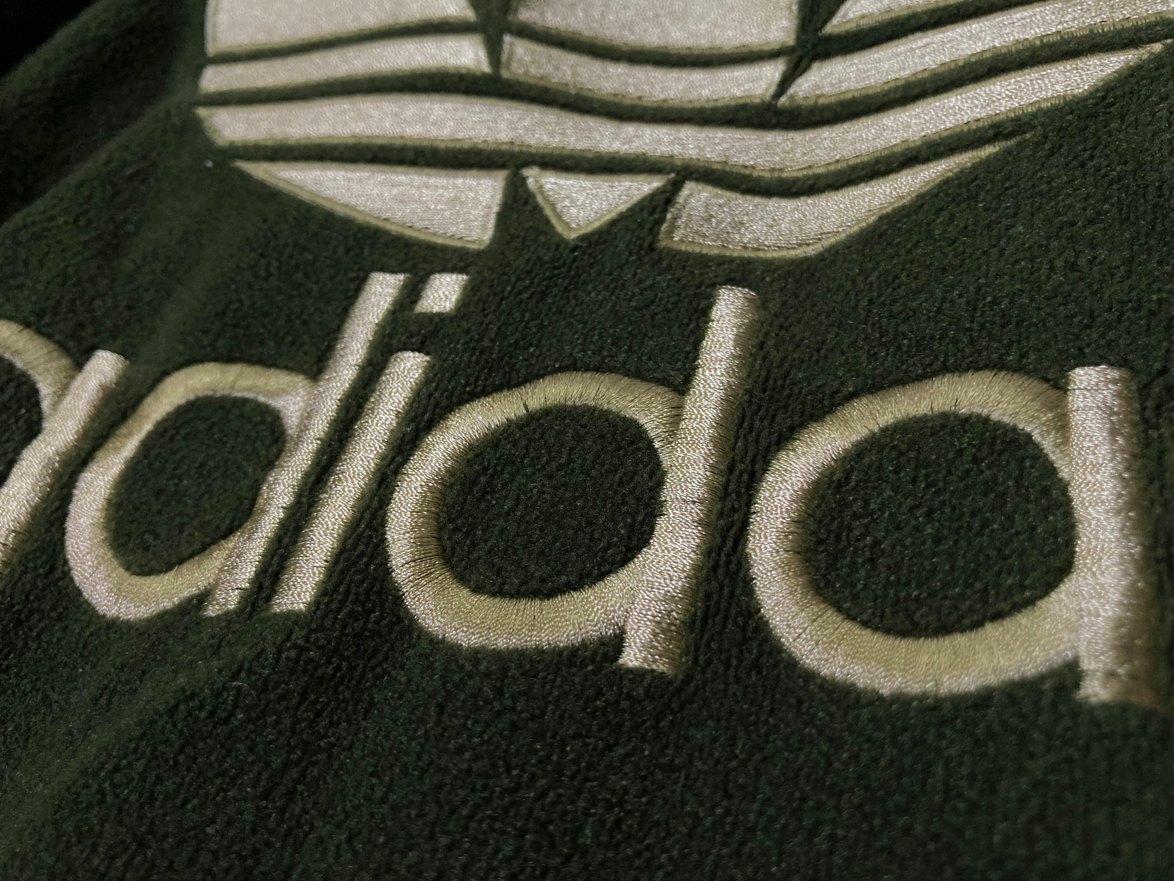 adidas Luxurious and glossy gold colored logo embroidery × Three stripe line design Bore fleece fabric full-zip track jacket