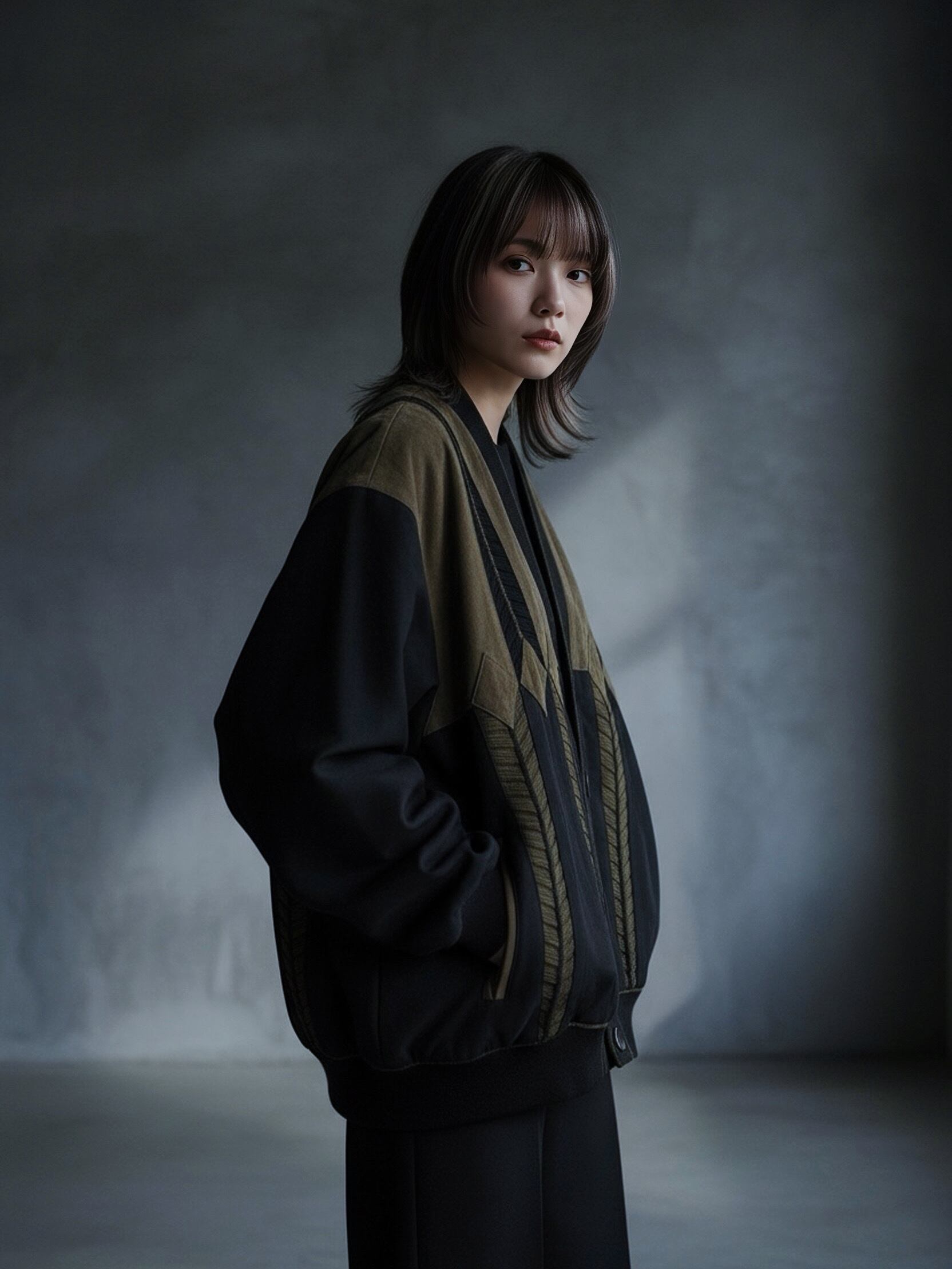 ウールギャバジン特有の上品で高級感のある表情と、袖・腕周りのたまり具合がモードな雰囲気があり、グランジやY2Kスタイルにもハマるスペシャルピースです。
