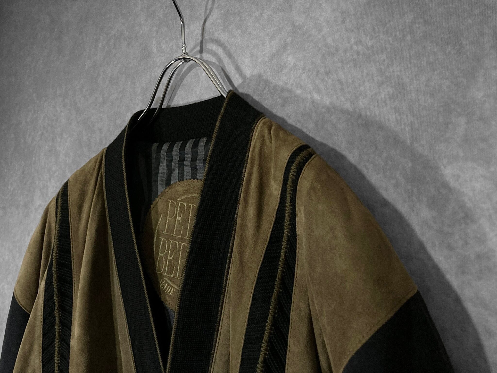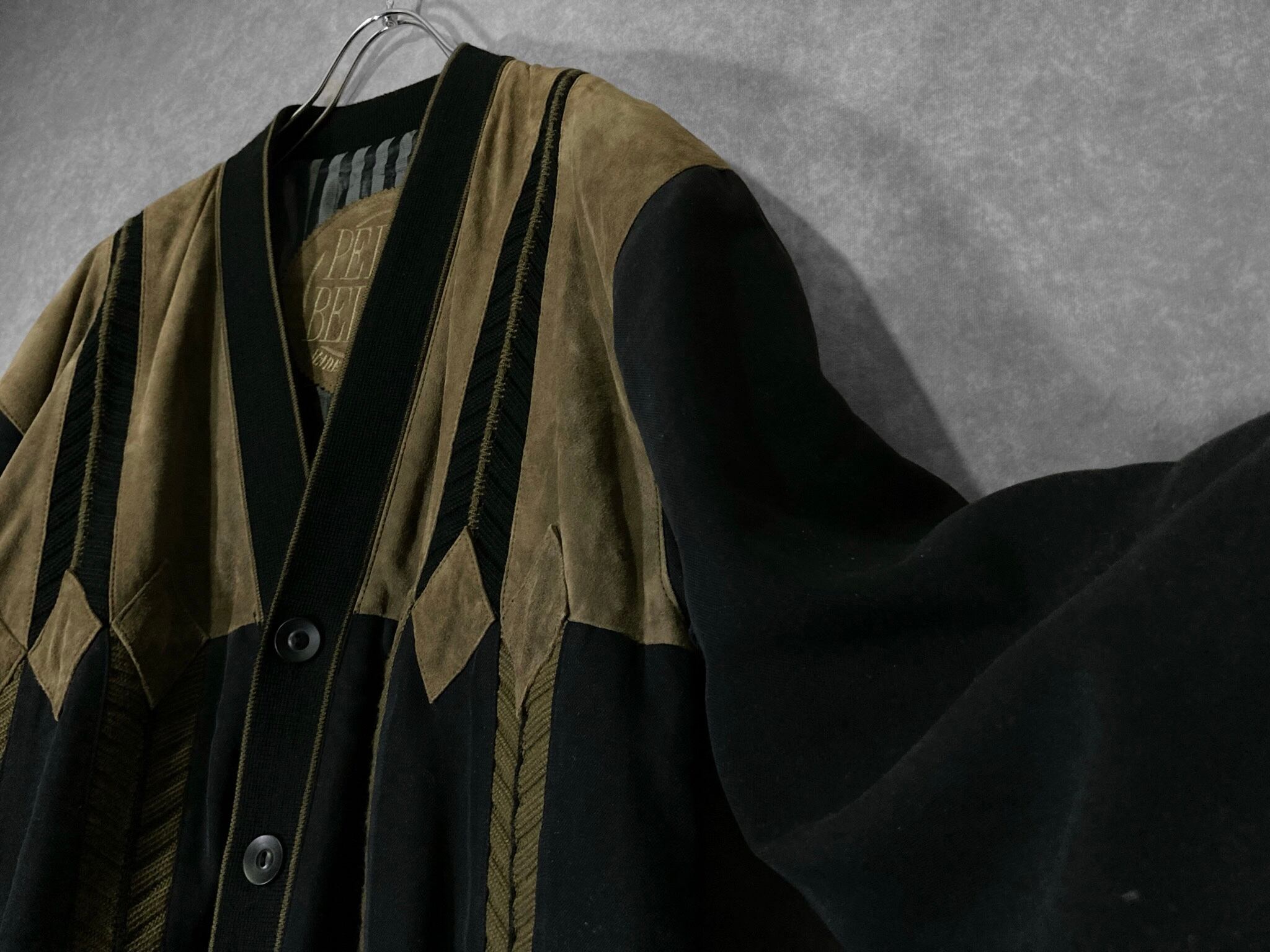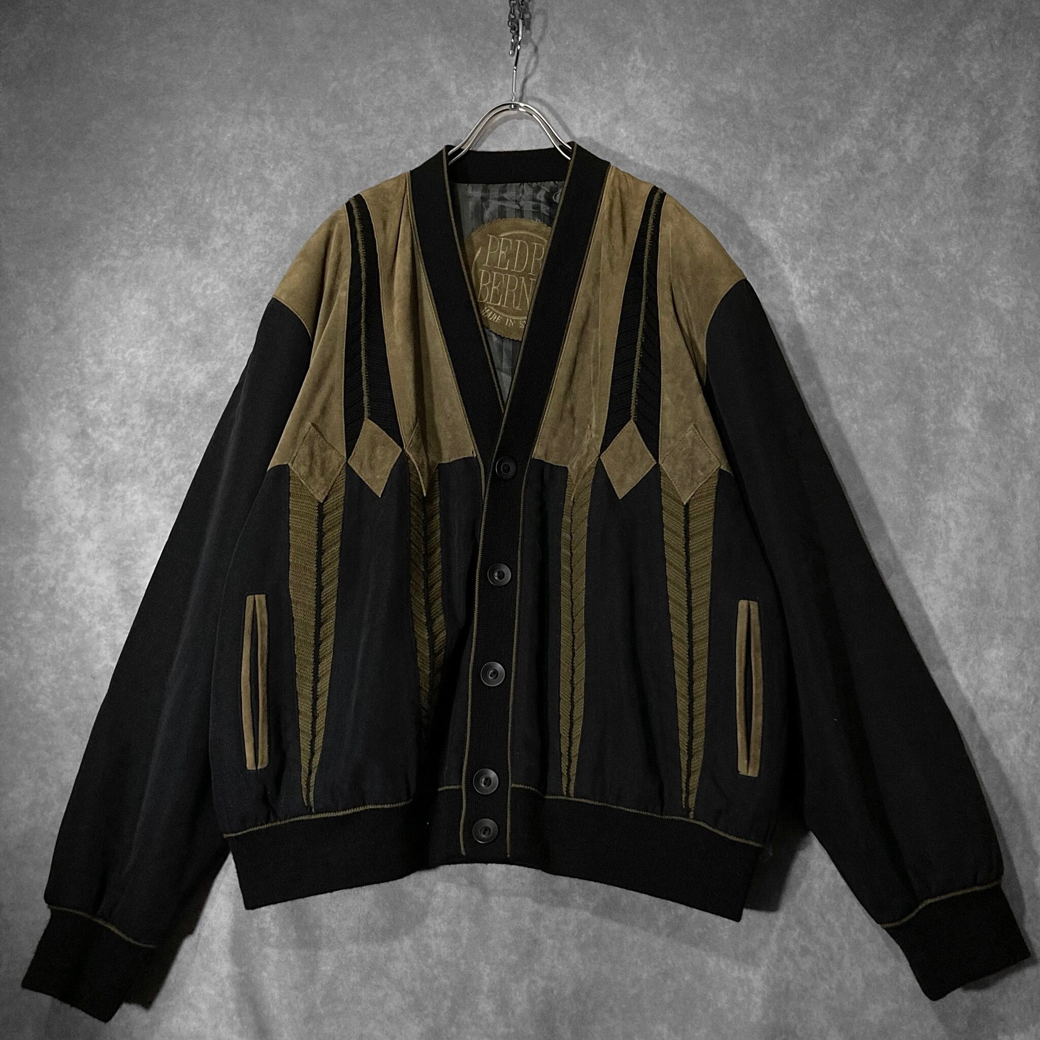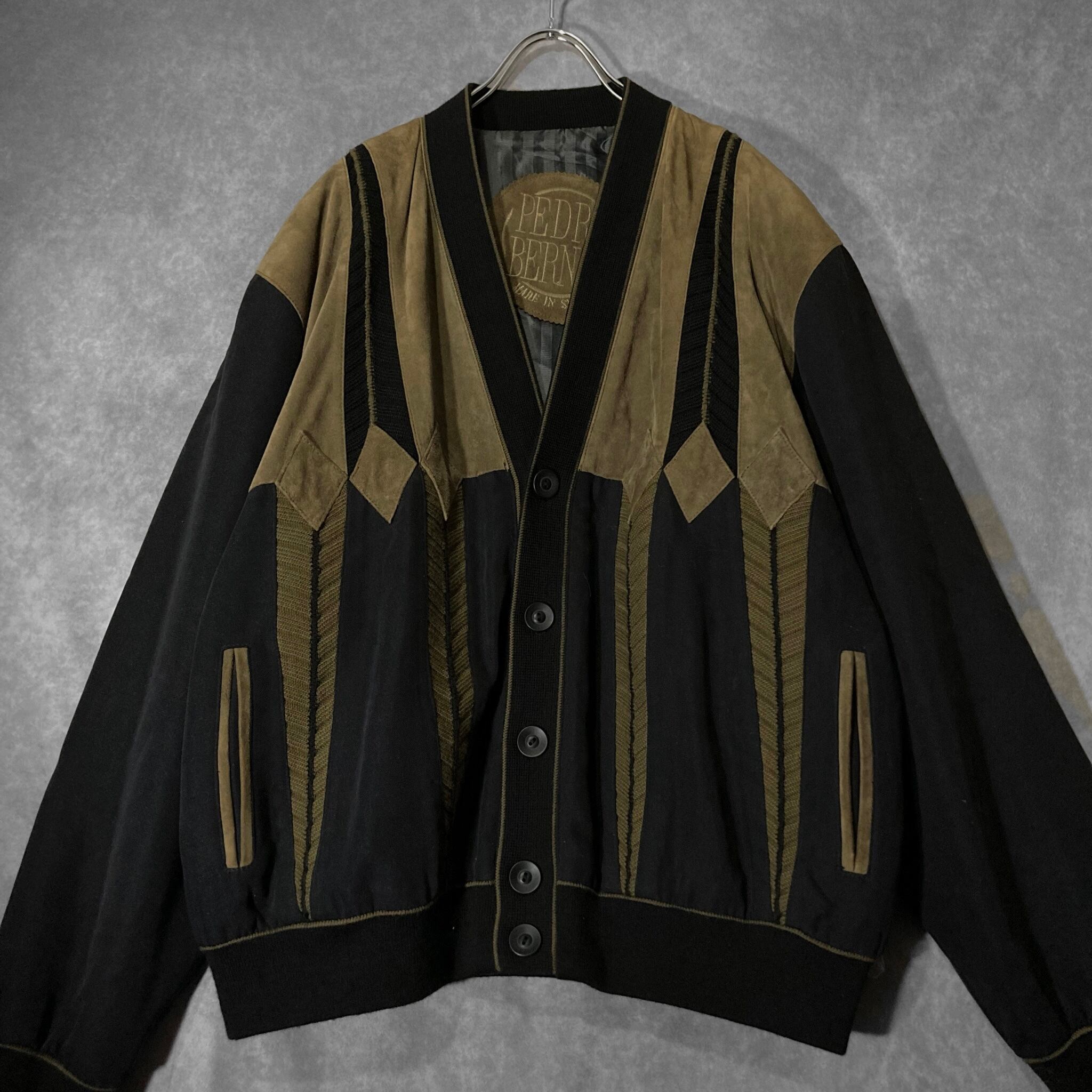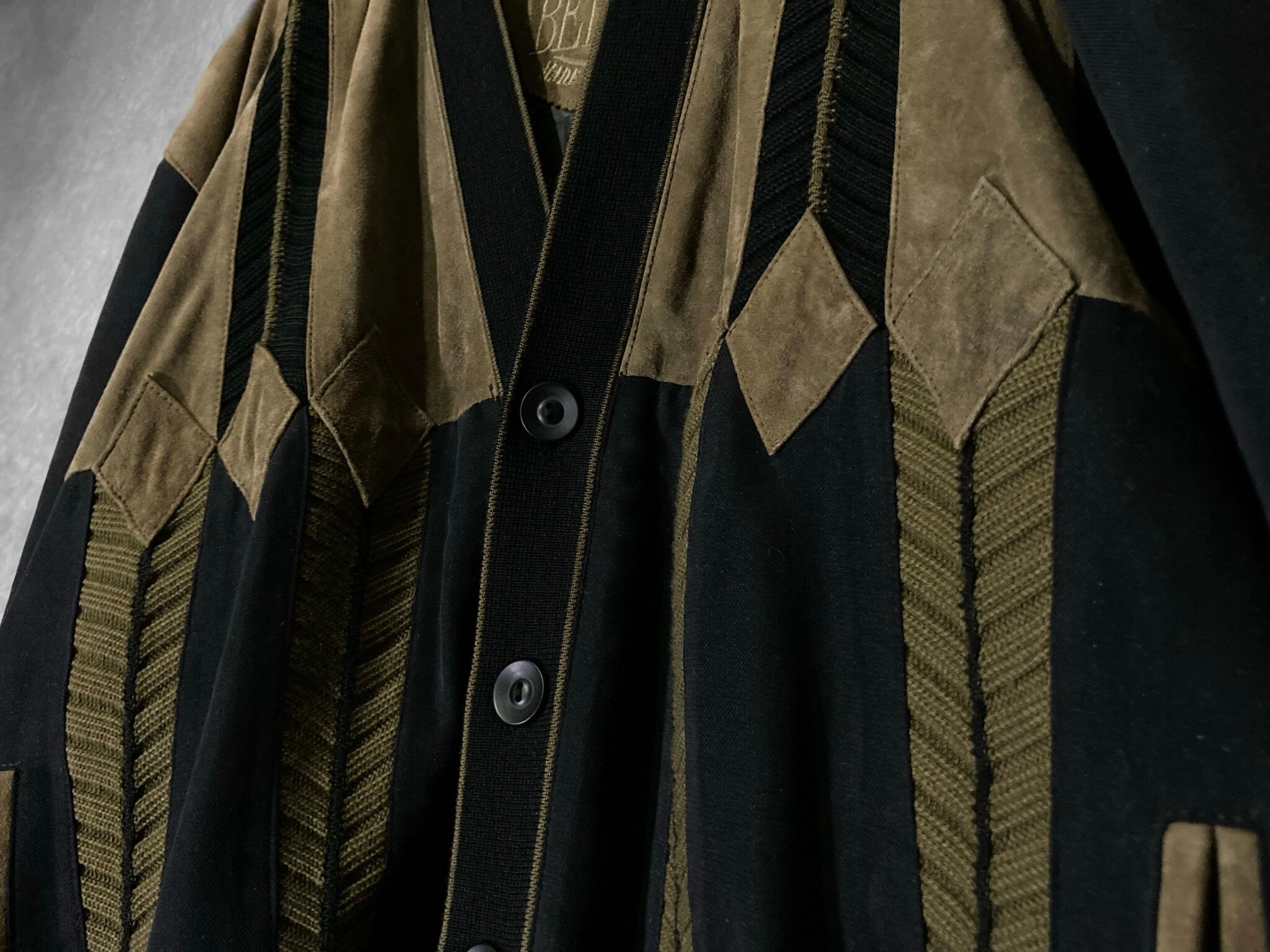 made in Spain, PEDRO BERNAT leather and knit loose silhouette design vintage cardigan