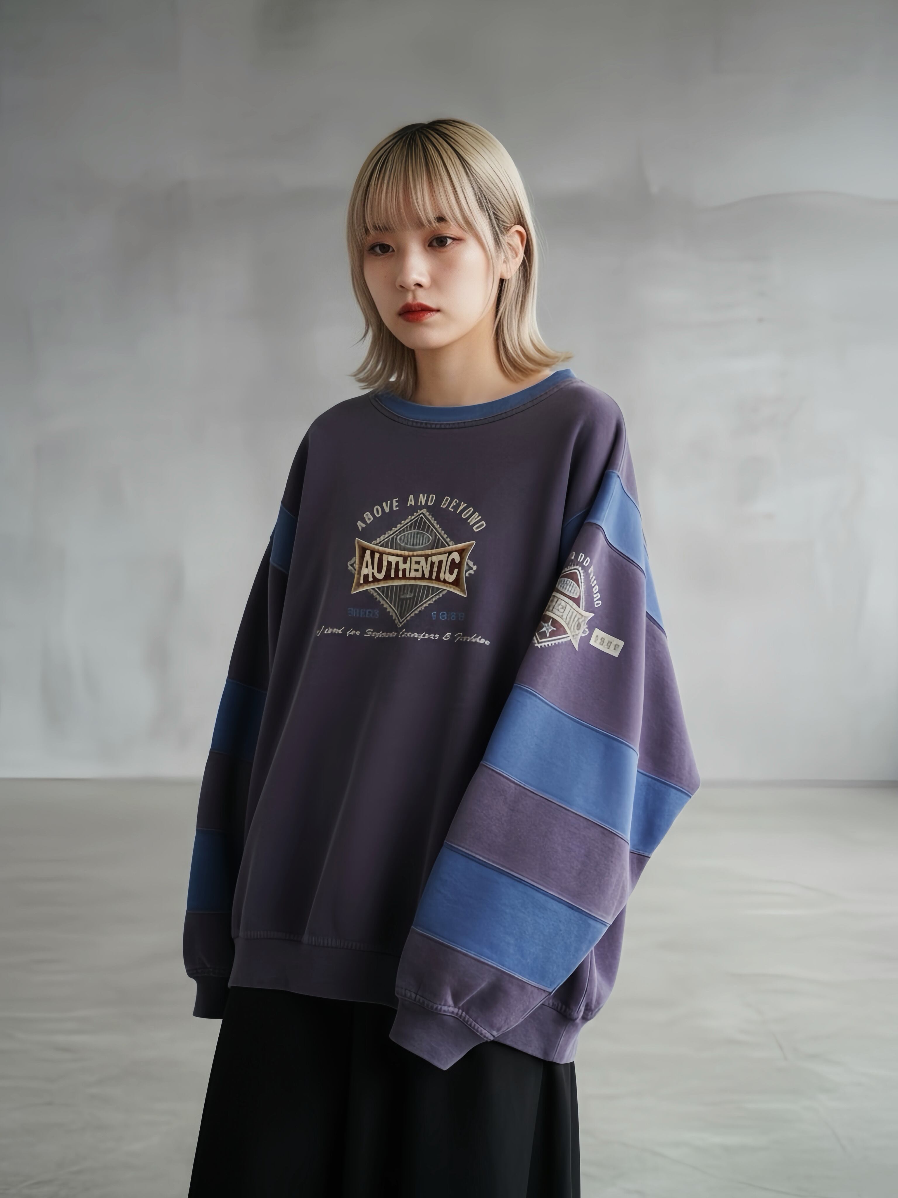 made in Korea, Purple and blue colored Switching design L/S sweat shirt