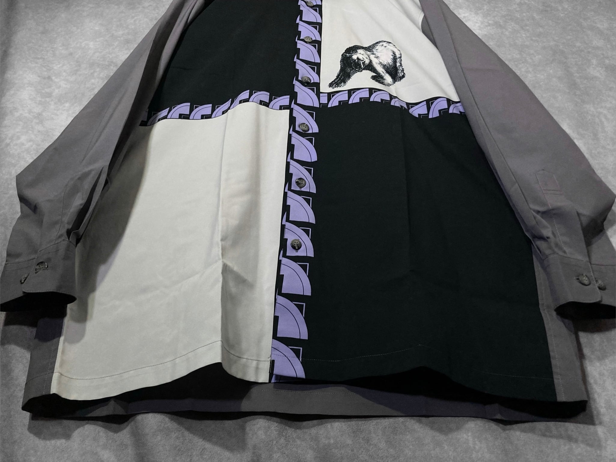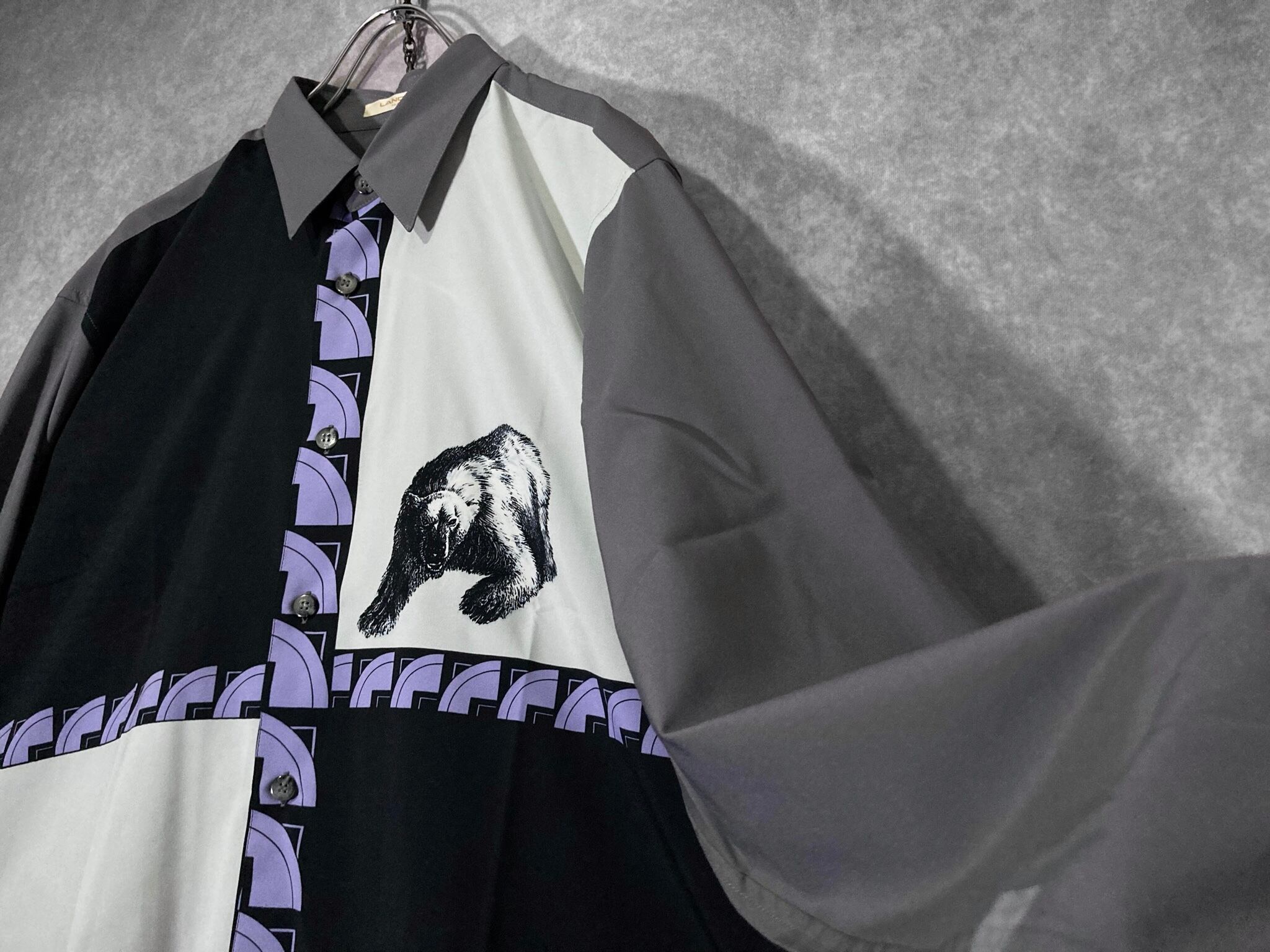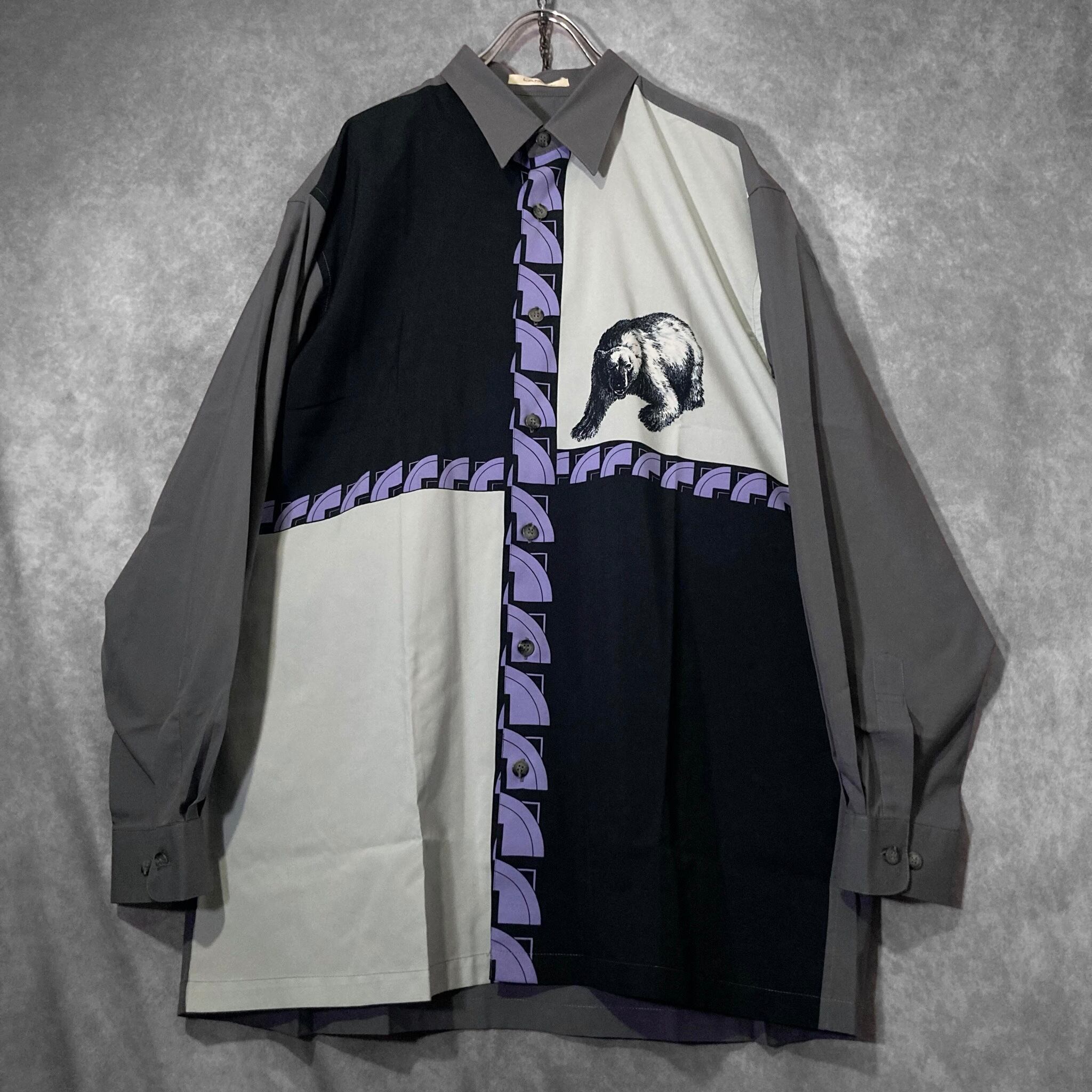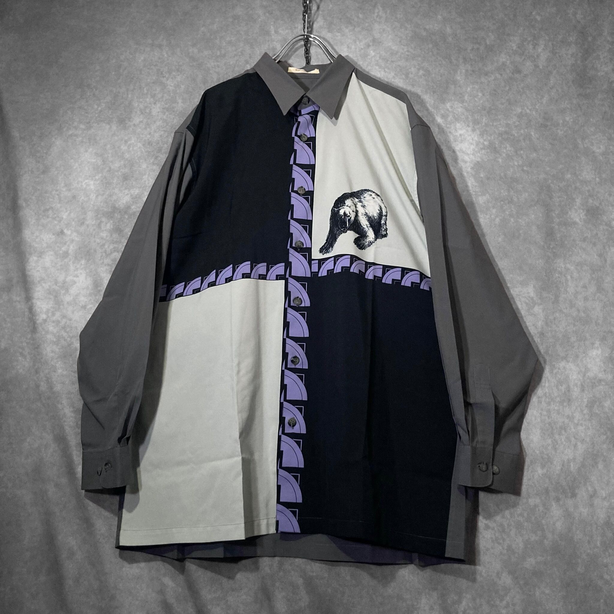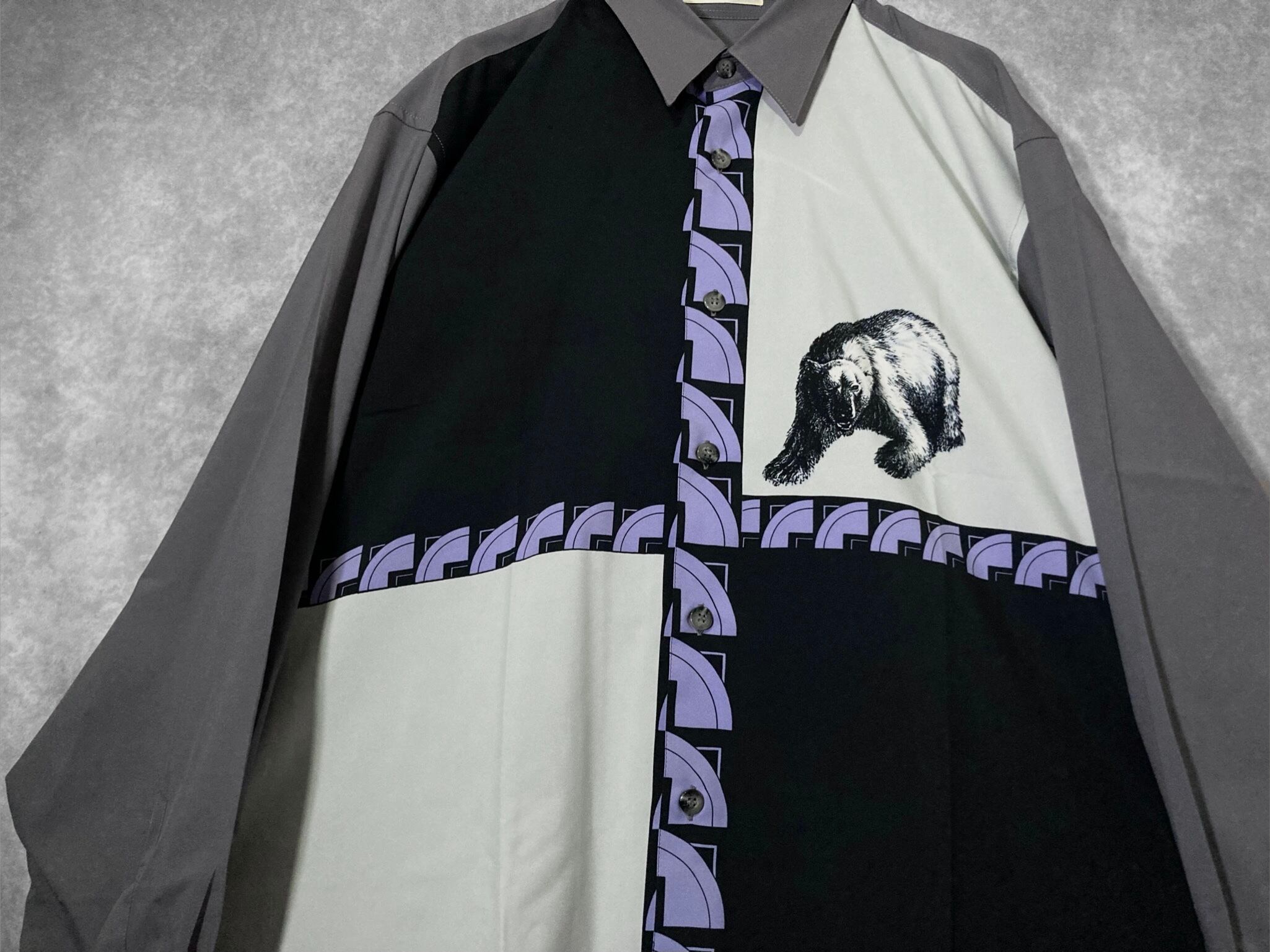 LANCEL Paris, XXL 羆 ferocious brown bear graphic × block pattern design L/S shirt