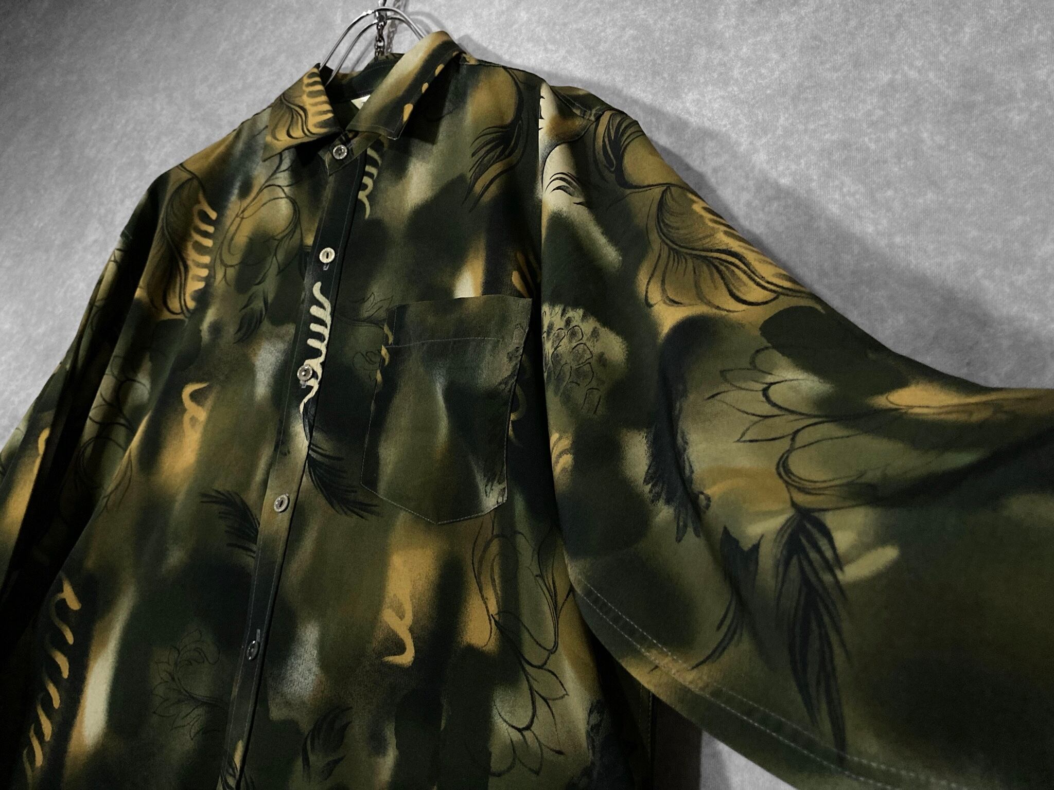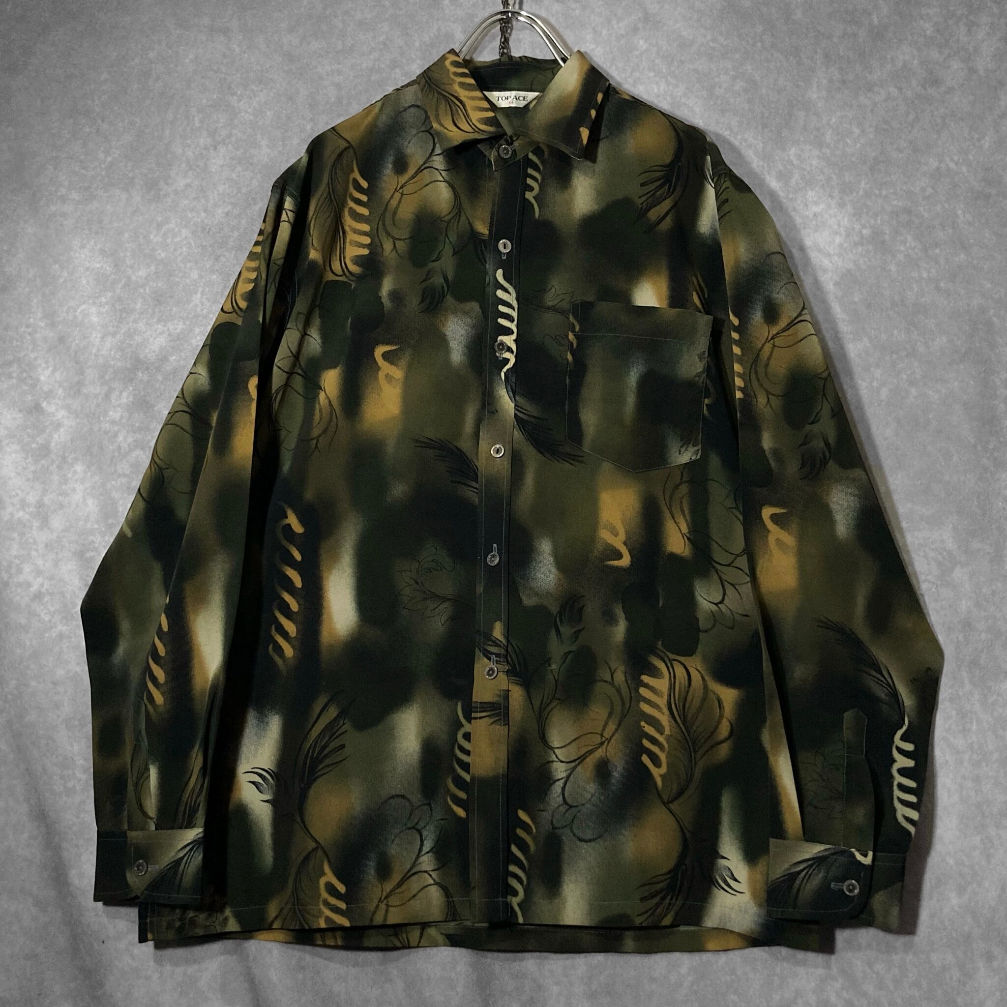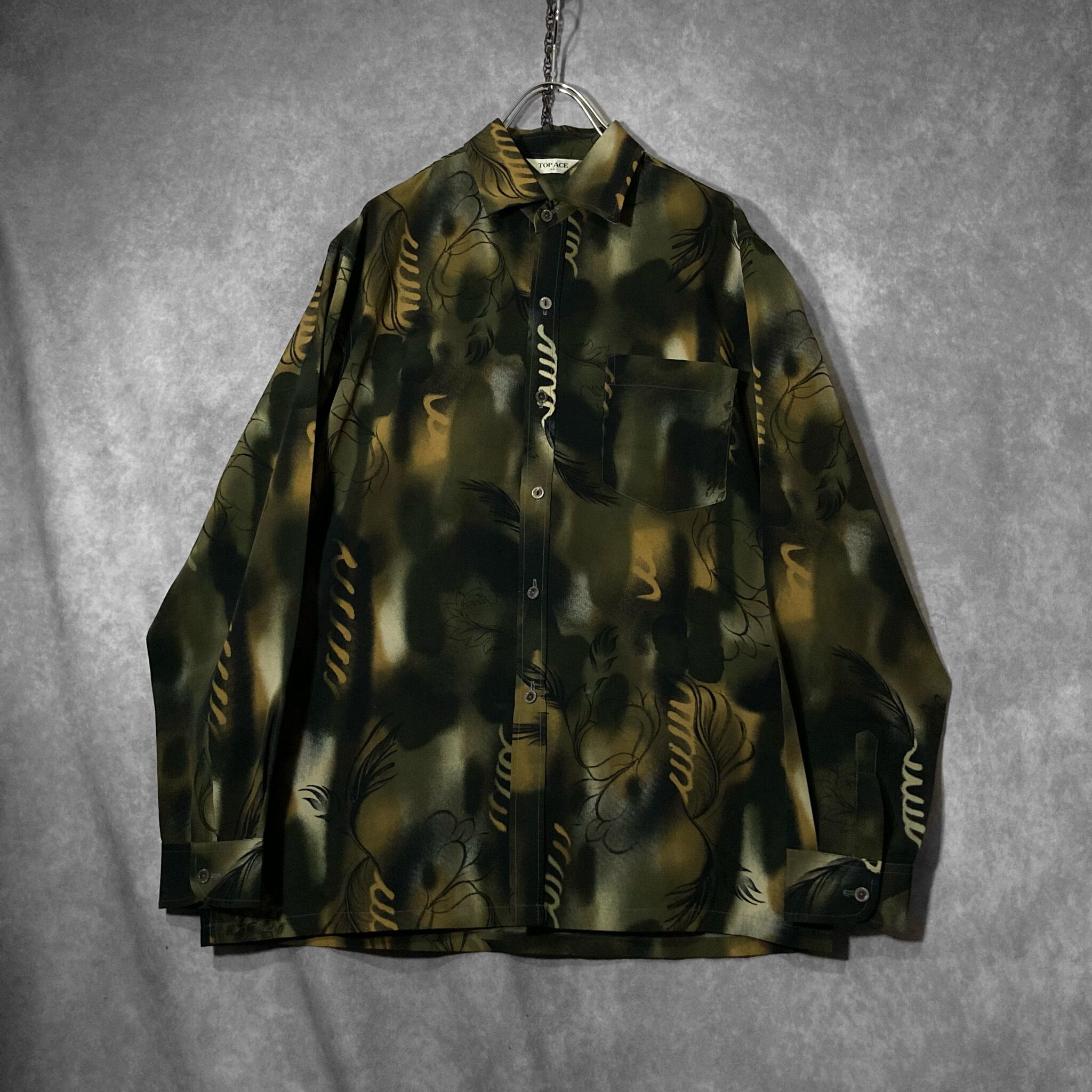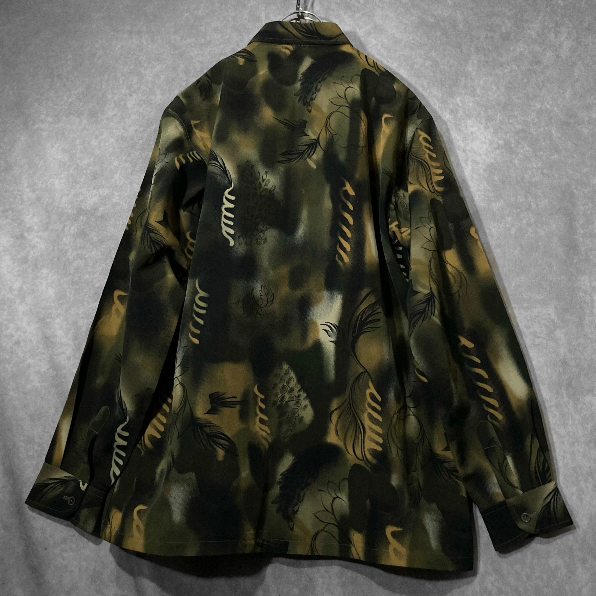 XL 微睡み Slightly Sleeping and Hand drawn leaf graphic All-over pattern design L/S shirt