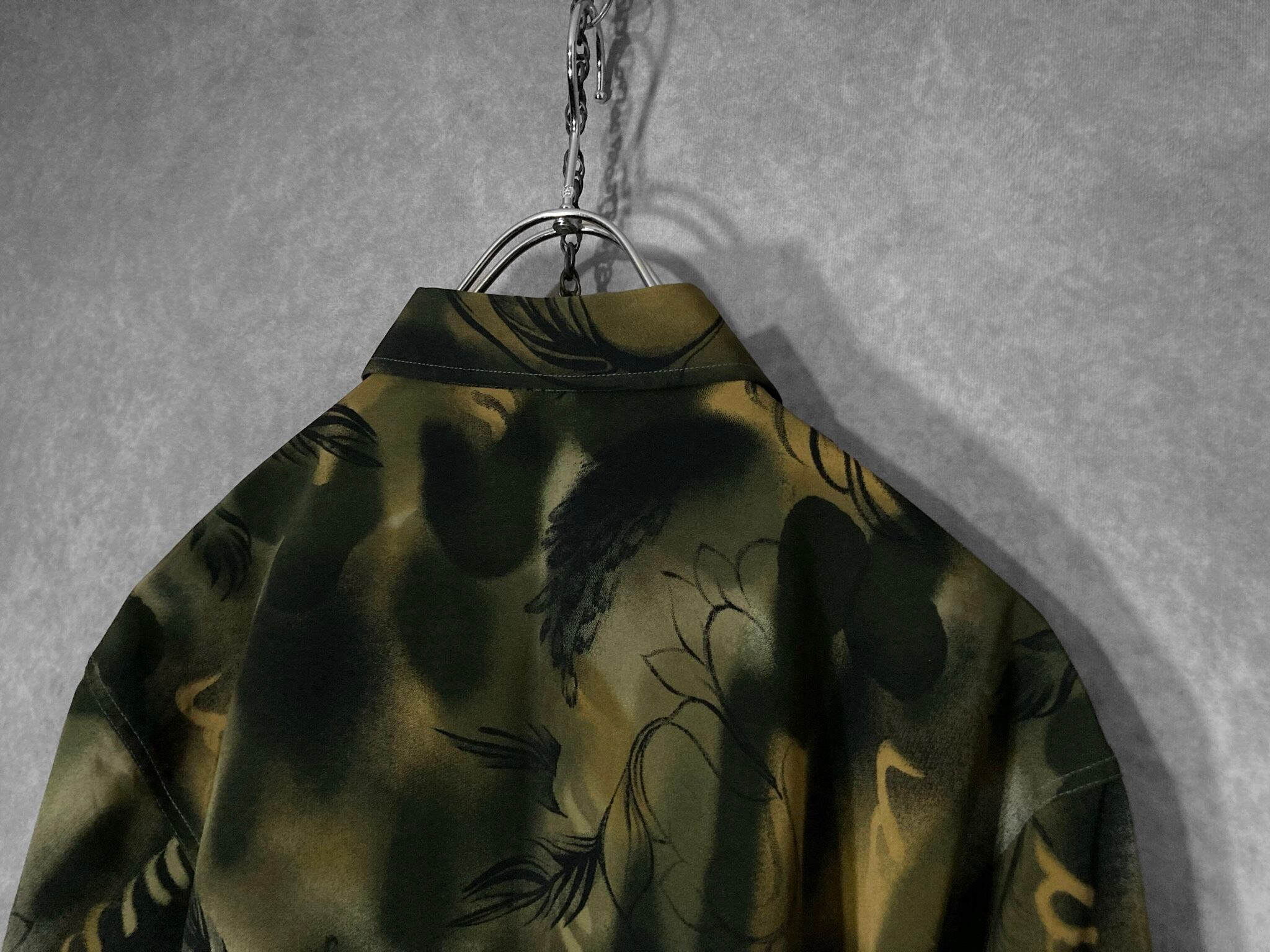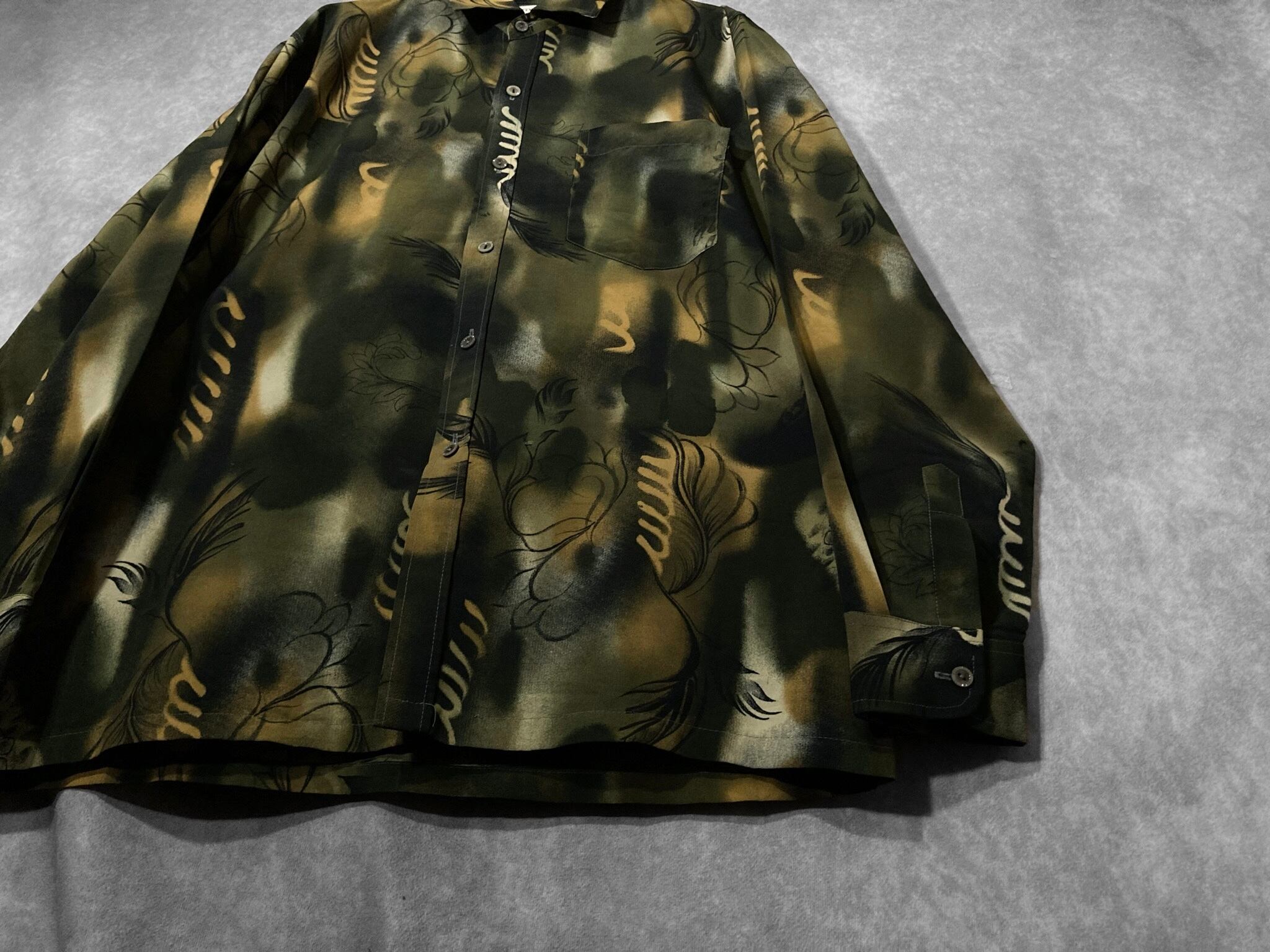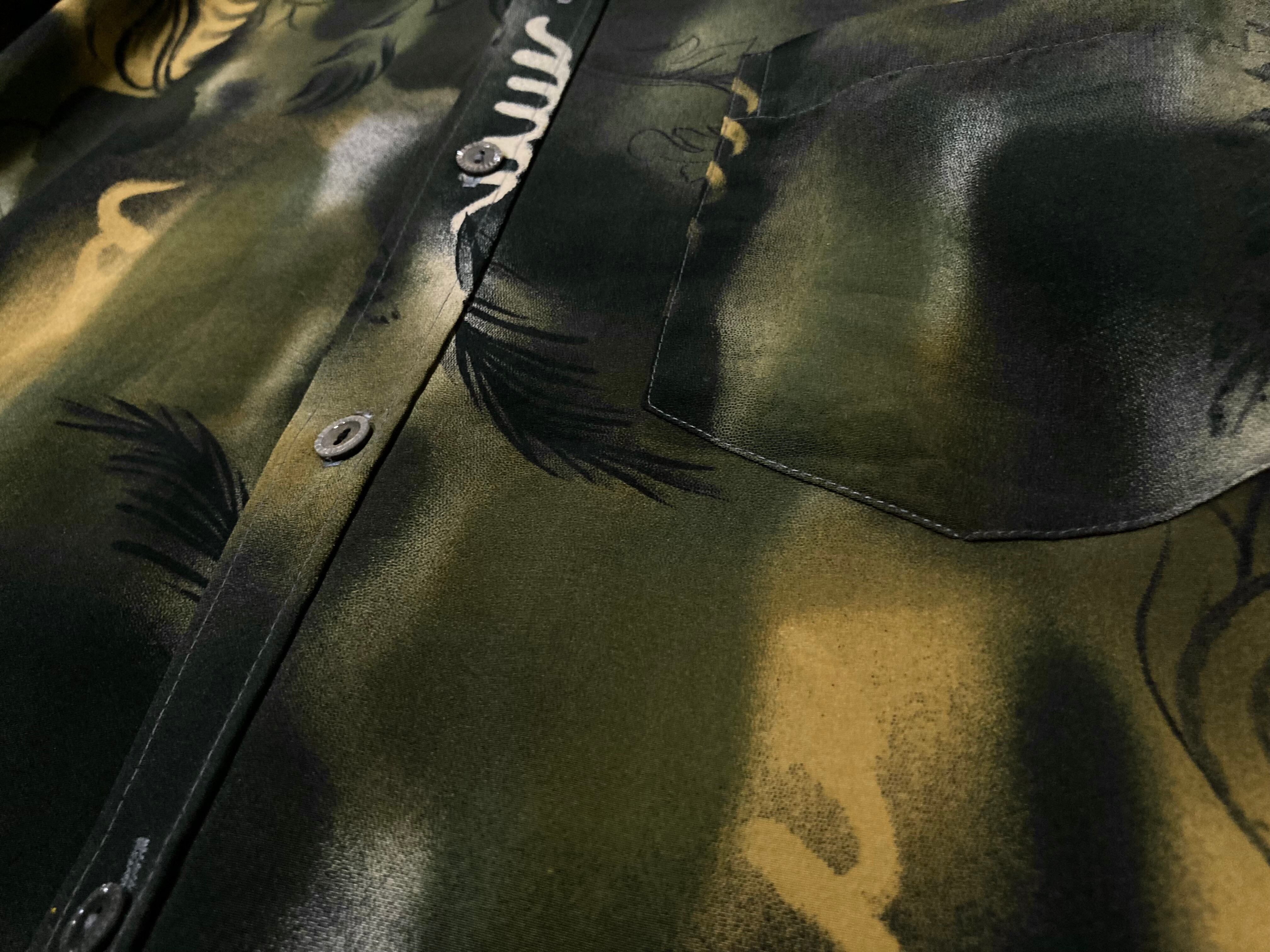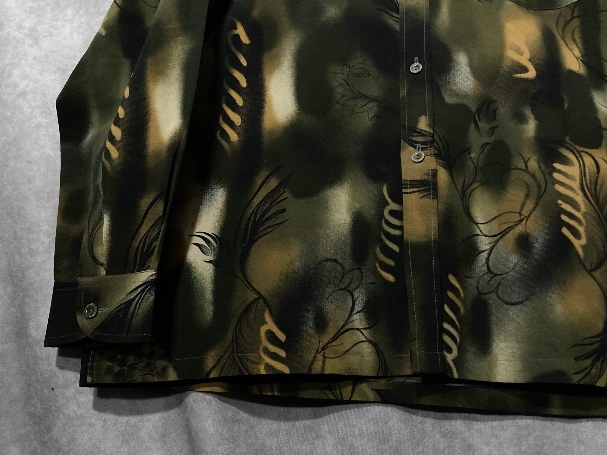 XL 微睡み Slightly Sleeping and Hand drawn leaf graphic All-over pattern design L/S shirt