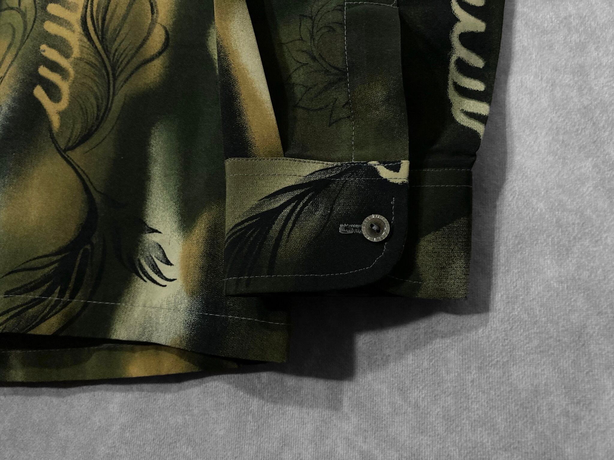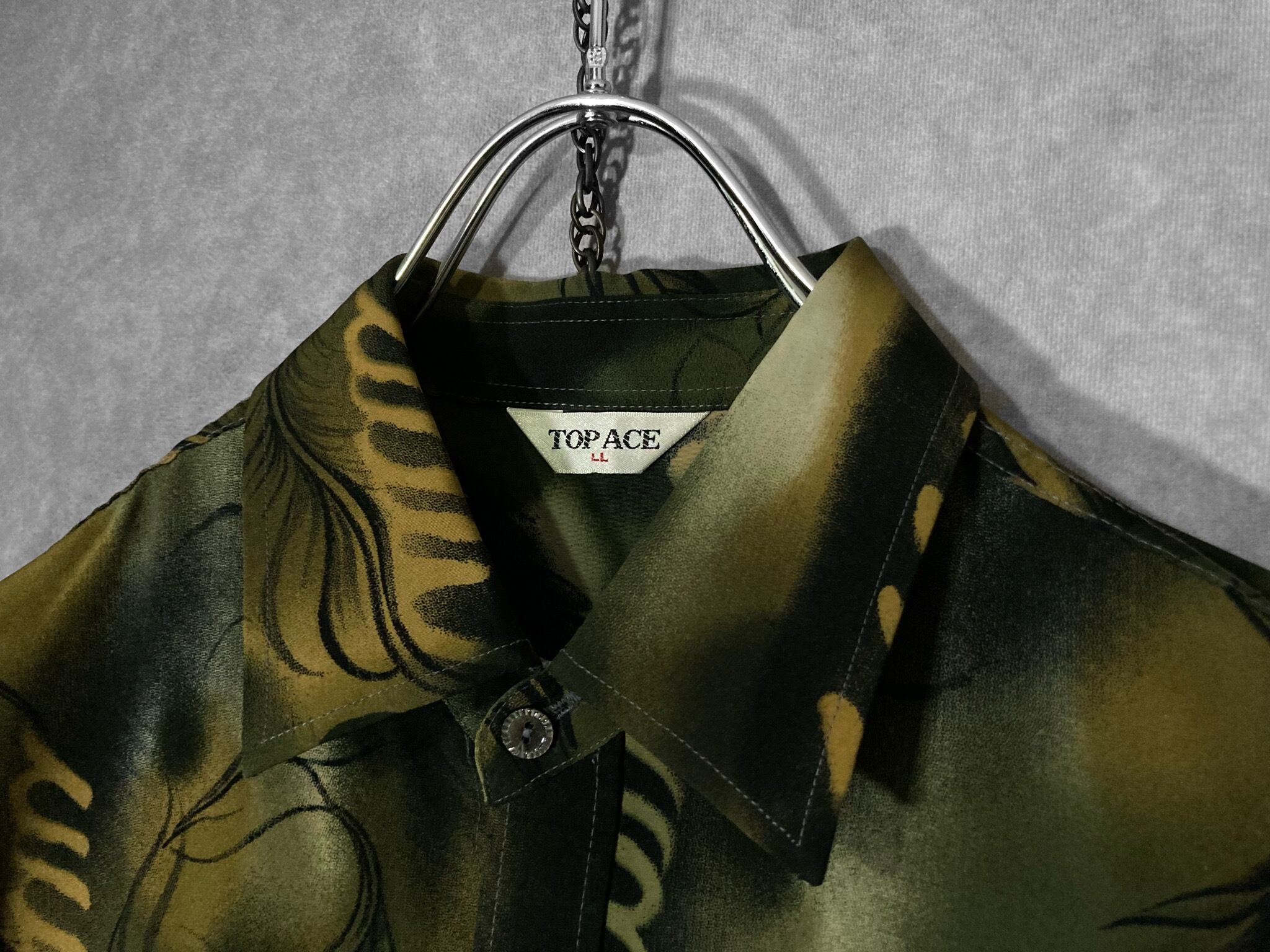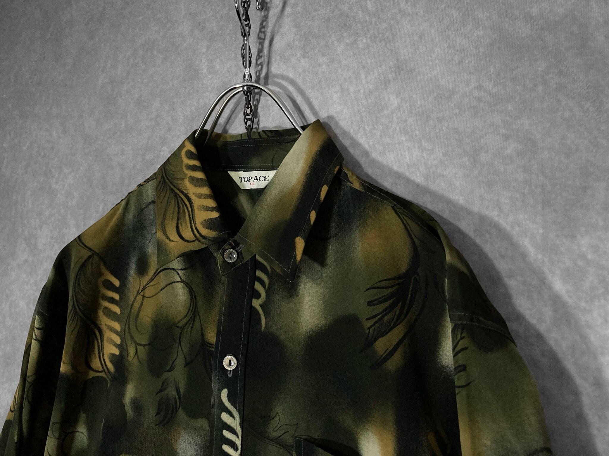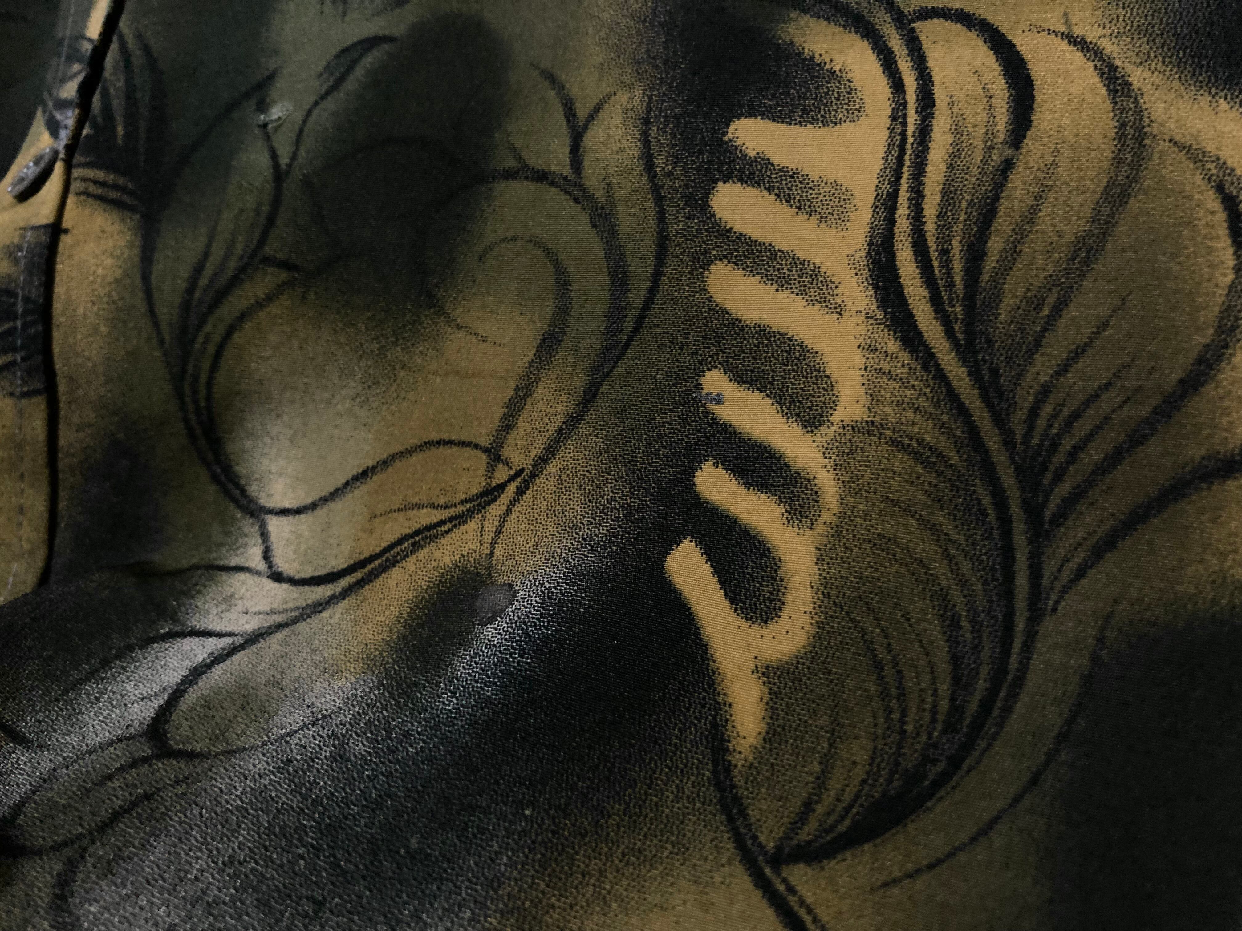XL 微睡み Slightly Sleeping and Hand drawn leaf graphic All-over pattern design L/S shirt
