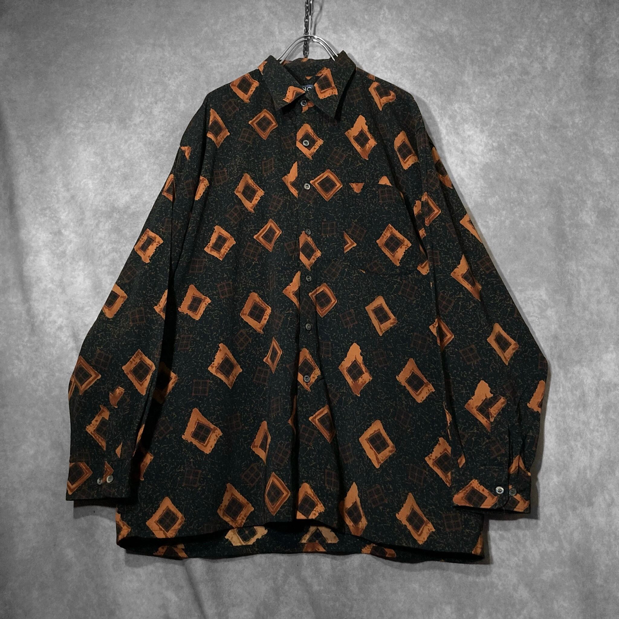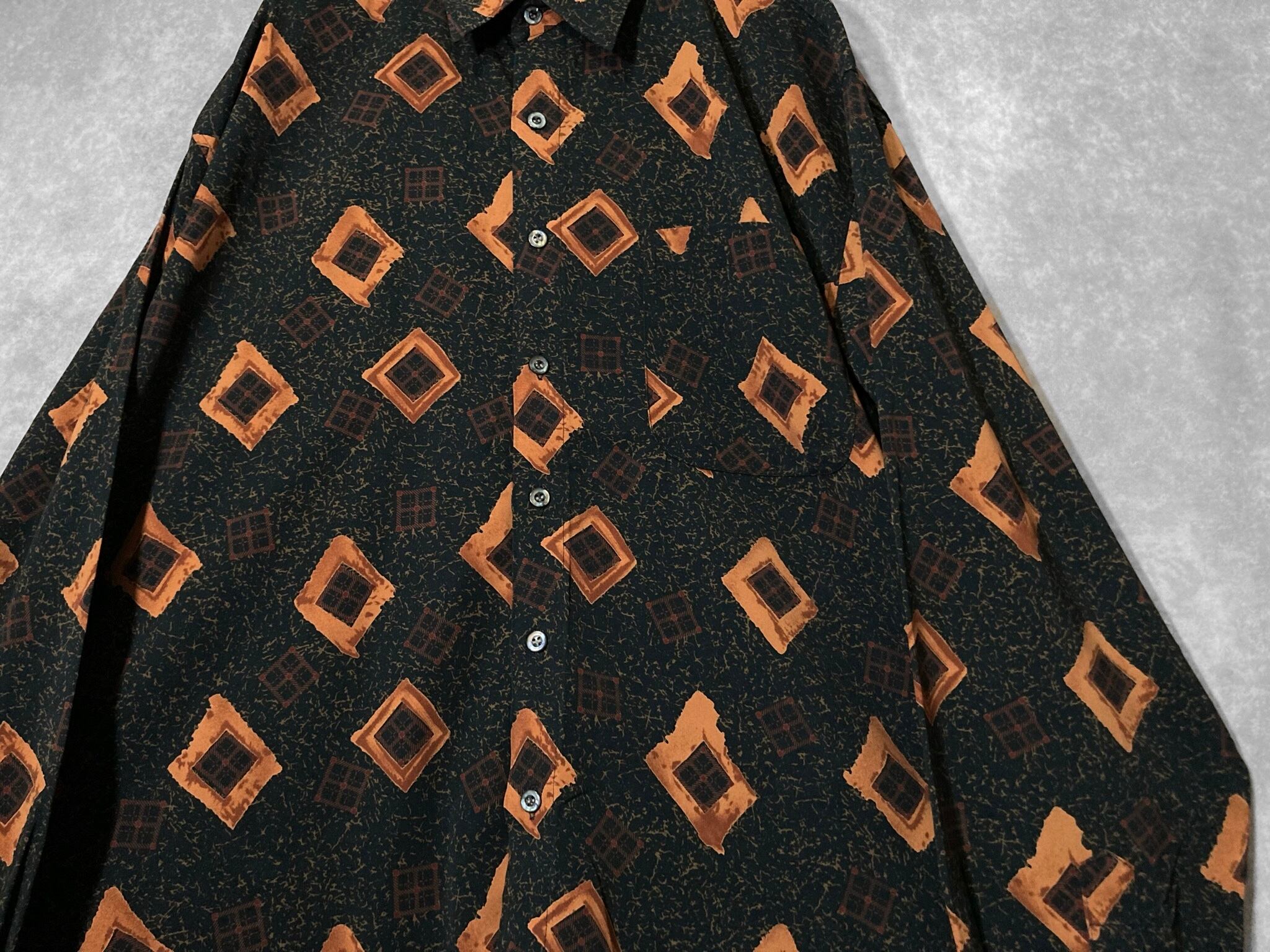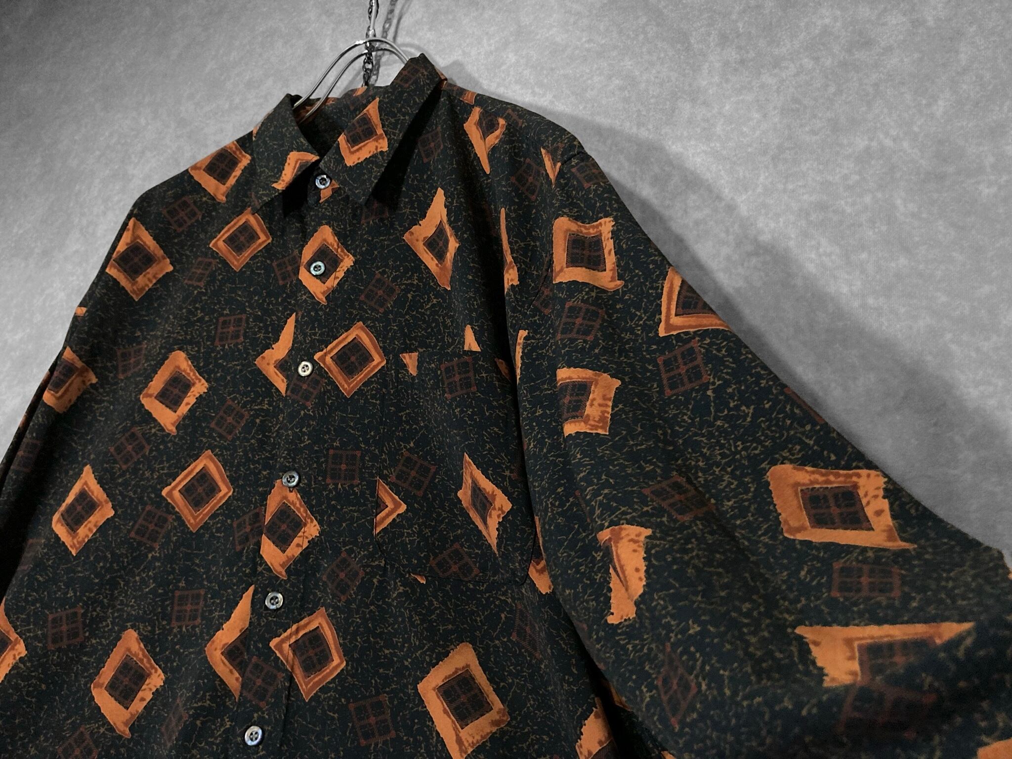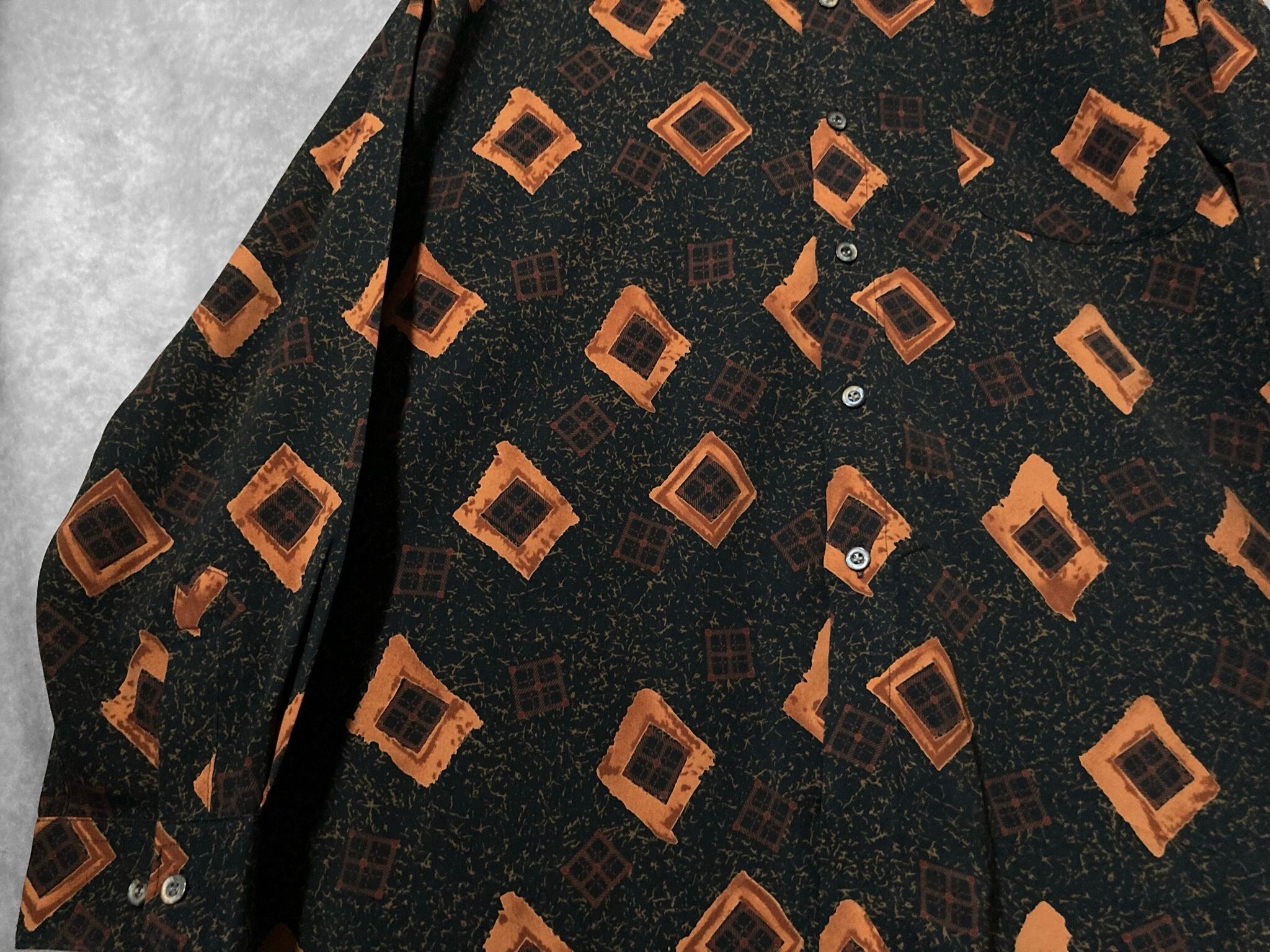 Contemporary brushstroke drawn square All-over pattern design L/S shirt