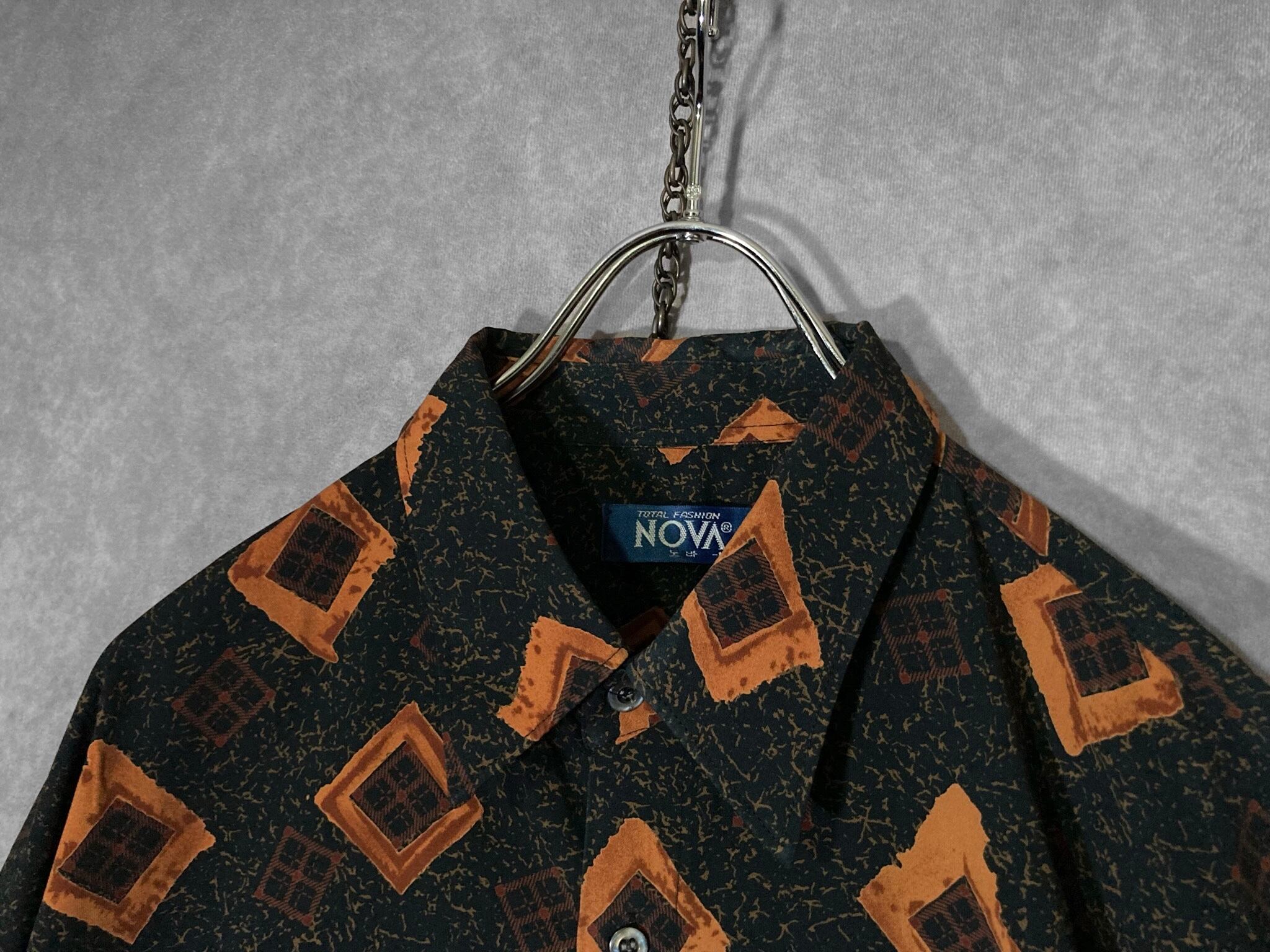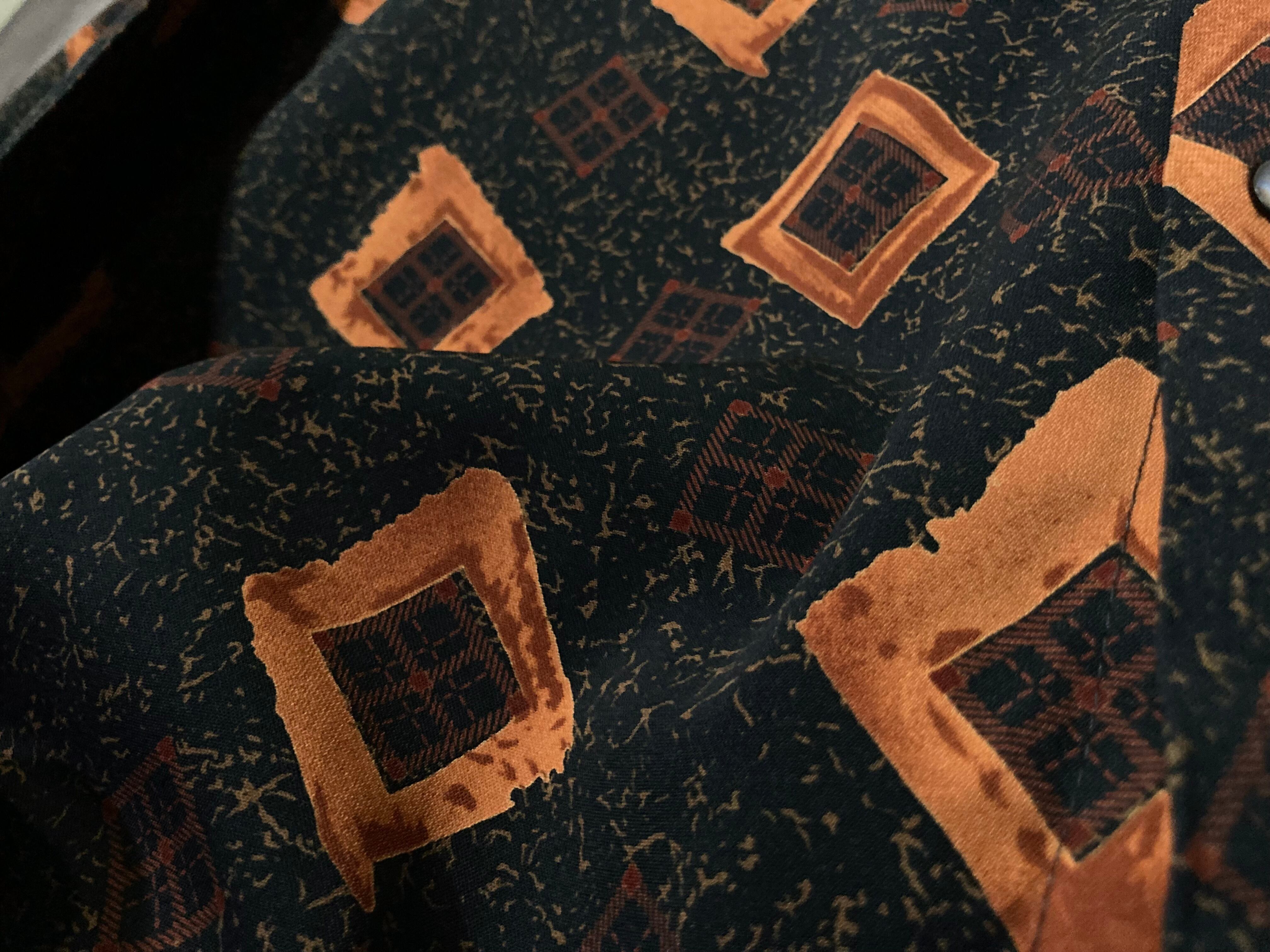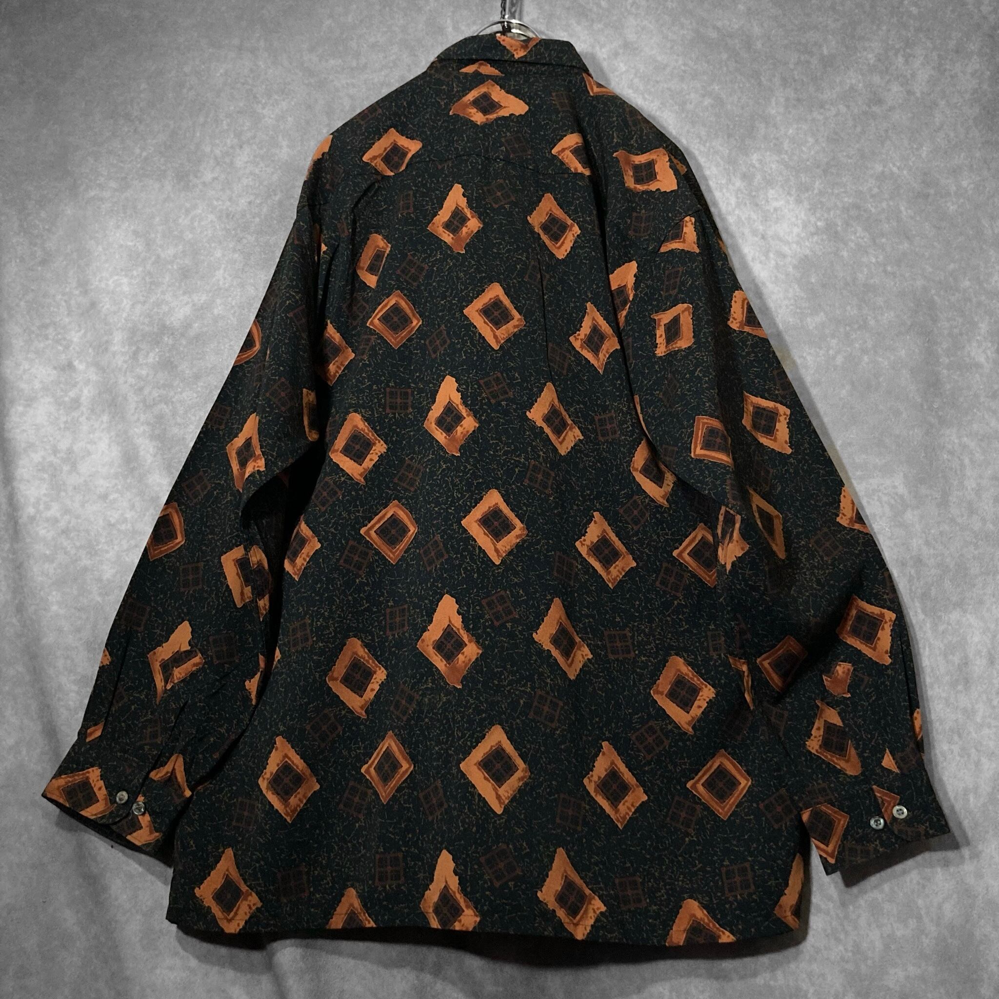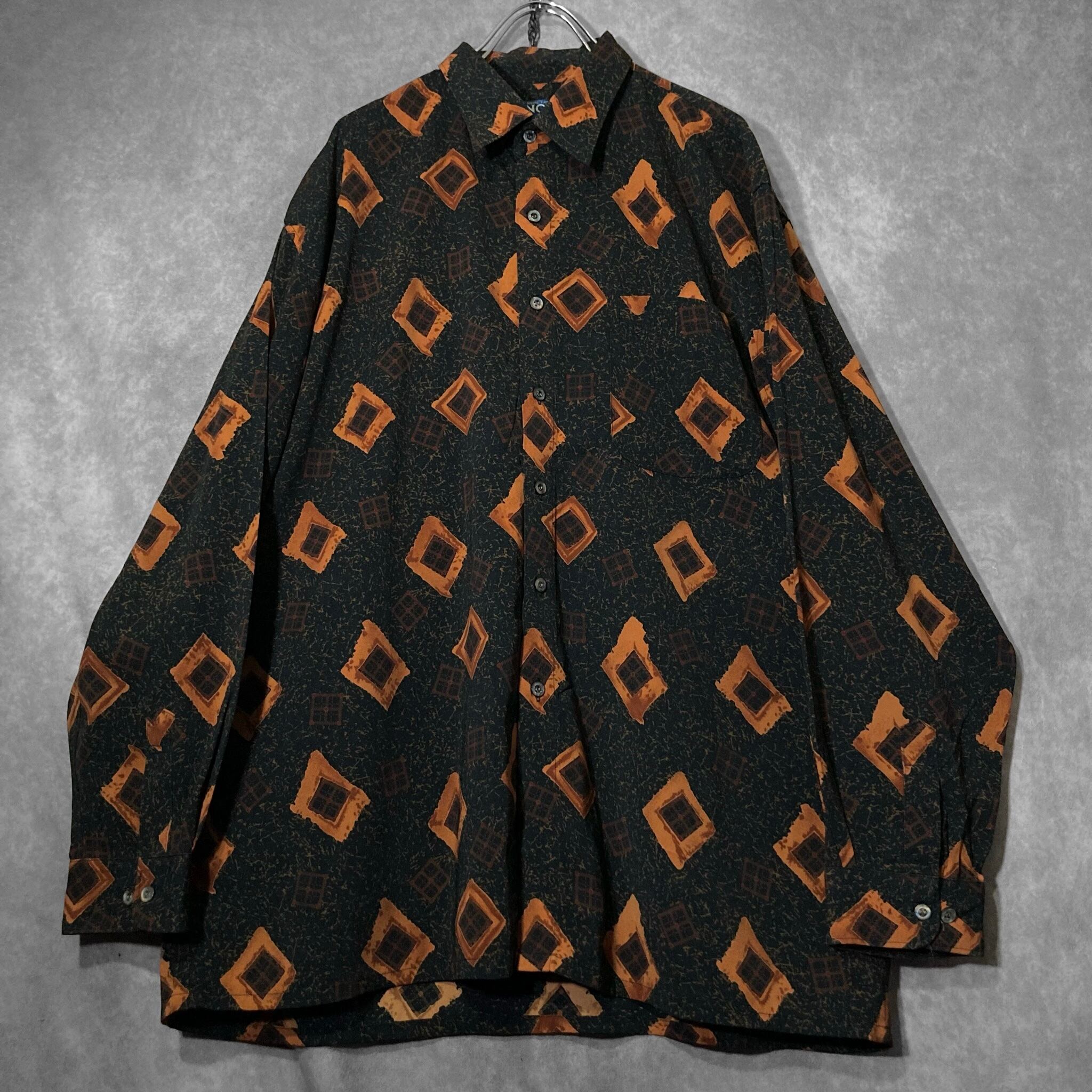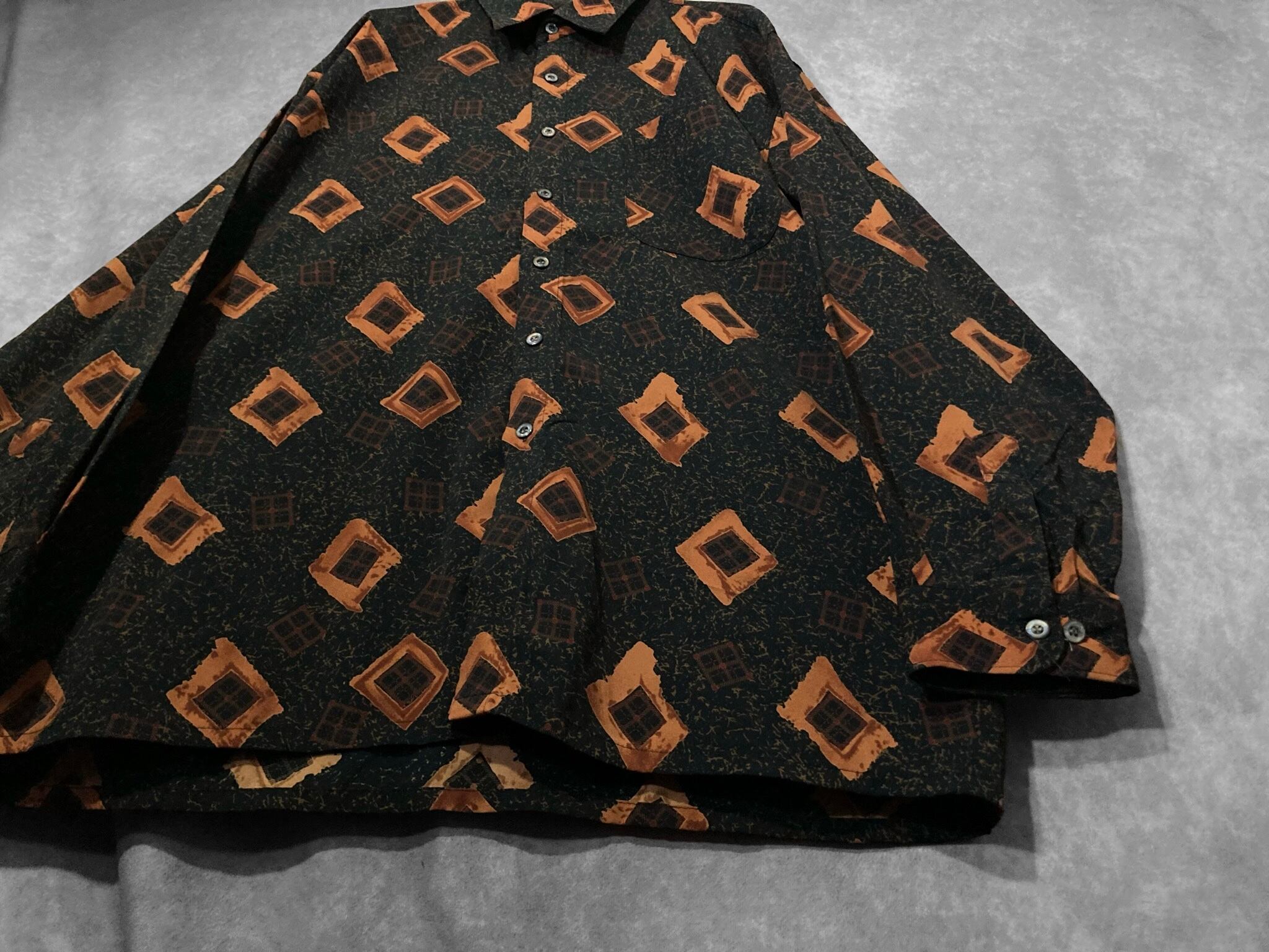 Contemporary brushstroke drawn square All-over pattern design L/S shirt