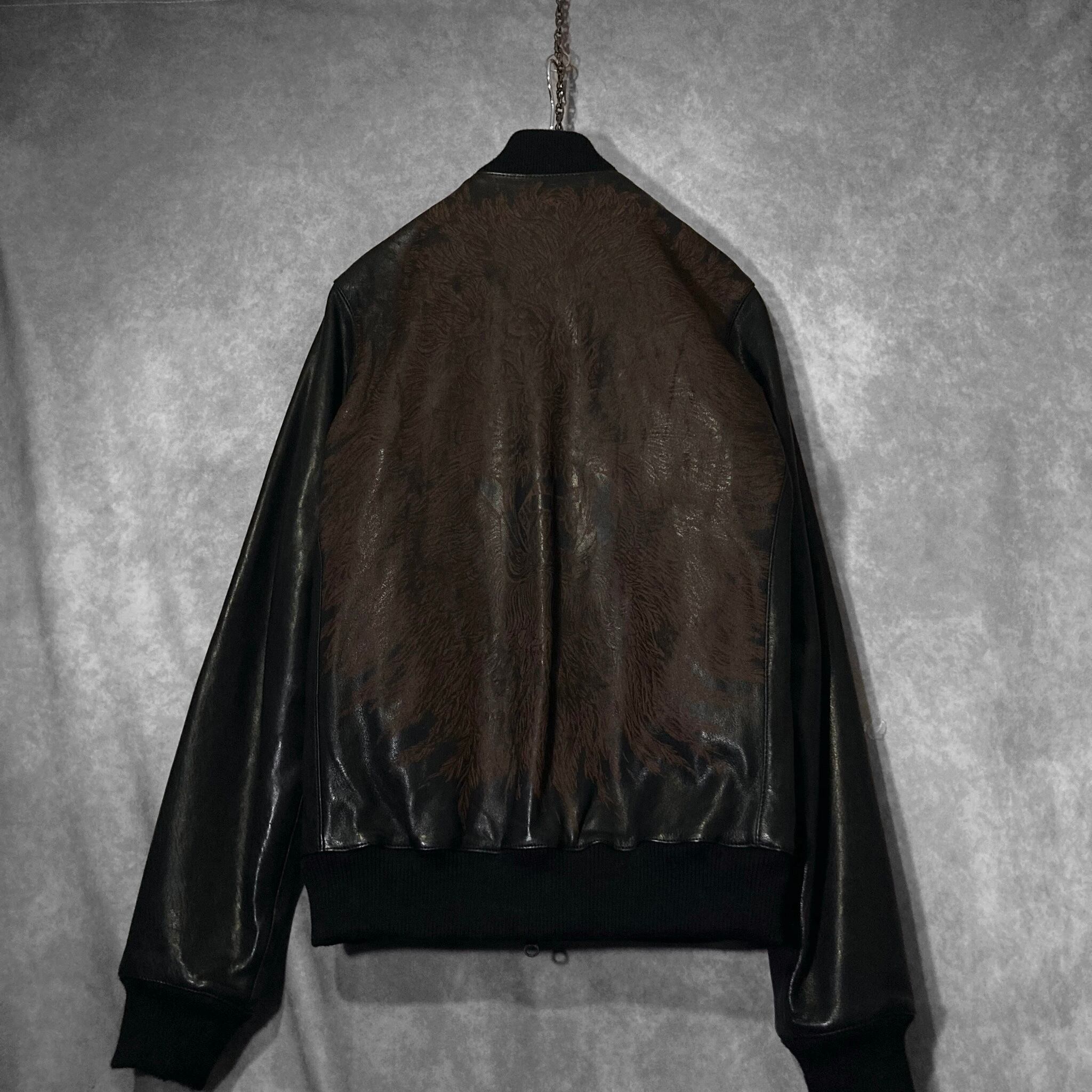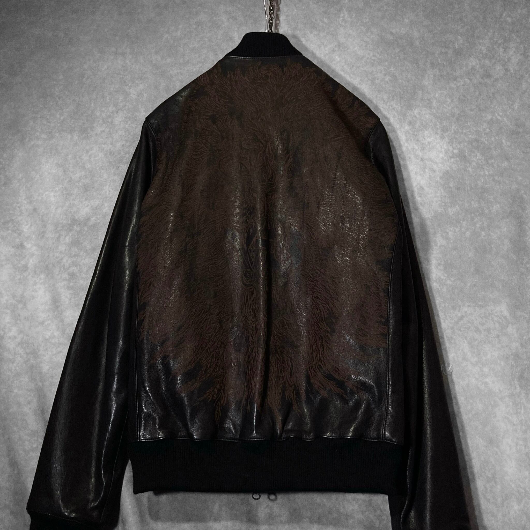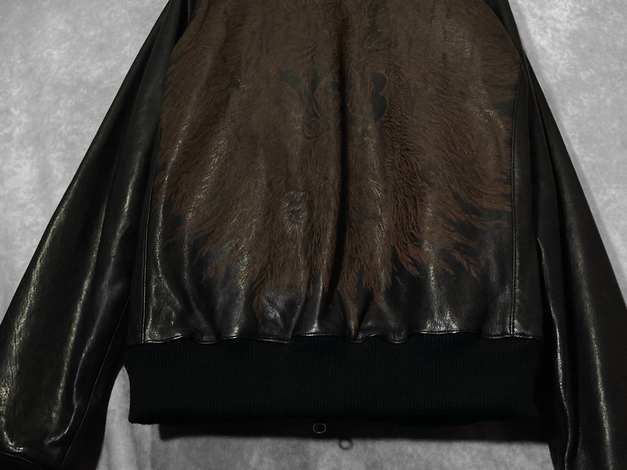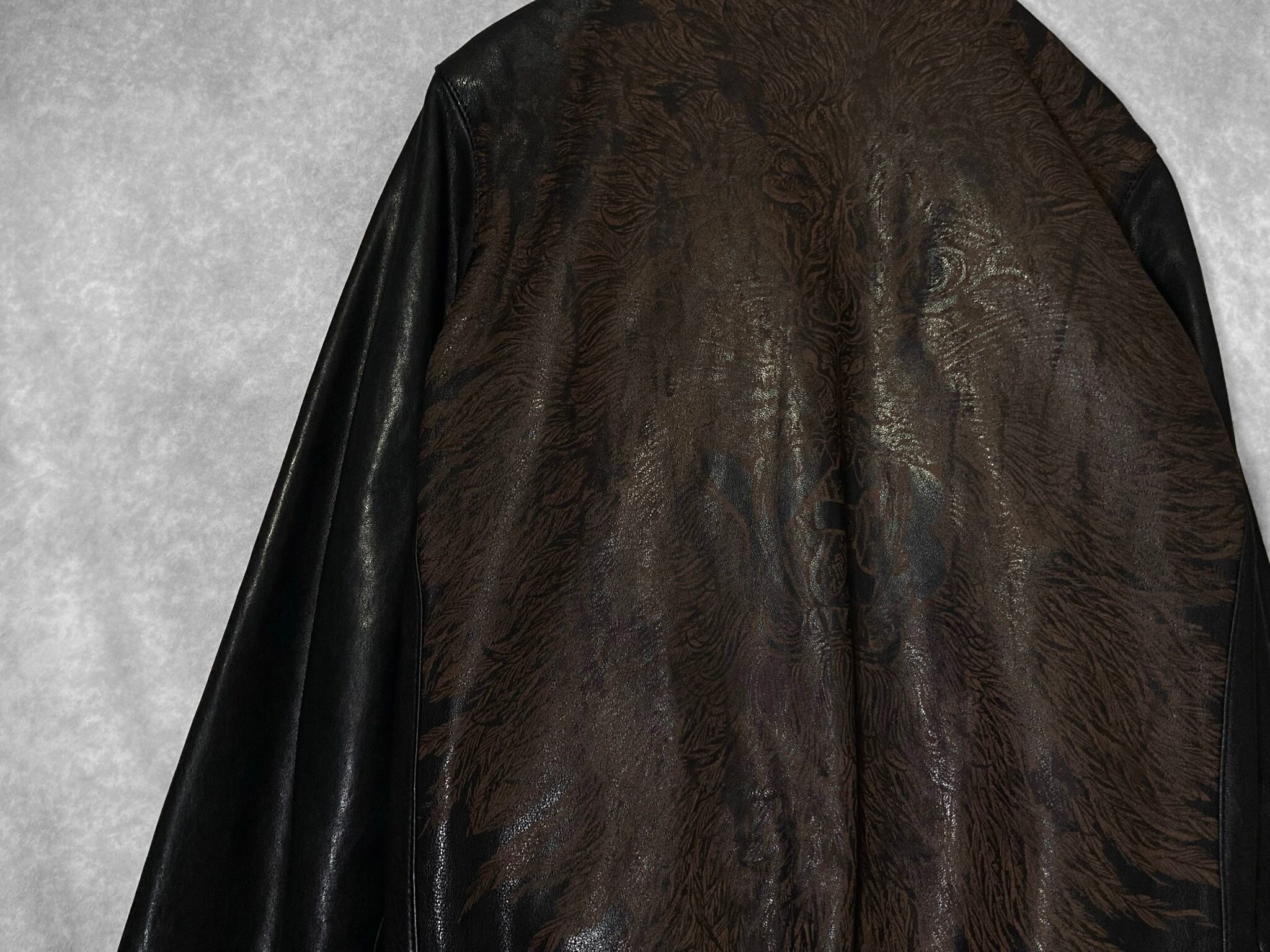 Y-3 Lion Engraved design Double-zip Leather jacket XS [S23372]2014-FW