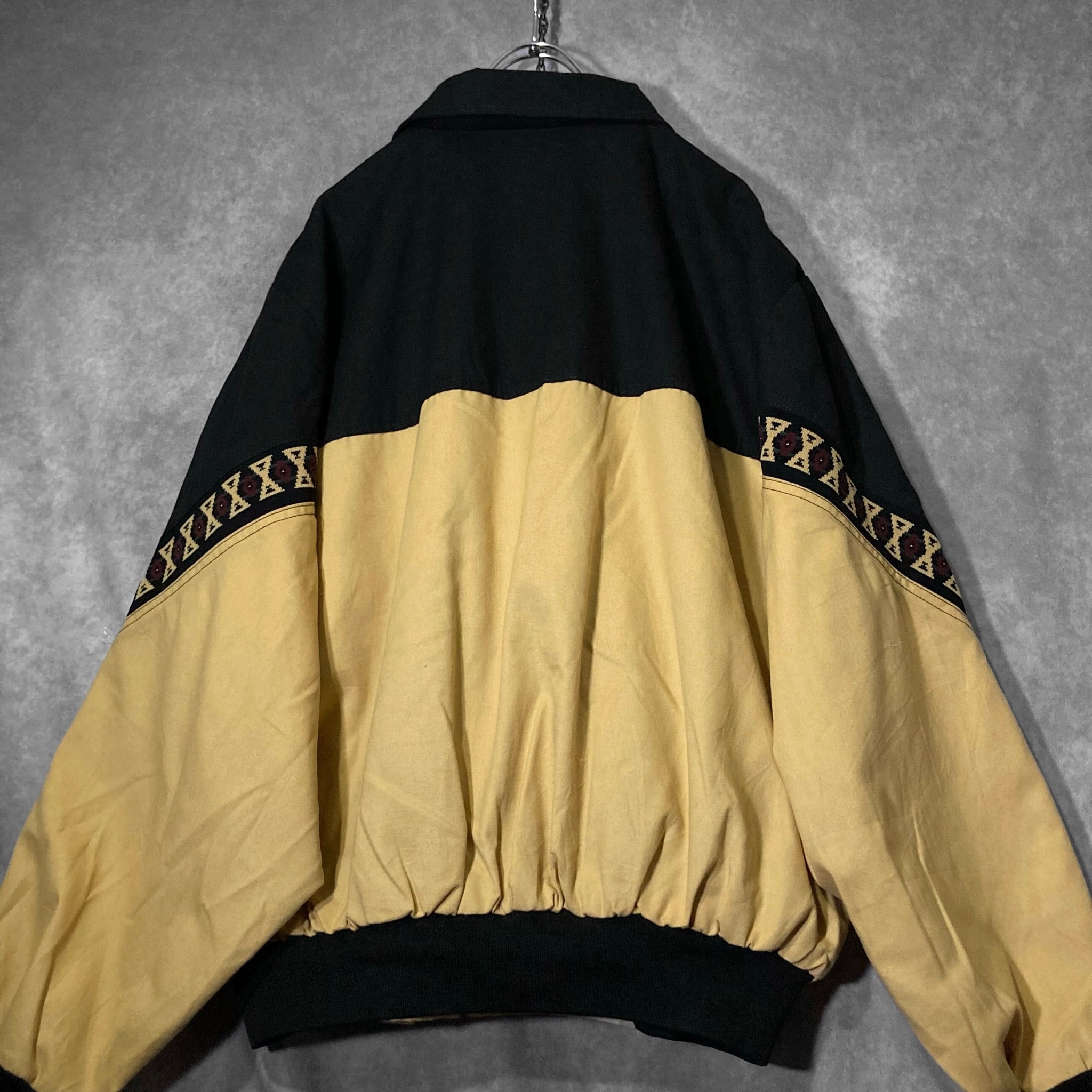 80s 2X size CANYON GUIDE OUTFITTERS Black × Mustard colored Switching design full-zip Swingtop jacket