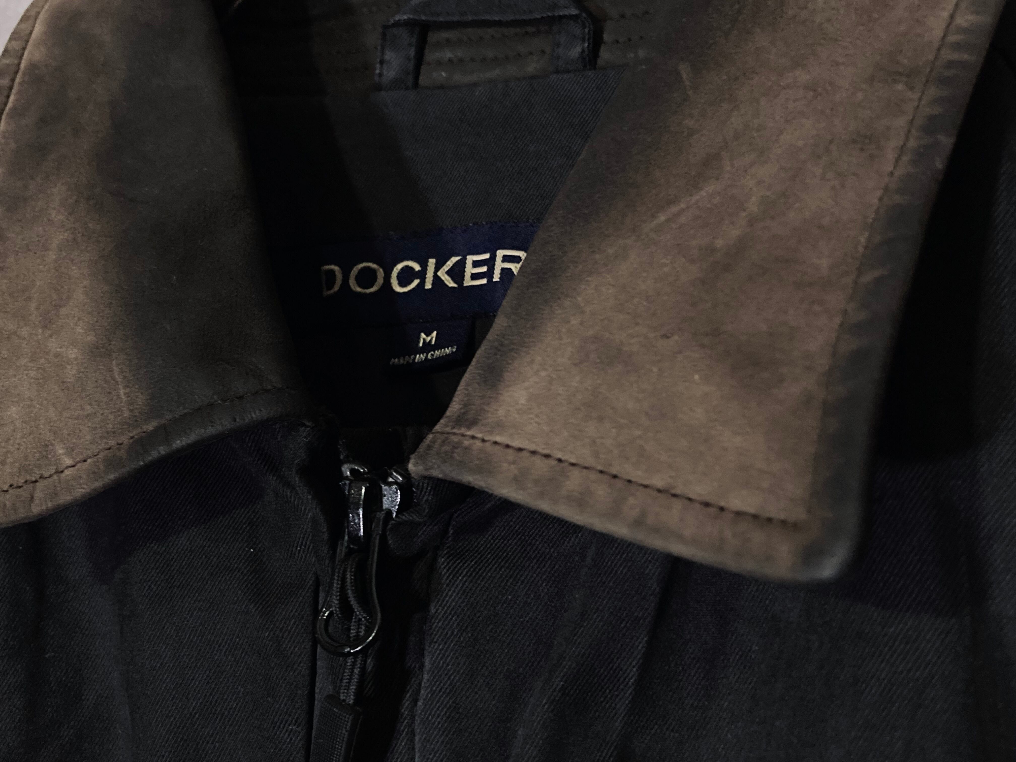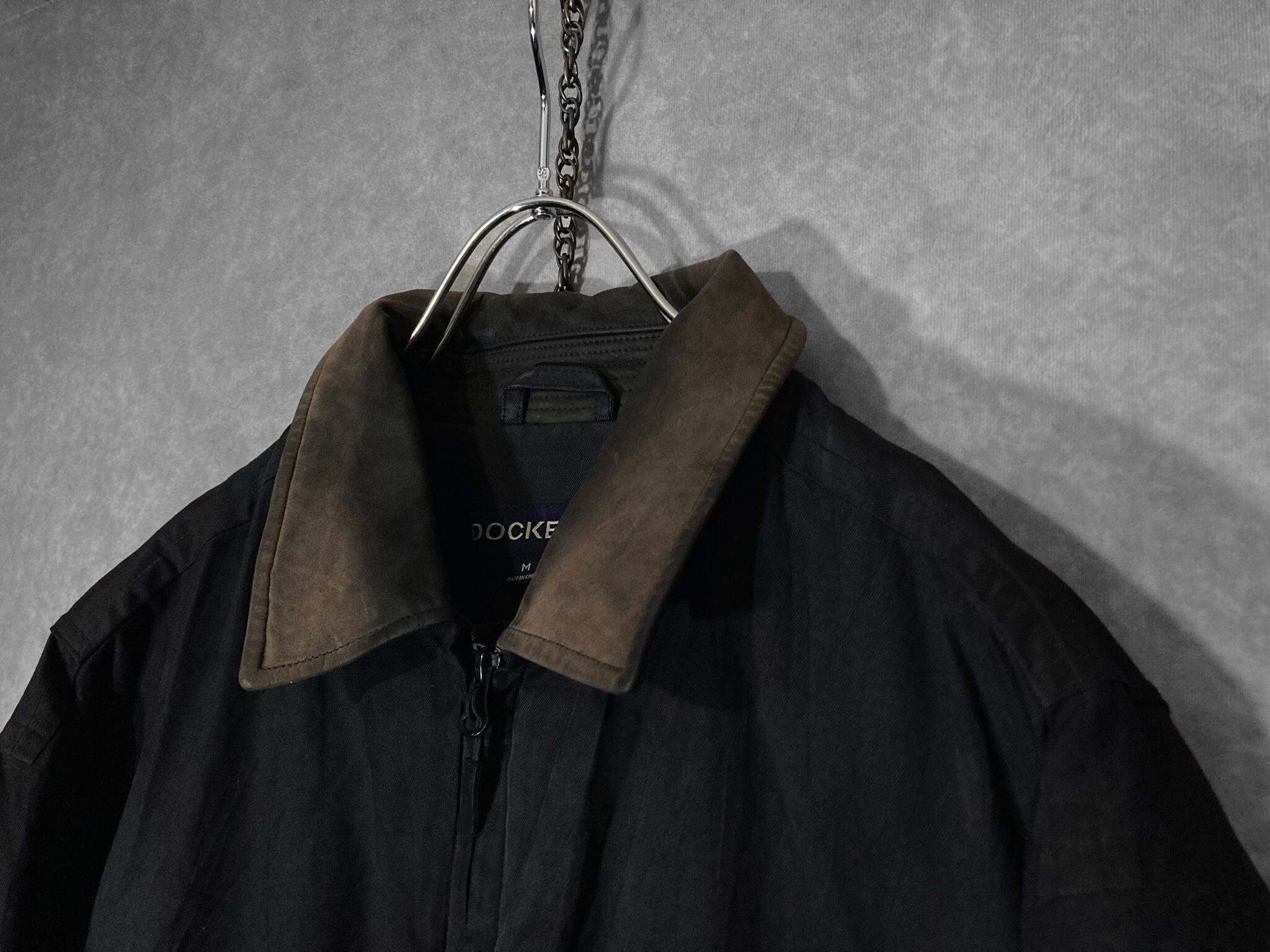 DOCKERS 90s Genuine Leather Collar design Nylon fabric Drizzler jacket
