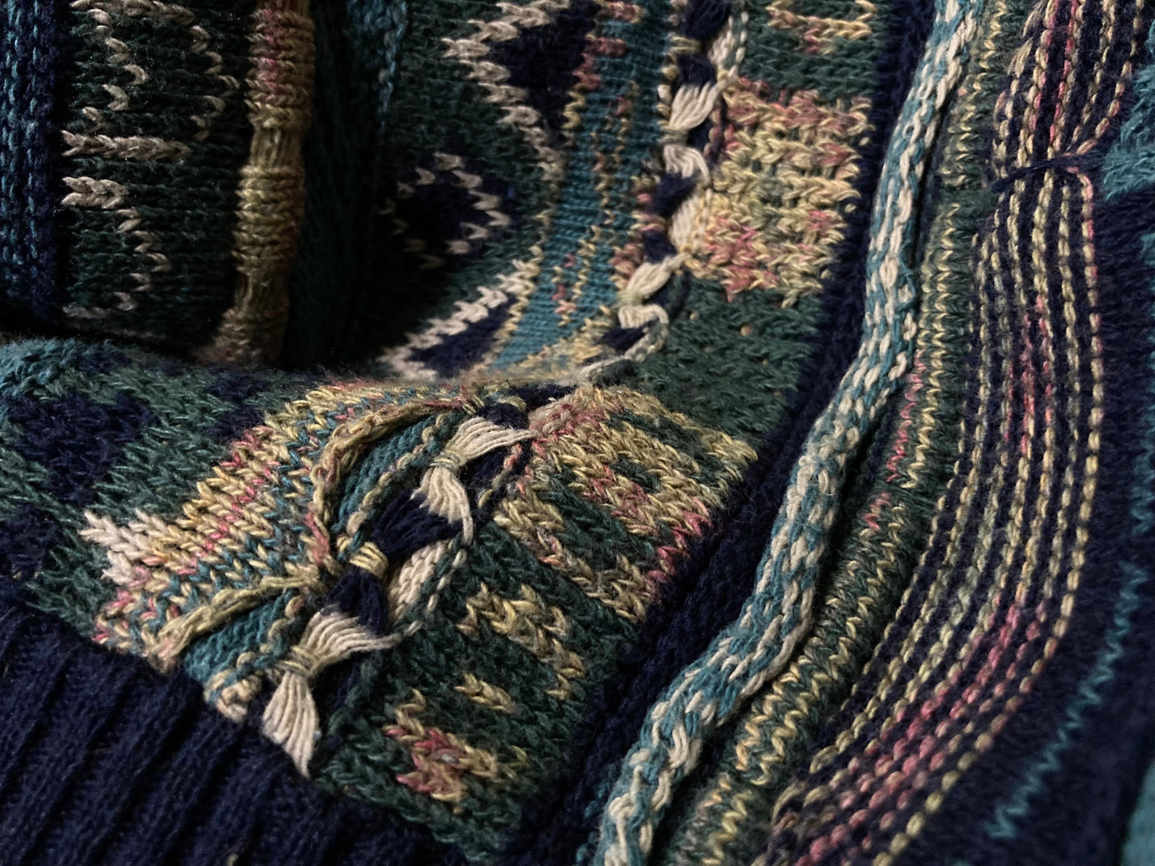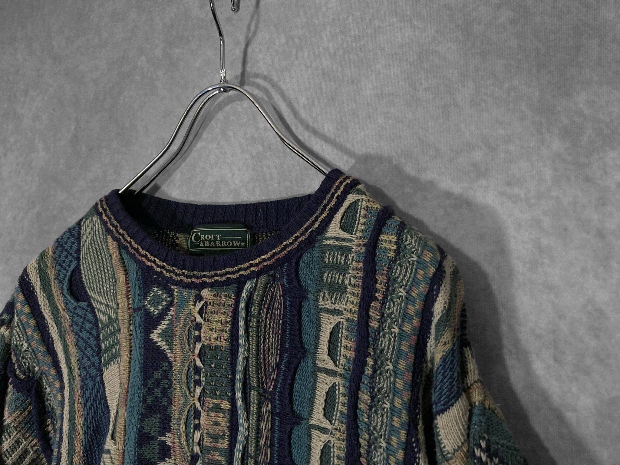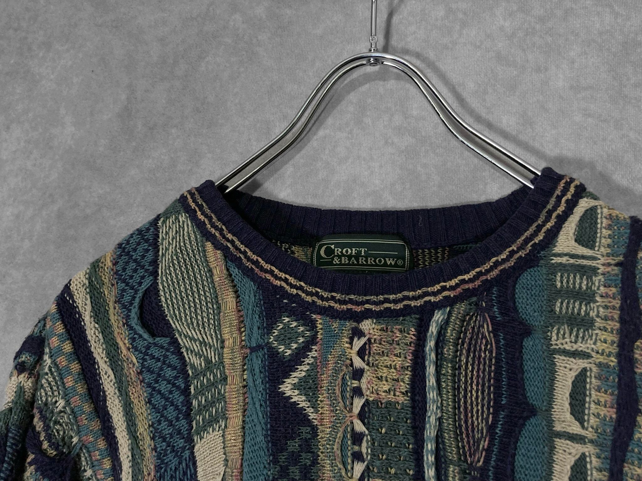 CROFT & BALLOW made in Bulgaria, 90s Different irregularity braited all-over pattern 3D design knit sweater