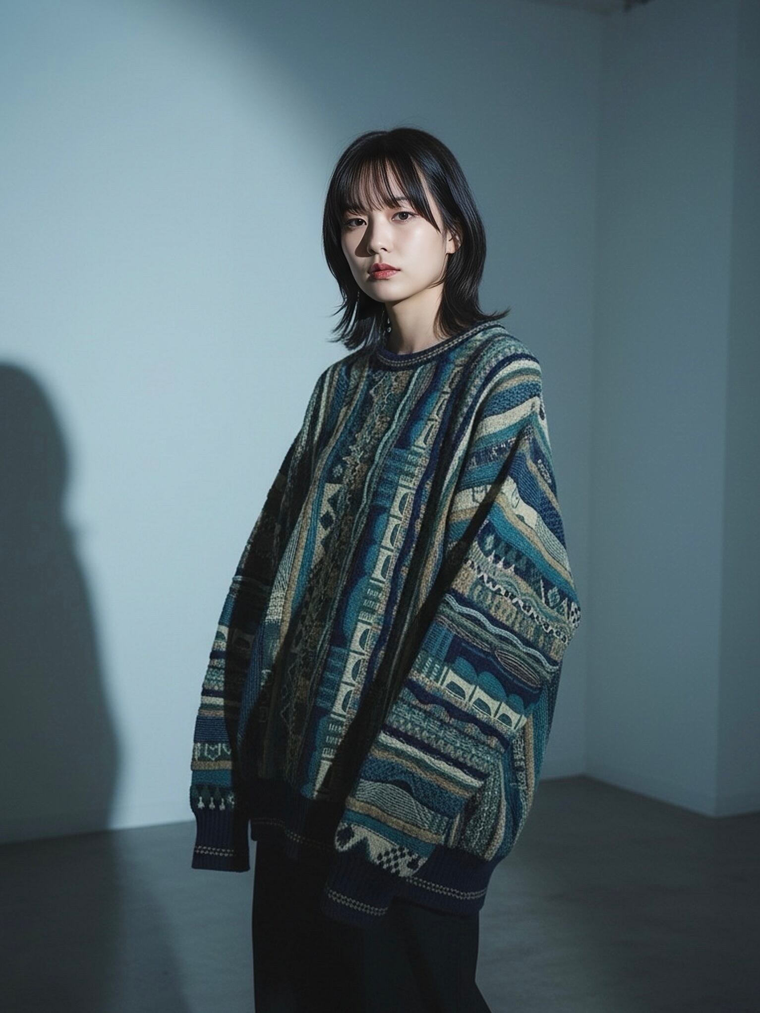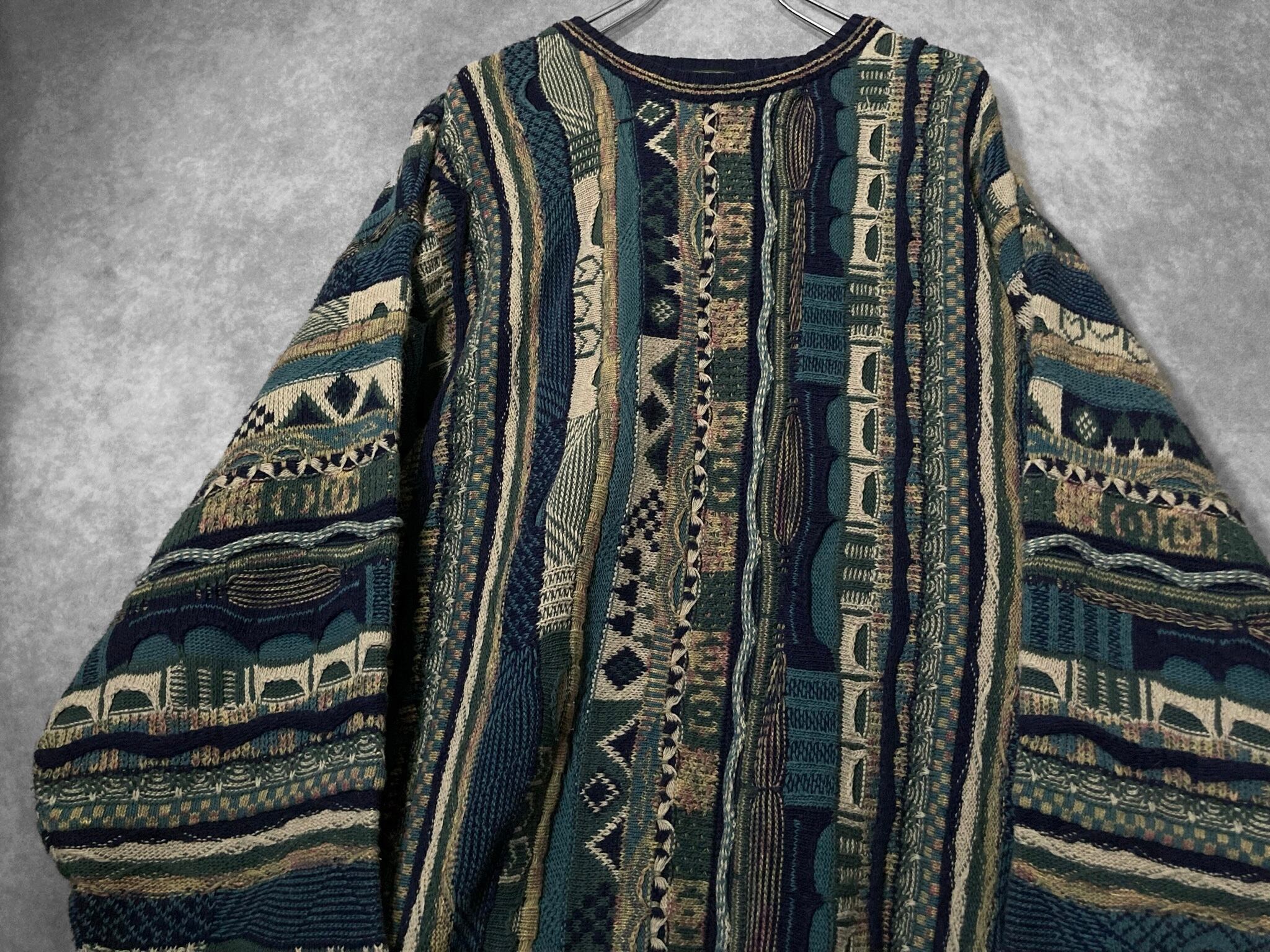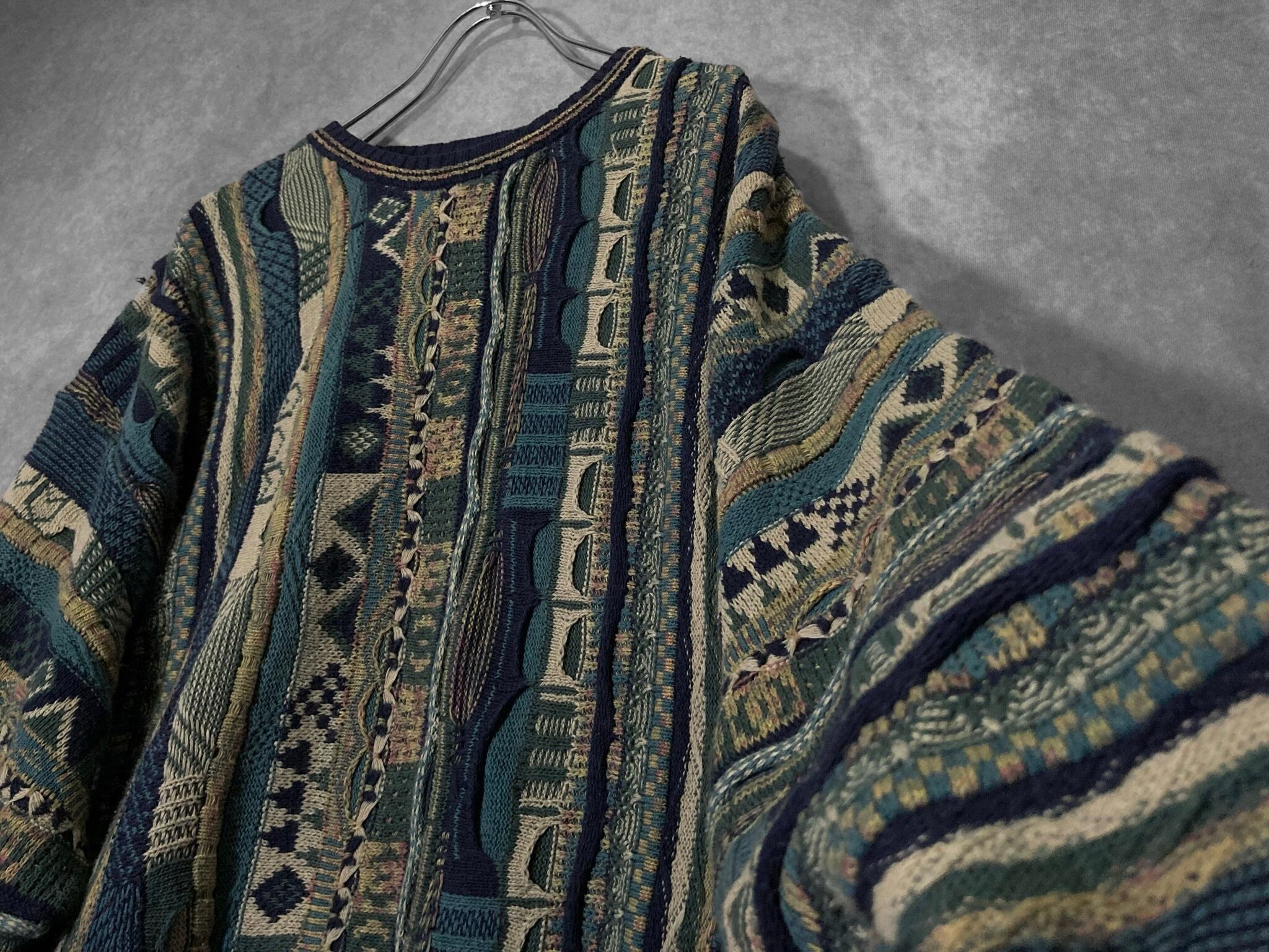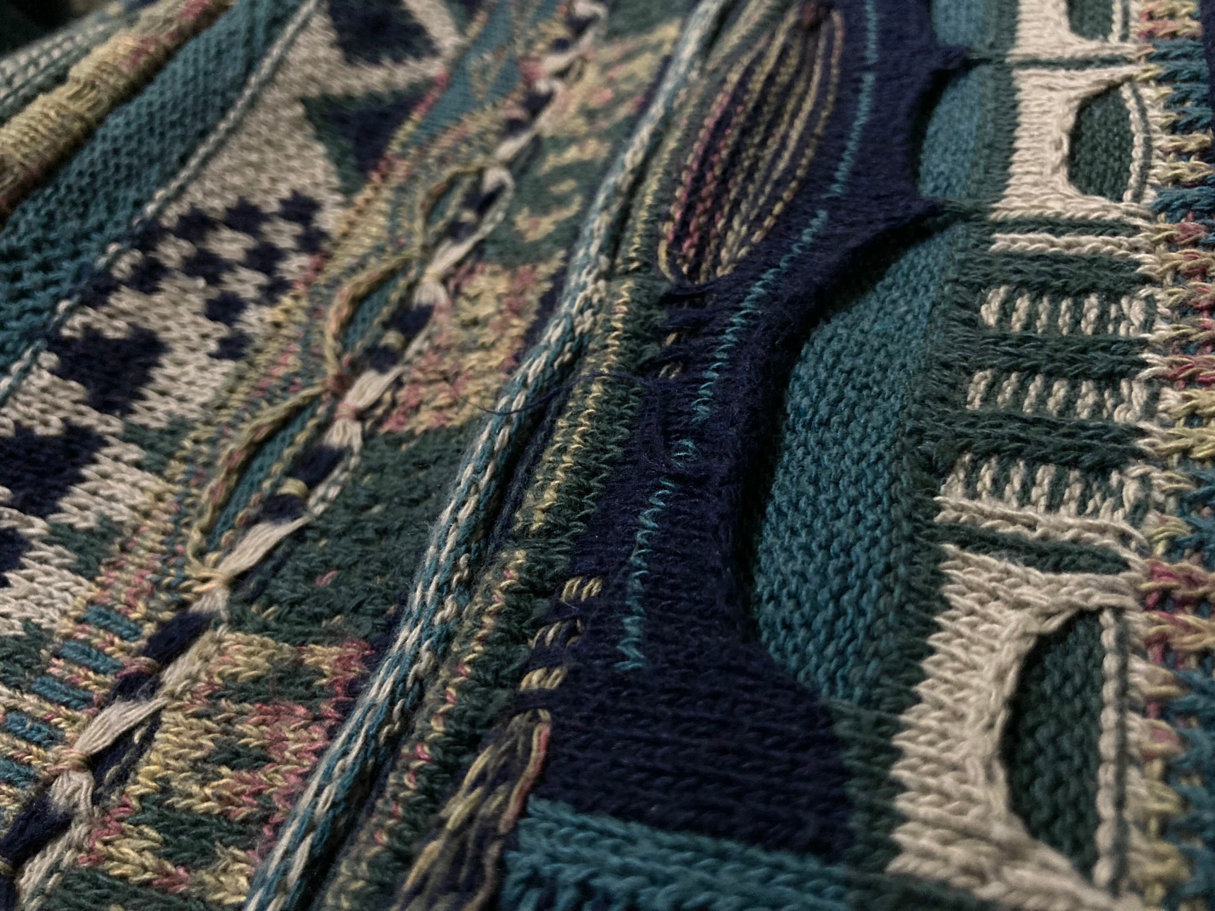 CROFT & BALLOW made in Bulgaria, 90s Different irregularity braited all-over pattern 3D design knit sweater