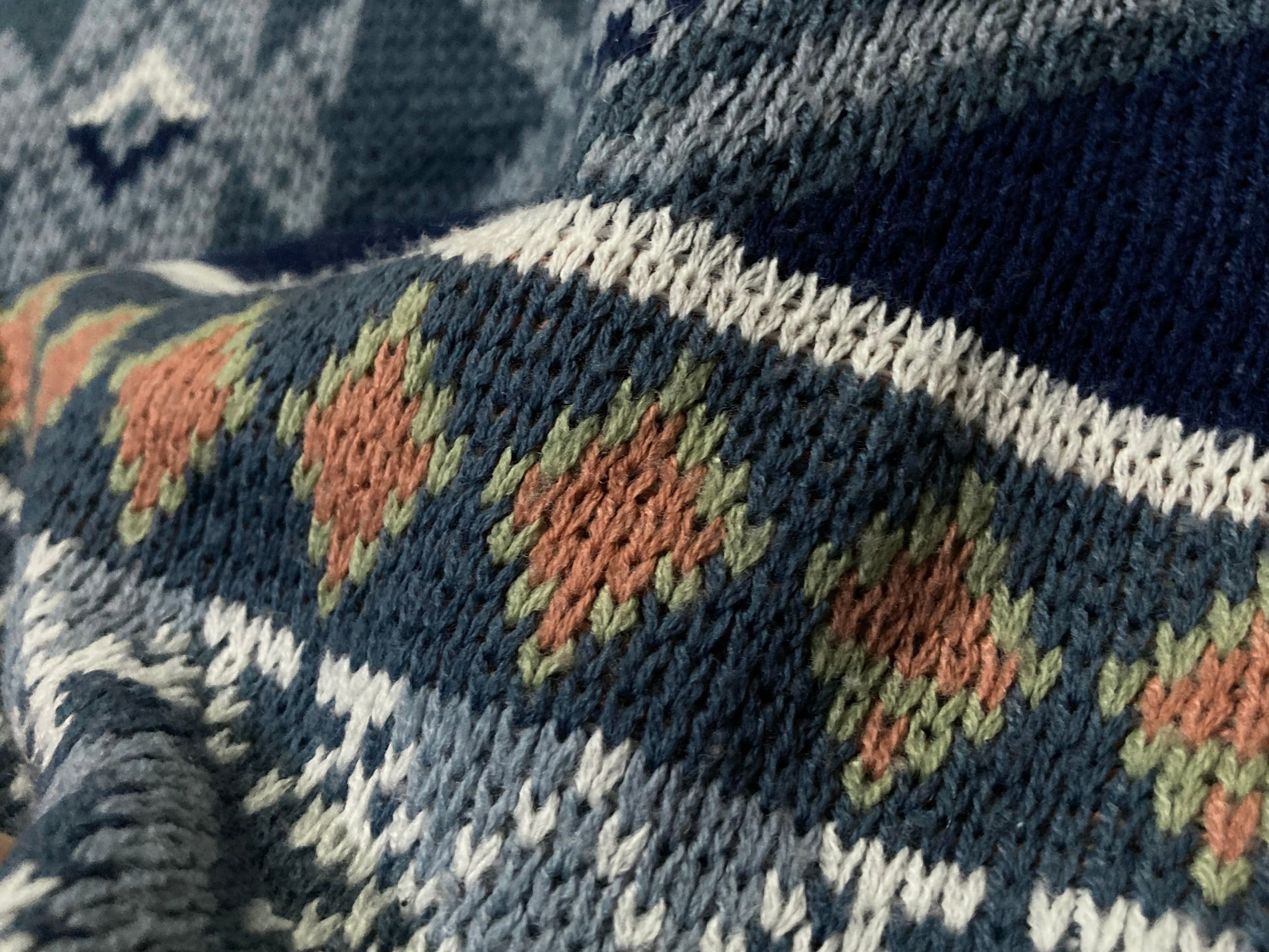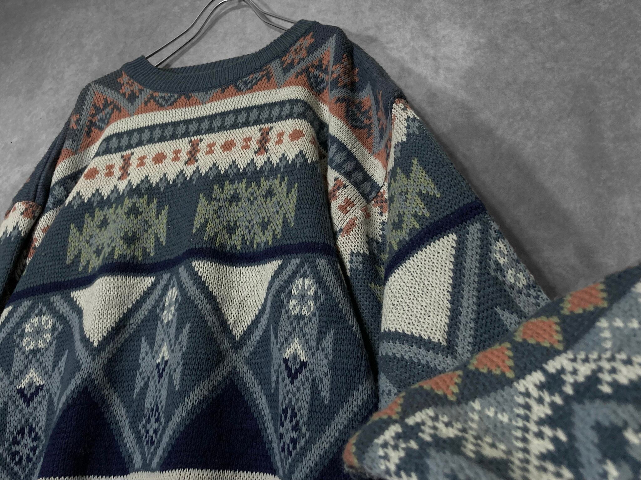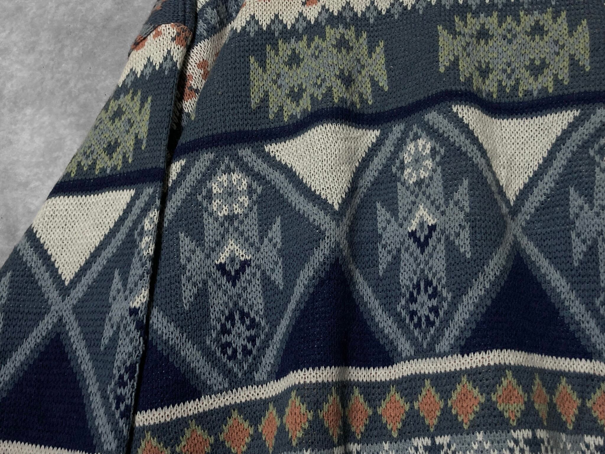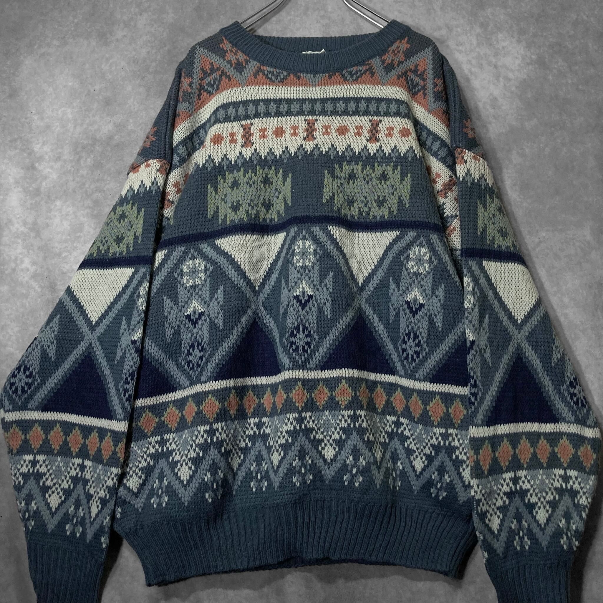 XL Winter blue colored all-over print design knit sweater