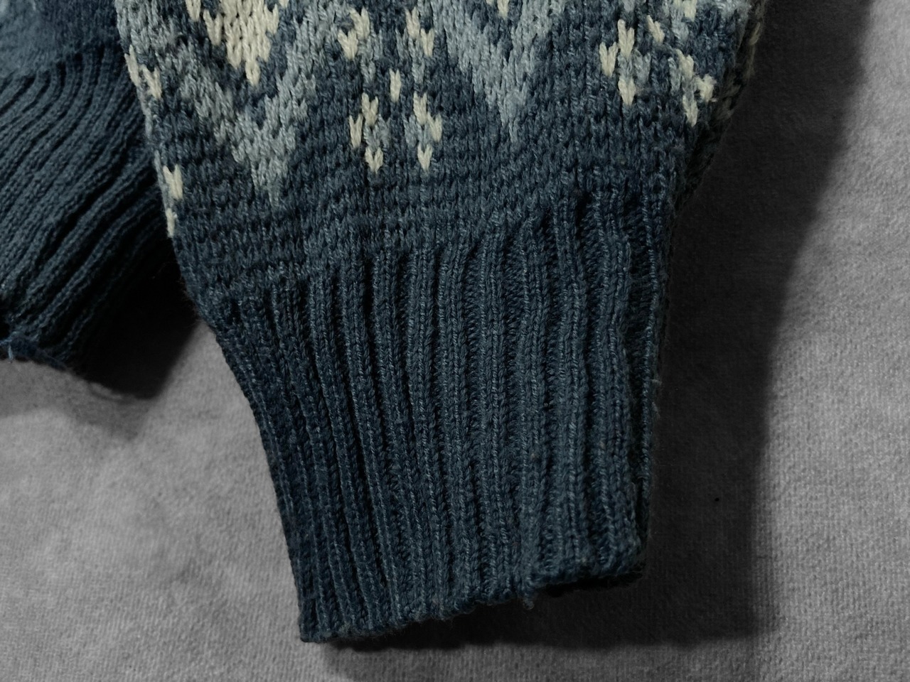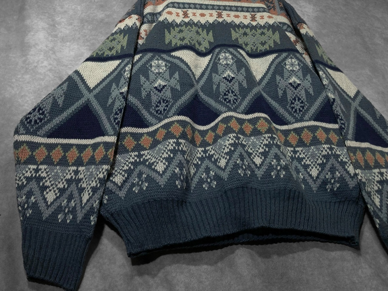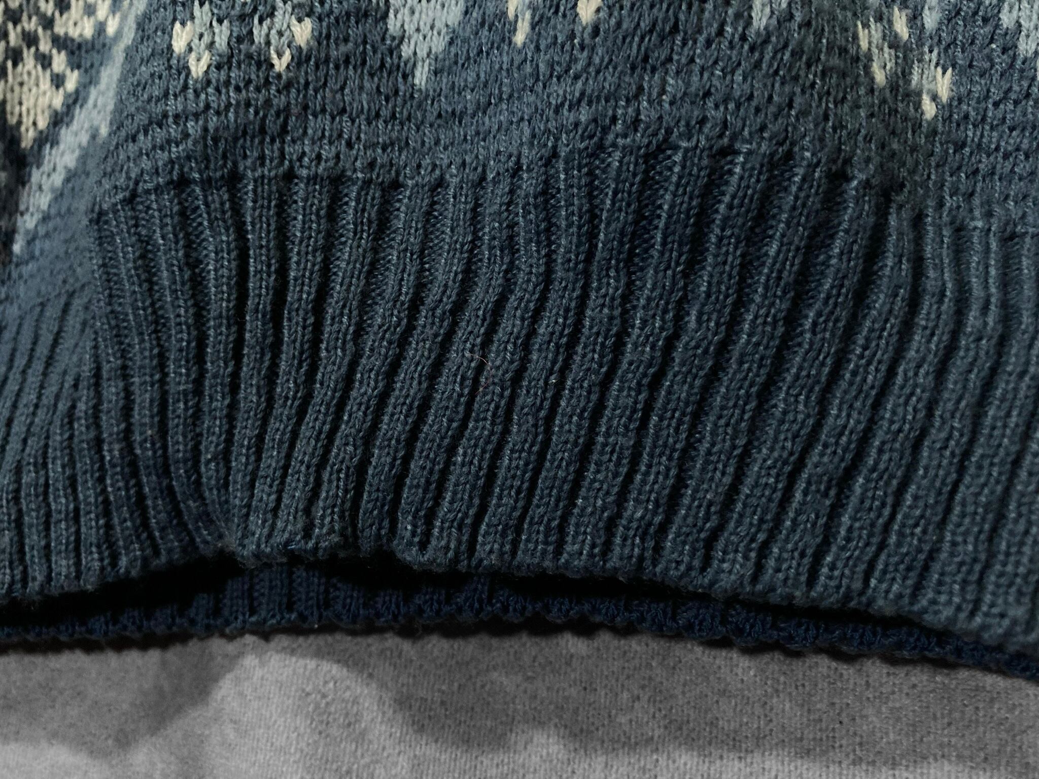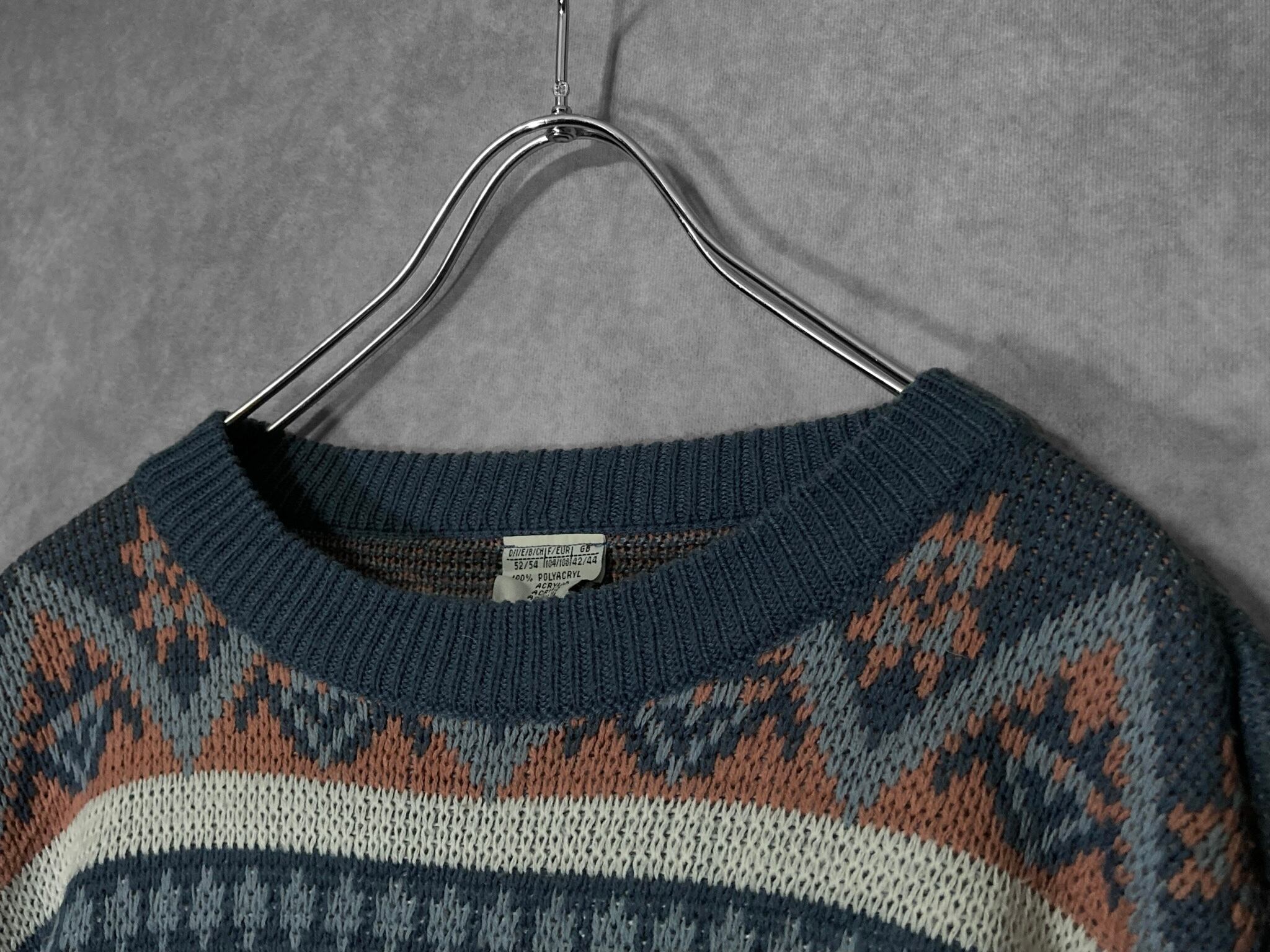 XL Winter blue colored all-over print design knit sweater